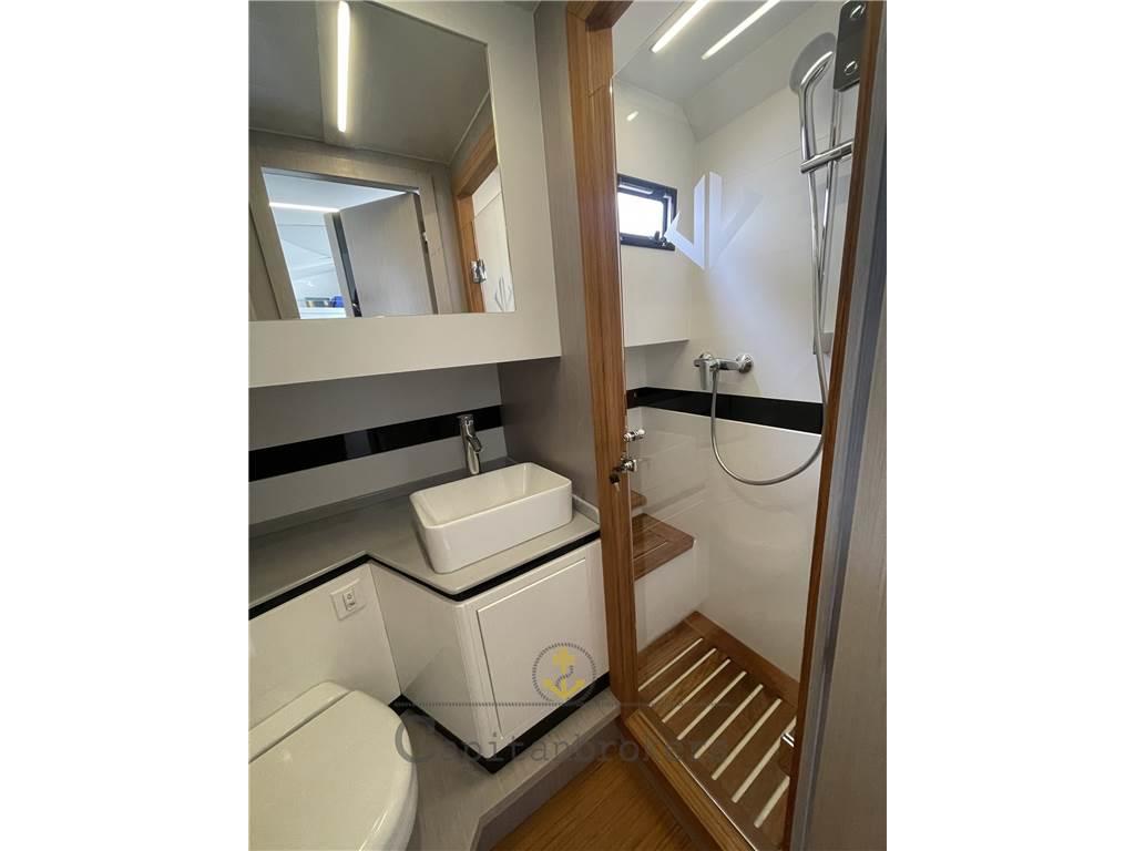 Notas internasBarca con ottima navigabilità, facilissima da manovrare . Ampio pozzetto con due tavoli separati e divani, possibilità di collegamento tra i tavoli creando una grandissima zona pranzo esterna in pozzetto . Notas de la instrumentaciónBussola, Contametri catena (elettronico), Display, 2 GPS (Map 12 ), Log, Pilota automatico (Garmin), Plotter con antenna GPS, Radio VHF (Garmin 115i), Elica di prua - bow thruster (AV max power ct80),Notas de armamentoAllarme motore, Allarme sentina, Autoclave, 5 Batterie (x 120 ah), Caricabatterie, Doccia esterna,Presa 220V banchina, Salpa Ancore Elettrico, Scaletta da bagno (in acciaio), Tavolo pozzetto, Winch Elettrico, Lavaggio catena, Piattaforma (idraulica up-down ), Pompa di sentina automatica, Pompa di sentina elettrica, Pompa di sentina manuale, Pozzetto Teak |