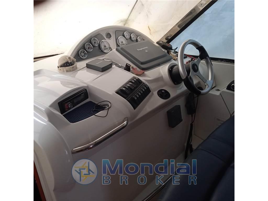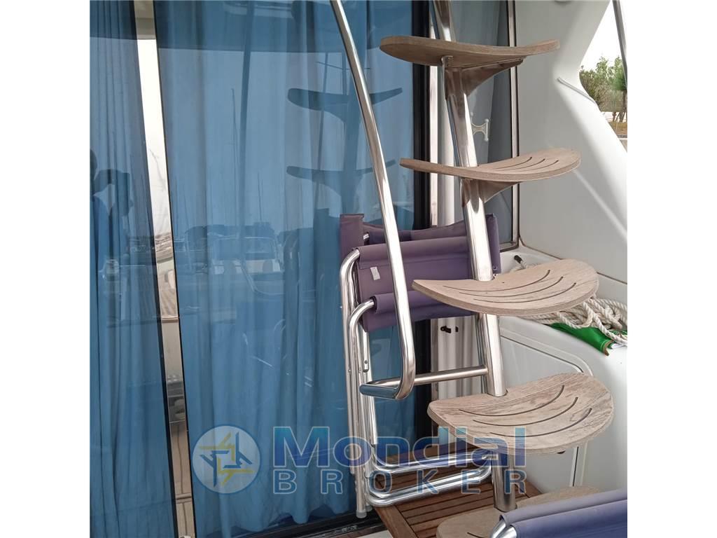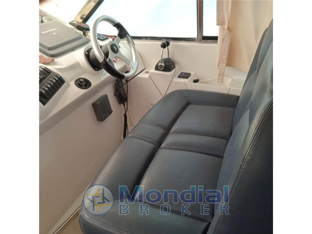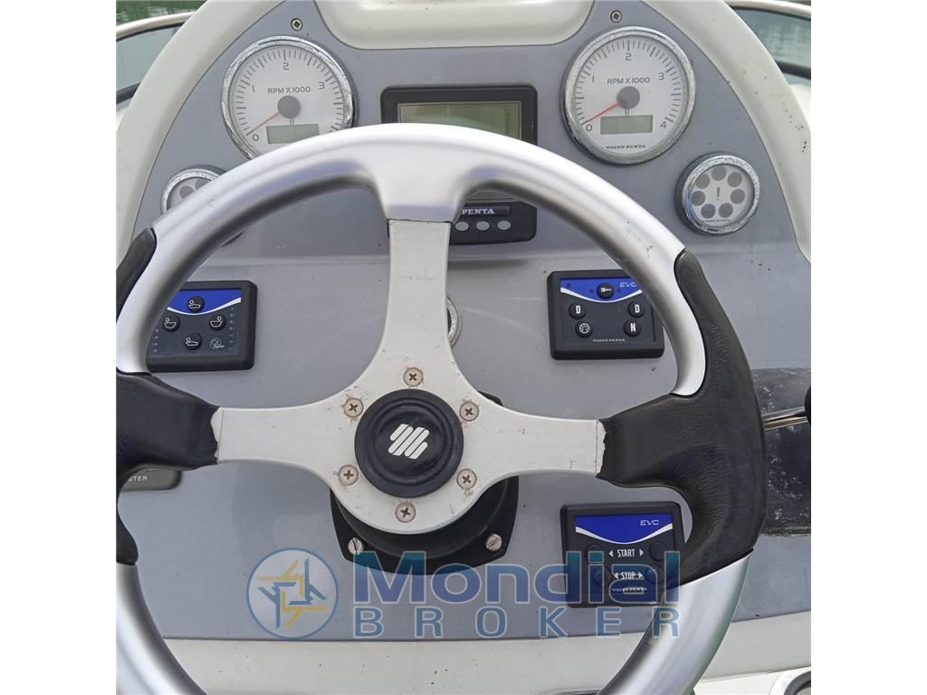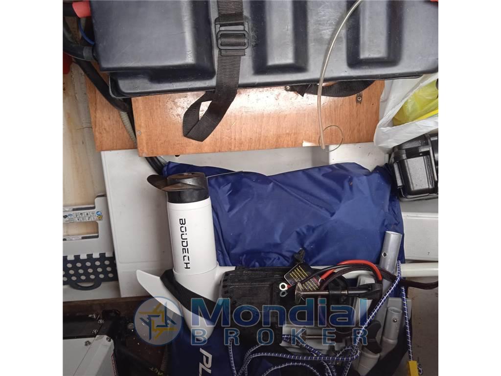 Notas internasNotas de la instrumentación2 Angolo barra, 2 Bussola (magnetiche), Contamiglia, Ecoscandaglio, GPS (Raymarine), Pilota automatico (ST 6001 Raymarne), Plotter (Raym. E120 interna, E80 est), Radar (Raymarine), 2 Radio VHF (Raymarine), Sedile Copilota.Notas de armamentoAllestimento tecnico e di coperta:Allarme motore, Caricabatterie (automatico), Doccia esterna (C/F), Doppia timoneria, Elica di prua - bow thruster, Faro orientabile (JABSCO 60080 100 mt), Flap idraulici (QL System 2 comandi), Passerella (idraulica Besenzoni e teak), Piattaforma, Pompa di sentina automatica, Pompa di sentina elettrica, Pompa di sentina manuale, Porta ingresso (inox), Pozzetto Teak, Presa 220V banchina, Rollbar, Salpa Ancore Elettrico (3 postazioni), Scaletta da bagno (Elettrica), Tavolo pozzetto, Tender. Dotazioni domestiche di bordo: Aria condizionata (12000 BTU Vitrifrigo con 4 bocchette), Impianto acque nere (2 serbatoi), Prese interne 12v, Prese interne 220v, Serbatoio Acque Nere, 2 WC marino elettrico (JABSCO). Dotazioni di sicurezza: Dotazioni di sicurezza entro 12 miglia (per 6 persone). Intrattenimento: Altoparlanti (int. est. e fly), Digitale Terrestre, Impianto TV, Stereo, TV (Antenna e amplificatore). Cucina ed elettrodomestici: Fornello (El.De DIETRICH 2 piastre), Frigorifero interno (con cella cong), Microonde, Piastra elettrica (in pozzetto integrata). Tappezzerie: Bimini, Cappottina (Chiusura pozzetto), Cuscineria di prua, Cuscineria fly, Teli copri finestra, Telo Copertura Fly, Telo copriconsolle, Tendalino. |