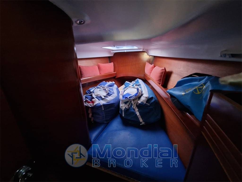 Notas internas3 cabine doppie, dinette convertibile + 1 bagno con wc marino - legni nel complesso in buono stato cucina ad L a sx con un largo frigo e due fuochi a gas, sulla sx il tavolo da carteggio Classic layout: mahogany wood 3 double cabins, convertible dinette + 1 bathroom with marine toilet - wood in generally good condition L-shaped galley to the left with a large refrigerator and two gas burners, chart table to the left Notas de la instrumentaciónB&G : GPS interno, VHF Icom, LOG-ECO e stazione del ventobussola magnetica alla timoneria jumboo all'albero con LOG-ECO-vento Notas de armamentosloop fast cruise con vele in dacron 78 mq :randa , genoa avvolgibile e tormentina + Spi con tangone vang idraulico, lazy jack e easy bag, paterazzo regolabile timone a ruota e trasto in pozzetto Sloop fast cruiser with 78 sqm dacron sail: Mainsail, roller furling genoa, and storm jib + spinnaker with pole Hydraulic vang, lazy jack and easy bag, adjustable backstay Wheel steering and cockpit traveler |