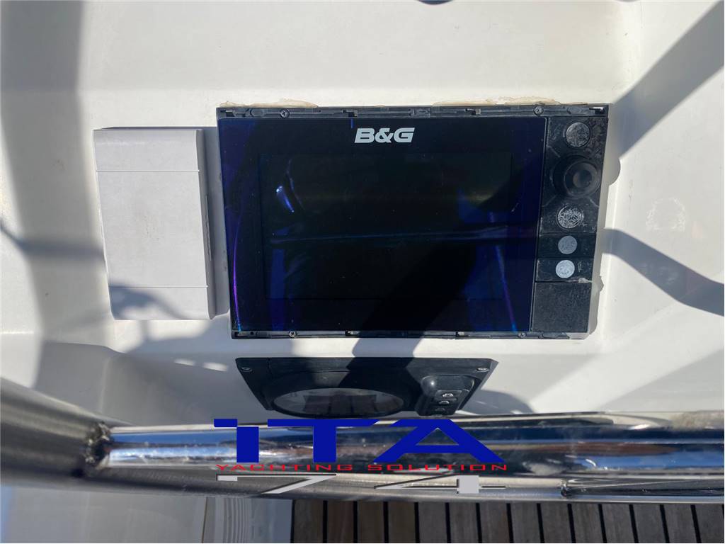 Notas internasFrigo - Acqua calda - Cucina con forno - Stereo - Lettore CD - Cuscini - Coperte – Lenzuola – Asciugamani - Posate - Bicchieri - Tazze - Piatti – Coltelli da cucina - Pentole - Padelle – 2 caffettiere espresso italiane – Filtri per caffè – Cucchiai di legno – Contenitori – Spremiagrumi - Grattugia – Apriscatole – Apribottiglie – Insalatiere – Termos – Tovaglia – Ventilatore cabina e zona pranzo Notas de la instrumentaciónNavigazione:Bussola – Stazione del vento - Log - Ecoscandaglio - VHF - Binocolo - Orologio - Barometro - Strumenti cartografici – Manuale del pilota delle acque italiane in inglese – Giornale di bordo – Bussola di rilevamento Sicurezza: Zattera di salvataggio - Cinture di sicurezza – Giubbotti di salvataggio – Boa di salvataggio a ferro di cavallo e luce – Torcia elettrica – Flare pack – boe fumogene - Pompa di sentina elettrica e manuale – Corno da nebbia - Estintori – Kit di pronto soccorso – Kit di riparazione per motore, vele e tender – Tappi in legno - Riflettore radar – Barra di emergenza per timoneria a ruota - Forche –– Lampada alogena – Boa di sicurezza per immersioni subacquee Coperta: Verricello elettrico - Ancora con catena da 70 m – Ruota – Passerella - Tender con chiglia rigida e due remi - Gonfiatore – Piccola ancora con cima da 15 m - Contenitore olio motore – Bimini top – Paraspruzzi - Mezzomarinaio - Parabordi - Ancora di emergenza con cima da 50 m – Maniglie per verricello - Corda (1X50m; 1x25m; 3x15m) – Sedia del nostromo - Scaletta da bagno – Tubo dell'acqua – Acqua, benzina, serbatoio carburante fuoribordo, - Bombole di gas (gas incluso) - Imbuto - Secchio – Spazzola di coperta – Tavolo – Doccia esterna - Guanti da lavoro - Cavo 220V con caricabatterie – Cuscino di cabina di guida – Pinne da snorkeling – Altoparlanti di cabina di guida – Giacca antivento – Presa d'aria |