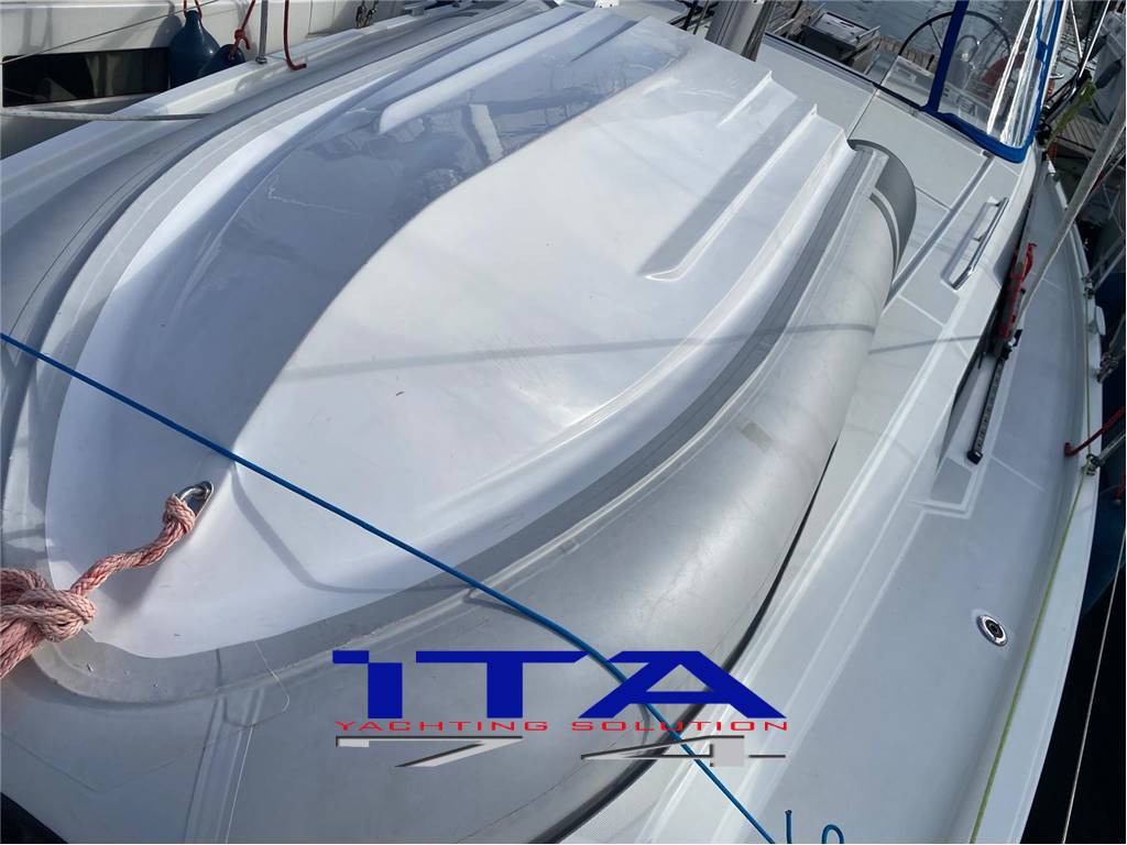Notas internasFrigo - Acqua calda - Cucina con forno - Stereo - Lettore CD - Cuscini - Coperte – Lenzuola – Asciugamani - Posate - Bicchieri - Tazze - Piatti – Coltelli da cucina - Pentole - Padelle – 2 caffettiere espresso italiane – Filtri per caffè – Cucchiai di legno – Contenitori – Spremiagrumi - Grattugia – Apriscatole – Apribottiglie – Insalatiere – Thermos – Tovaglia – Ventilatore cabina e zona pranzo Notas de la instrumentaciónNavigazione:Bussola – Stazione del vento - Log - Ecoscandaglio - VHF - Binocolo - Orologio - Barometro - Strumenti cartografici – Manuale di pilotaggio in italiano Waters in inglese – Giornale di bordo – Bussola di rilevamento – GPS Plotter – Pilota automatico Coperta: Verricello elettrico - Ancora con catena da 70 m – Ruota – Passerella - Tender con chiglia rigida e due remi - Gonfiatore – Piccola ancora con cima da 15 m - Contenitore olio motore – Bimini top – Paraspruzzi - Mezzomarinaio - Parabordi - Ancora di emergenza con 50 m corda – Maniglie verricello - Corda (1X50m; 1x25m; 3x15m) – Sedia nostromo - Scaletta da bagno – Tubo dell'acqua – Acqua, benzina, serbatoio carburante fuoribordo, - Bombole di gas (gas incluso) - Imbuto - Secchio – Spazzola di coperta – Tavolo – Doccia esterna - Guanti da lavoro - Cavo 220V con caricabatterie – Cuscino pozzetto – Pinne da snorkeling – Altoparlanti pozzetto – Giacca antivento – Wind Scoop |