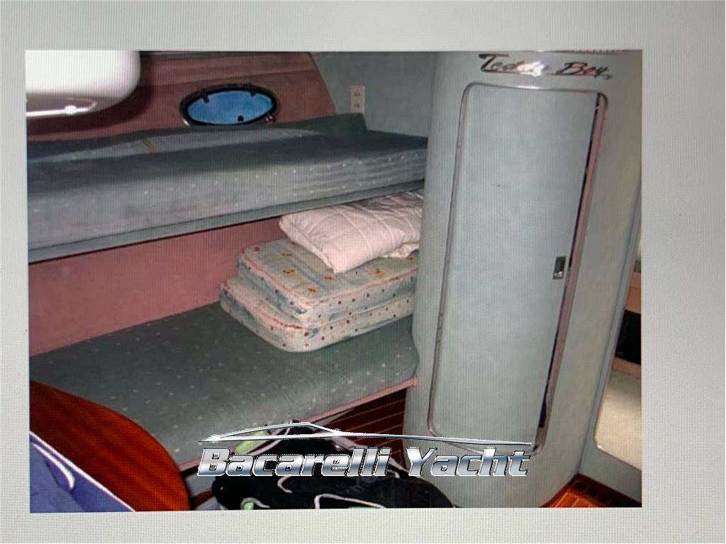 Notas internasAmpia dinette, cucina, una cabina matrimoniale, una cabina doppia con letti a castello, 1 bagno. Notas de la instrumentaciónBussolaEcoscandaglio Pilota automatico Plotter Radio VHF Notas de armamentoCuscineria completaFrigorifero interno Rollbar Tendalino Impianto TV Stereo Allarme sentina Doccia esterna Passerella idraulica Salpa ancore elettrico Pompa di sentina elettrico /manuale. |