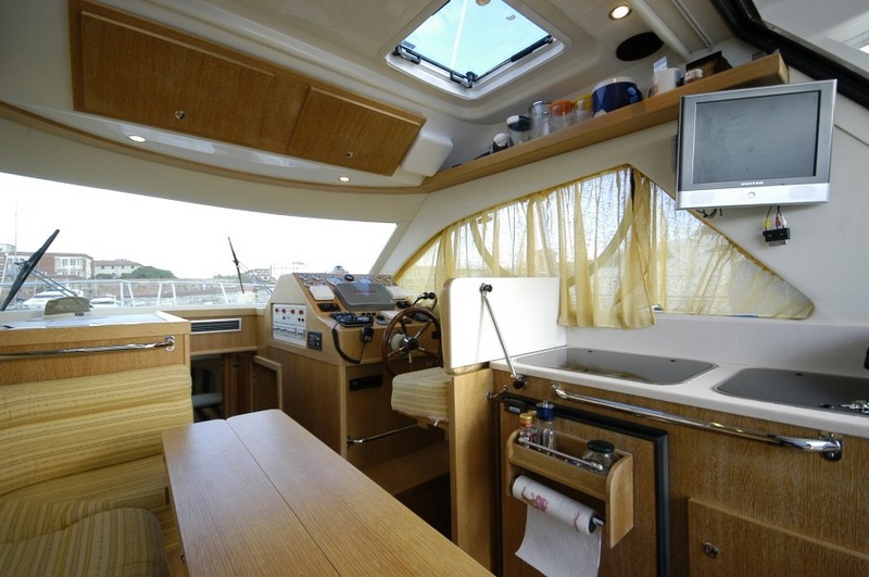 Notas internasNotas de la instrumentaciónVHF, registro, Gps-plotter-eco 10 "meteo color kit, Radar, autopilot, brújulasNotas de armamentoHidráulica de la dirección, puntales, con colgajos Facia, cargadores, 15lt caldera, ducha caliente y frÃa, bombas de sentina automático 2 Nr + un manual bomba, Autoclave, mar, aire acondicionado y calefacción central en cada cabina, 17 "lcd Tv, estéreo con reproductor de cd, toldos, dosel, al aire libre muebles cojines, cabina, baño-escalera extensible bajo la popa playa plataforma popa semiautomática pasarela con control remotoDelfiniera, detectores de humo, Molinete de ancla eléctrico, ancla con cadena de 50 m 20 kg, 1000W |