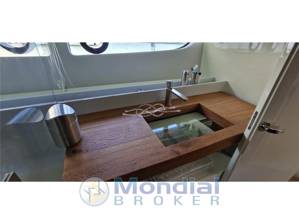 Notas internasAlloggio equipaggio con servizi. Notas de la instrumentaciónGPS/Plotter Raymarine (doppio schermo) - ecoscandaglio Raymarine - VHF Raymarine - pilota automatico Raymarine - joystick di manovra Volvo Penta.Notas de armamentoAria condizionata - gruppo elettrogeno - elica di prua - antenna TV - TV LCD - tender lift - passerella elettroidraulica - piano cottura elettrico - frigo freezer - lavastoviglie. |