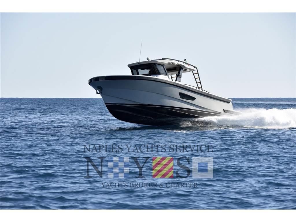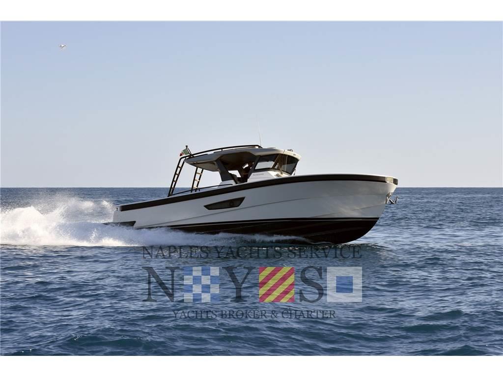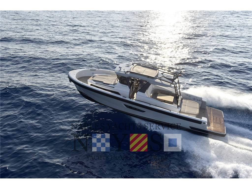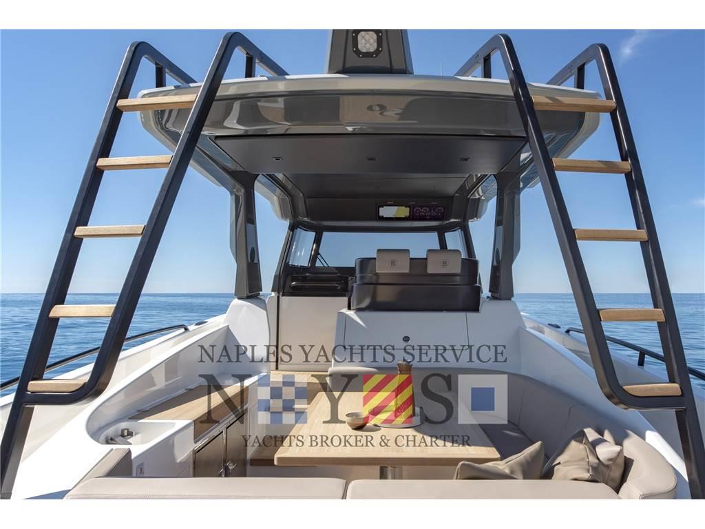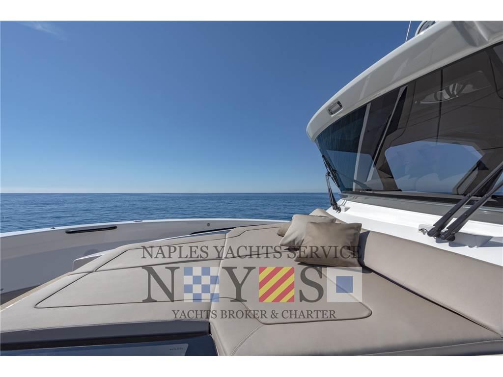 Notas de armamento11 Altoparlanti (6 exterior + 1 subwoofer + 4 interior), Aria condizionata, Bimini (aft with poles), Boiler, Cucina (Exterior side bar cabinet with sink mixer tap water cold and warm with teak top), Cuscineria completa, Cuscineria di prua, Cuscineria Pozzetto, Dimmer per Luci, Fornello, 2 Frigorifero esterno, Frigorifero interno, Inverter (2.000 W), Pavimento interno in legno, Piastra in vetroceramica, Prendisole aggiunto (on hard top), Prese interne 12v (USB), Prese interne 220v, Serbatoio Acque Nere, Stereo, Telo copriconsolle, WC marino elettrico, Zattera di salvataggio