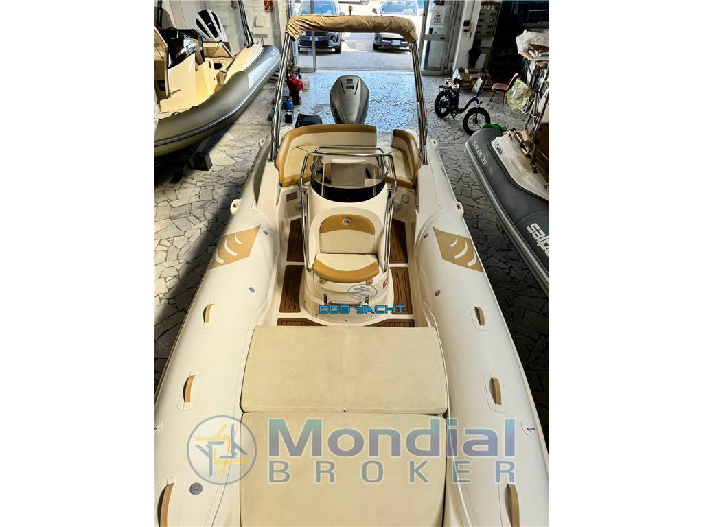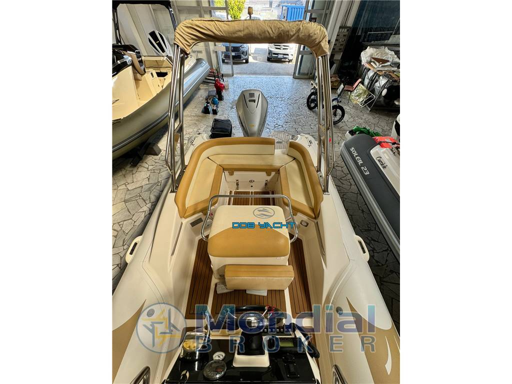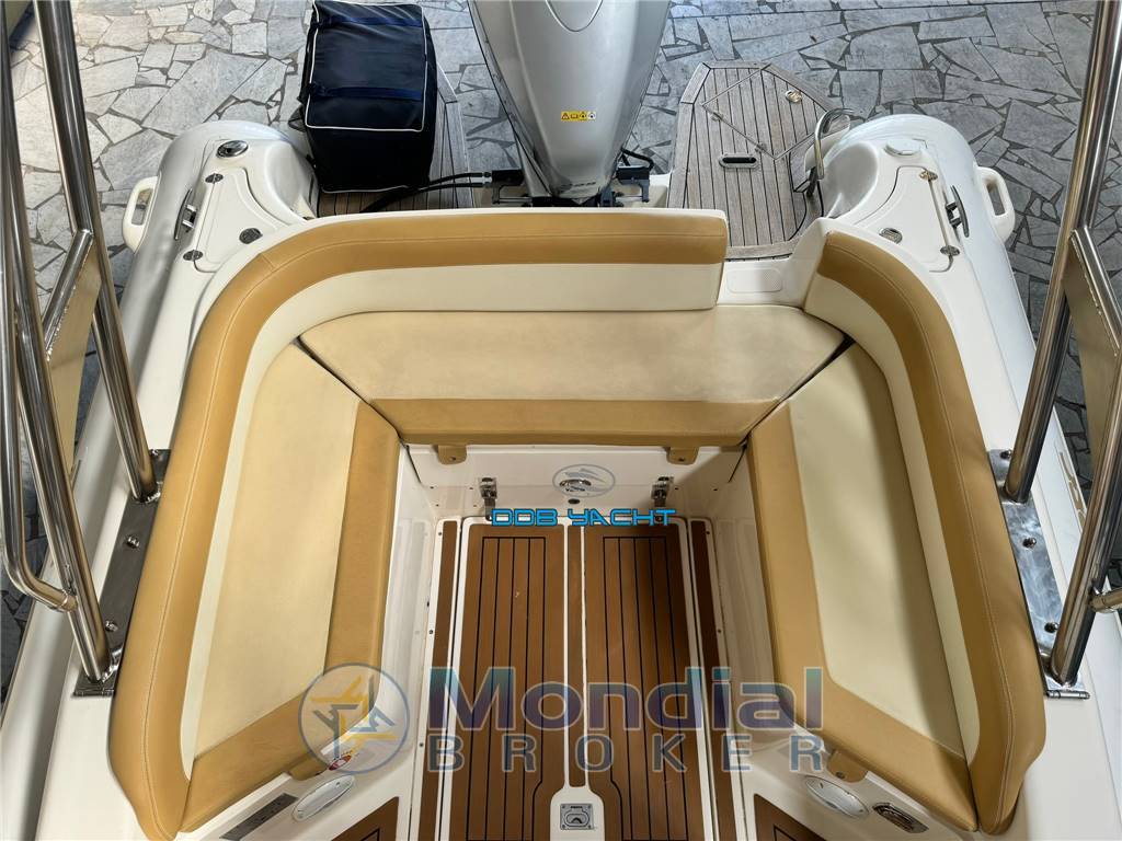 Notas internasNotas de la instrumentaciónstrumenti motore HONDA, manetta elettronica, gps GARMIN GPSMAP 721 XS interfacciato con ECO, vhf GARMIN 100i, bussola, luci via, tromba, stereo con casse BOSS, timoneria idraulica.Notas de armamentodotazioni di bordo, roll bar in acciaio con tendalino parasole con arcata in acciaio, telo copri consolle, pedane di poppa rivestite in teak sintetico con scaletta di risalita. |