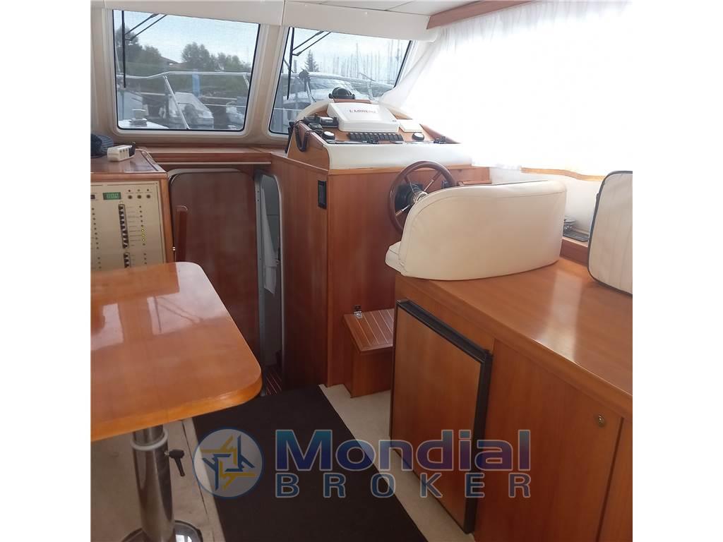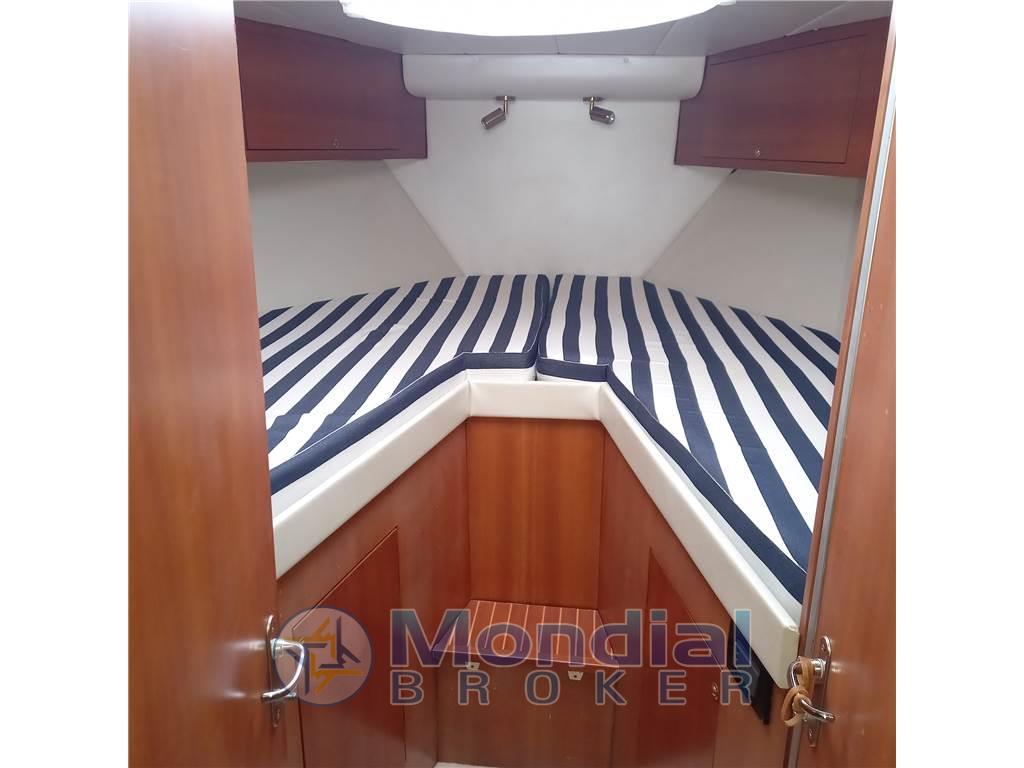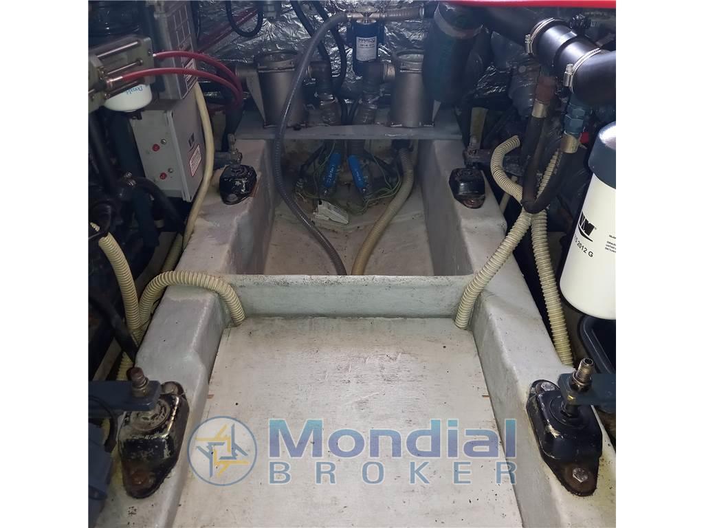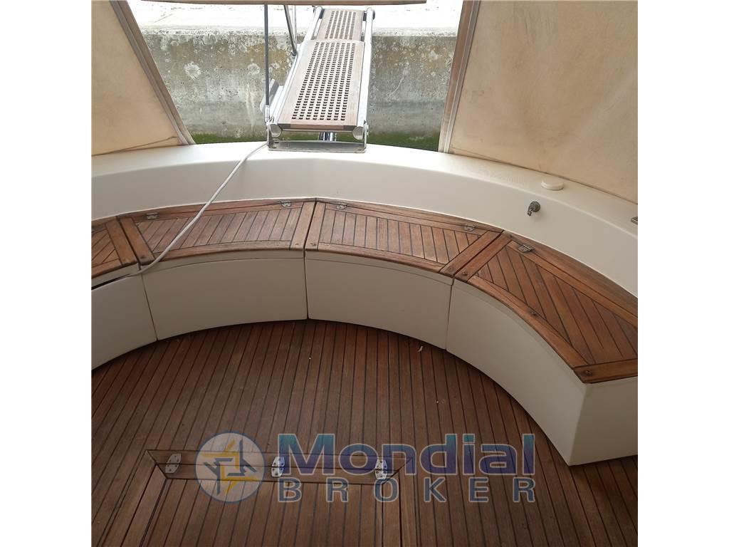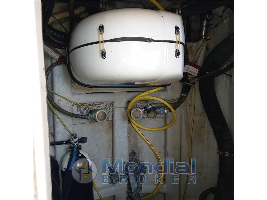 Notas internasNotas de la instrumentaciónAngolo barra, Antenna radar, Bussola, Comando motori elettronico, Computer di bordo, Contamiglia, Display, Ecoscandaglio, GPS (Lorenz), Pilota automatico, Radar, Radio VHF.Notas de armamentoAllestimento tecnico e di coperta:Allarme motore, Allarme sentina, Autogonfiabile, Colorazione speciale, Doccia esterna, Doppia timoneria, Faro orientabile, Flap idraulici, Impianto antincendio, Indicatori Flaps, Luci di cortesia, Passerella (Idraulica), Piattaforma, Pompa di sentina automatica, Pompa di sentina manuale, Pozzetto Teak, Presa 220V banchina, Rollbar, Salpa Ancore Elettrico, Scaletta da bagno, Tavolo pozzetto, Tromba. Dotazioni domestiche di bordo: Aria condizionata, Clima reversibile, Impianto acque nere, Prese interne 12v, Prese interne 220v, WC marino elettrico. Intrattenimento: Altoparlanti, Radio AM/FM. Cucina ed elettrodomestici: Cucina, Fornello, Frigorifero interno. Tappezzerie: Copripozzetto, Cuscineria completa, Cuscineria di poppa, Cuscineria fly, Telo Copertura Fly, Telo copriconsolle, Tendalino. |