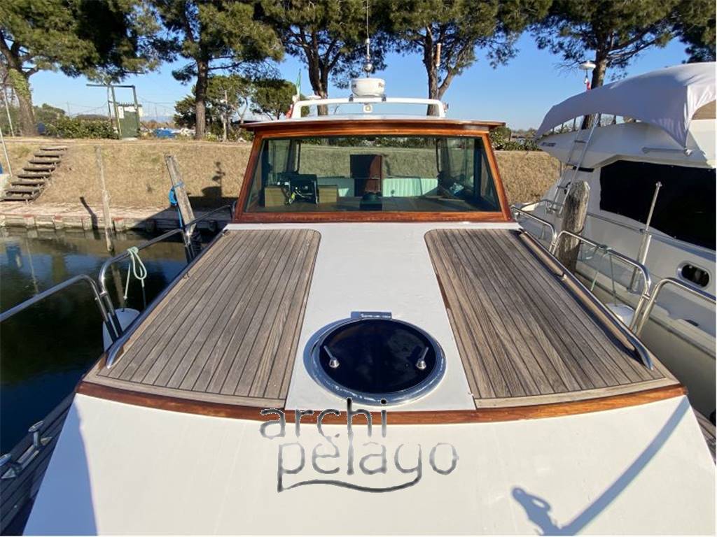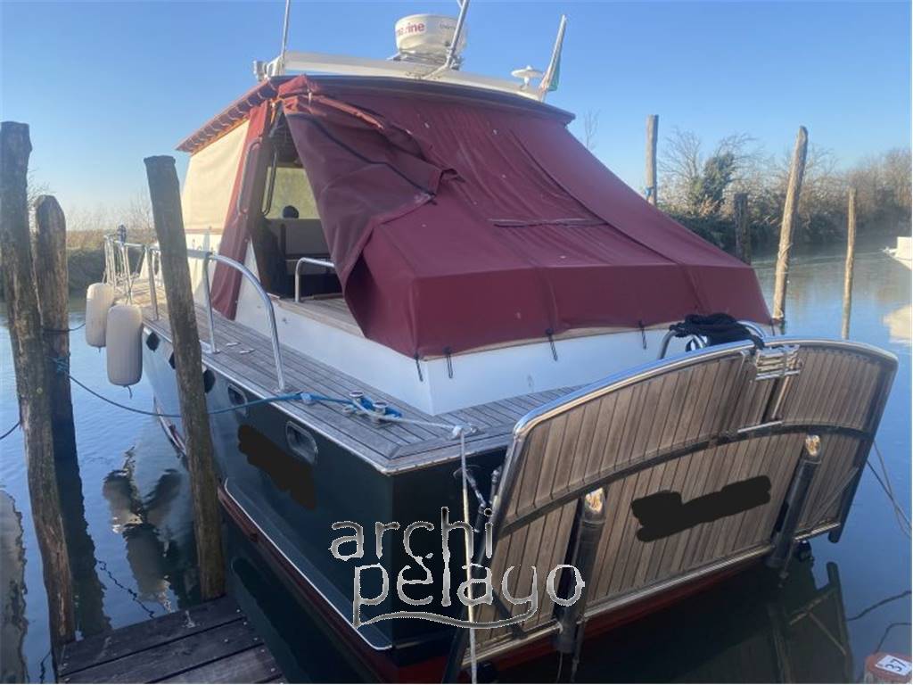 Notas internasIl calpestio in mogano filettato. Cabina armatore a prua con letto matrimoniale e bagno privato con lavandino, WC elettrico e doccia. Altra cabina ospiti a poppa separata con due letti in piano e bagno privato con lavandino, WC elettrico e doccia. Tavolo della dinette sottocoperta che si trasforma in comodo letto matrimoniale. Tutto il mobilio del pozzetto è removibile a piacimento. CUCINA: - Piano cottura a GAS n° 2 fuochi - Lavello a una vascha in acciaio inox - Frigorifero 60 lt con congelatore . Lavandino in acciaio inox in pozzetto richiudibile. Notas de la instrumentaciónELETTRONICA:- GPS, Ecoscandaglio,VHF, Radar, Autopilota tutti Raymarine. - Indicatore angolo di barra - Bussola - Faro orientabile - Tromba - Sistema EPIRB amovibile. Notas de armamentoACCESSORI:- Ancora - Salpa ancora - Flaps - Tetto apribile elettricamente sopra zona plancia di comando e co-comando - Telecamere in sala macchine - Riscaldamento a gas - Boiler 60 lt - Inverter - n° 4 batterie da 220 A del 2022 - Caricabatterie - Autoclave - n°1 TV in camera armatore - WC elettrici - Luci di cortesia in pozzetto e sulla scala di entrata sottocoperta - Grande tavolo in dinette per 6 persone trasformabile in letto matrimoniale comodo - Pozzetto in teak - Camminamenti laterali in teak - Prua in teak - Plancetta allungata abbattibile in teak - Scaletta bagno - Monta due eliche in acciaio inox - n° 2 eliche di rispetto in bronzo - Tender - Motore elettrico 14.8 V.DC Torqeedo Travel 401S per tender - Telo copertura cristalli laterali e parabrezza - Telo copri pozzetto - Telo para sole estivo |