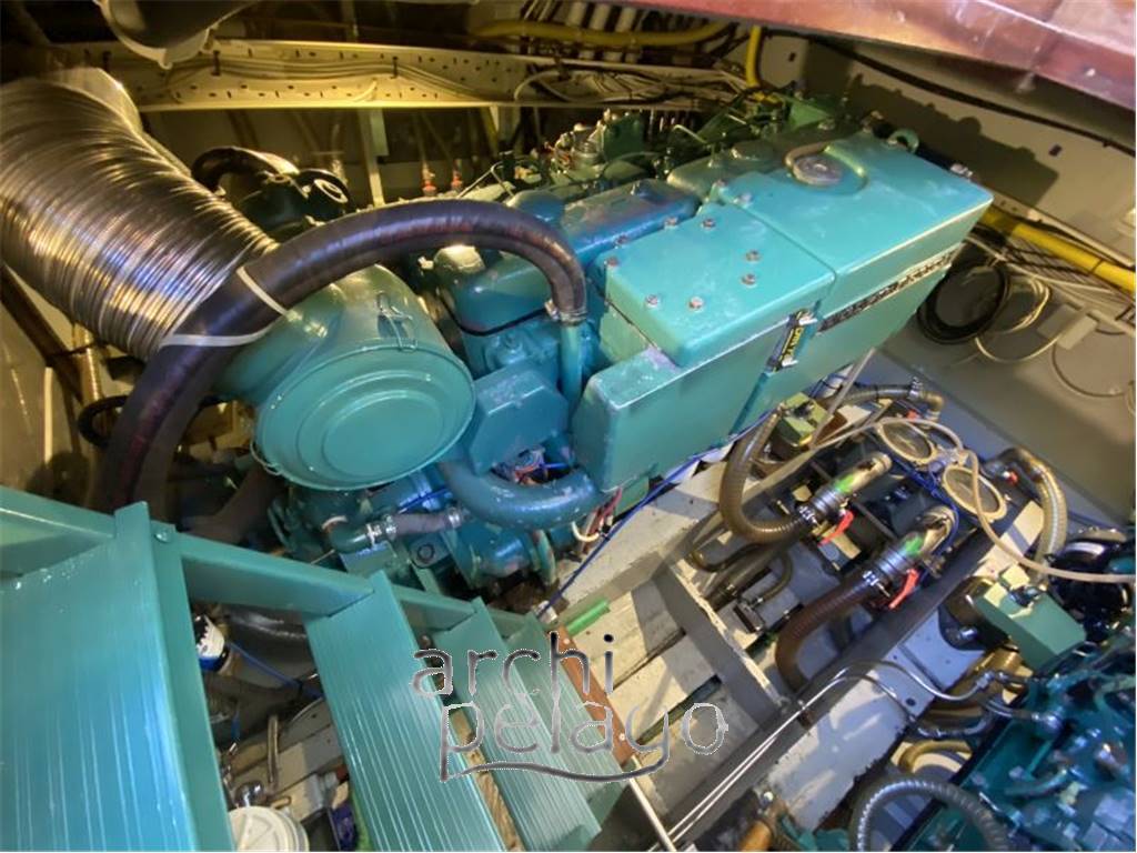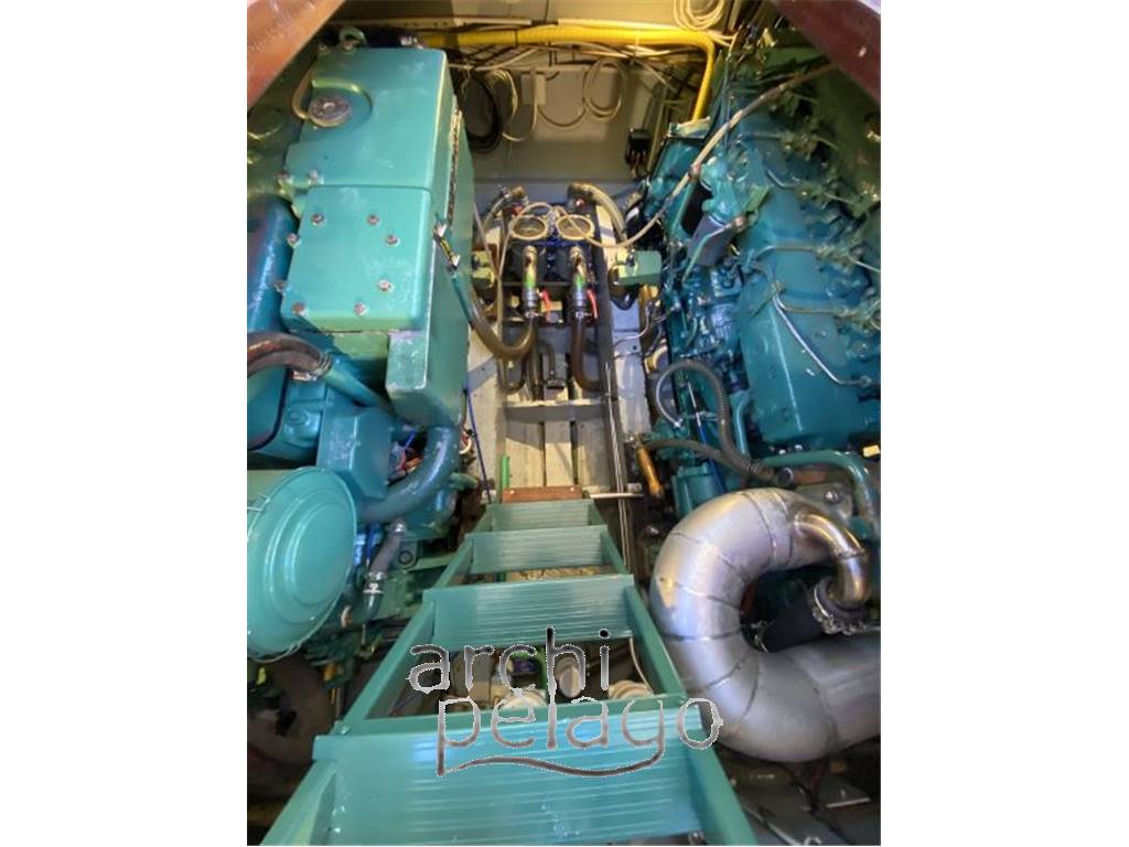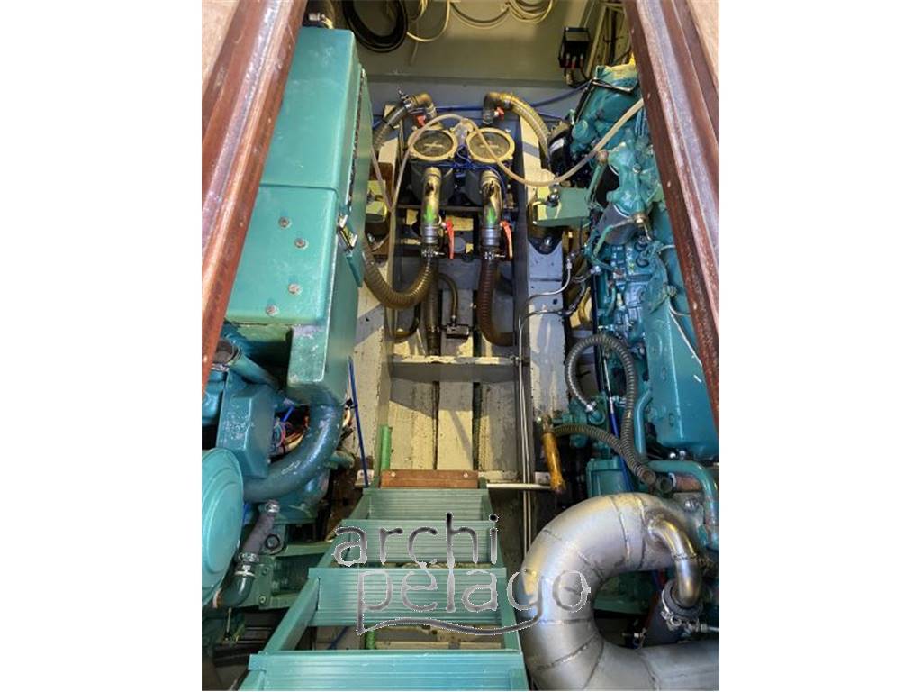 Lavori: Nel 2002 : - Sbarcati i motori e portati a zero ore, da lì refitting completo con totale smontaggio di tutto il legno fino al 2016 con messa in moto (foto e documenti dimostrabili) da lì 200 h ca di navigazione. Nel 2024 : - Pulizia totale scambiatori e sostituzione zinchi - Riverniciatura esterna completa - Antivegetativa. |