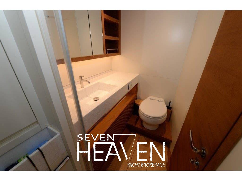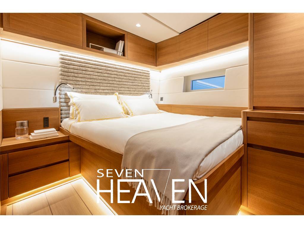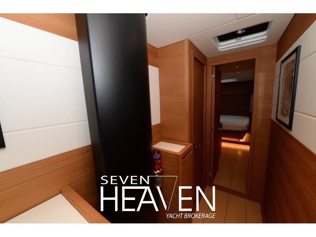 Notas internasVersione 3 cabine e 3 bagni, cabina armatoriale a prua, cabina VIP a poppa della cabina armatoriale e cabina con due letti singoli a poppa Cabina equipaggio doppia a poppa con bagno più seconda cabina marinaio doppia a prua (con bagno) 3 bagni con doccia separata e WC elettrici Cucina a induzione, forno elettrico 3 frigoriferi interni (2 ad apertura frontale 1 a pozzetto) Lavasciuga, lavastoviglie, macchina del caffè Serbatoi acque nere e acque grigie Generatore Fischer Panda 14Kw 1560h TV Color LCD Climatizzatore caldo/freddo Climma Serbatoi acqua per 1150 l Dissalatore Osmosea New 12-200 da 200lt/h Illuminazione interna ed esterna full led Serbatoio gasolio inox 1200 lt Purificatore acqua Notas de la instrumentaciónElettronica completa B&GRadar Hydra 5000 2 Plotter Zeus 3S 12’’ su consolles, 1 16’’ in carteggio, 1 9’’ in cabina comandante Pilota automatico Hydra 5000 Stazione vento Hydra 5000 VHF 60 AIS 2 Ripetitori jumbo all'albero Nemesis 12’ Manetta elettronica Impianto 24V corrente continua Pannello elettrico touch screen Batterie servizi 880Ah al gel Batteria motore 130Ah Mastervolt AGM Inverter da 2500W 24V Notas de armamentoChiglia telescopica 2,50m-3,70mColorazione scafo speciale Tender garage con sistema alaggio dedicato Plancetta di poppa elettrica Spray Hood a scomparsa Cuscineria pozzetto Bimini Ruote del timone in carbonio nere Coppia consolle per colonnine plotter con comandi luci, winch Luci integrate pozzetto e navigazione a led Salpancora elettrico 3000W e pompa acqua salata in gavone Ancora Hall 34Kg e 100m catena 12mm Elica di prua Passerella idraulica Besenzoni a scomparsa 2,5m 6 bitte a scomparsa, 4 passi cima Winch di tonneggio a prua Impianto antincendio Crash box Allarme gas Tender e fuoribordo Autogonfiabile |