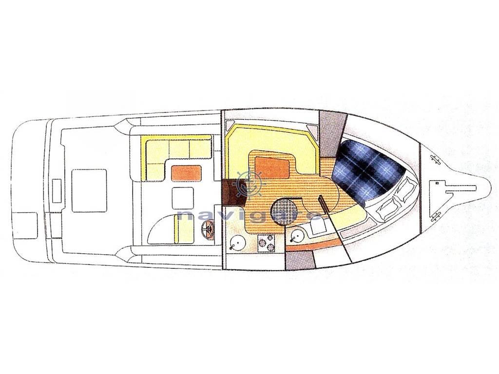 Notas internasScaletta accesso cabina con gradini in …………. Divano a “C” trasformabile in 2 posti letto con cuscineria Tavolo abbattibile con pistone a gas Gavoni sotto il divano Mobile pensile a 4 ante Mensola laterale Tendine scorrevoli interne su oblò Dinette Divano a “C” trasformabile in 2 posti letto con cuscineria Tavolo in ciliegio abbattibile con pistone Gavoni sotto il divano Cucina Mobile cucina con lavello in acciaio inox Piano cottura elettrico a 4 fuochi coperchio in cristallo Sottolavello con cassettiera ed alloggiamento per frigorifero e forno a microonde Frigorifero a 12 v da 85 lt. Mobili pensili sopra il lavello e ad angolo Bagno Mobile bagno con piana in granito, lavello integrato e anta sotto il lavello Mobile pensile con anta completo di specchio WC elettrico a depressione Cabina doccia circolare con porta in plexiglass e carabottino in teak Notas de la instrumentaciónA SCELTA DEL CLIENTENotas de armamentoInterni in ……... - Pavimenti in ………...Porta ingresso cabina scorrevole in plexiglass grigio europa e acciaio inox con serratura Scaletta accesso cabina con gradini in …………. Divano a “C” trasformabile in 2 posti letto con cuscineria Tavolo abbattibile con pistone a gas Gavoni sotto il divano Mobile pensile a 4 ante Mensola laterale Tendine scorrevoli interne su oblò |