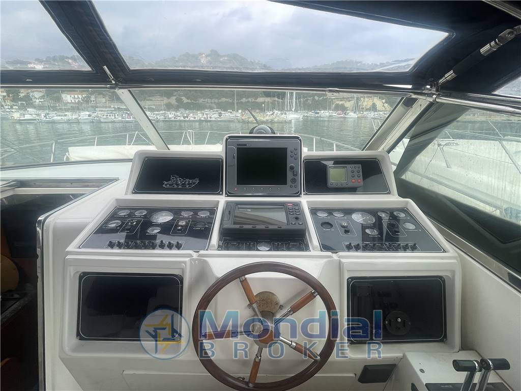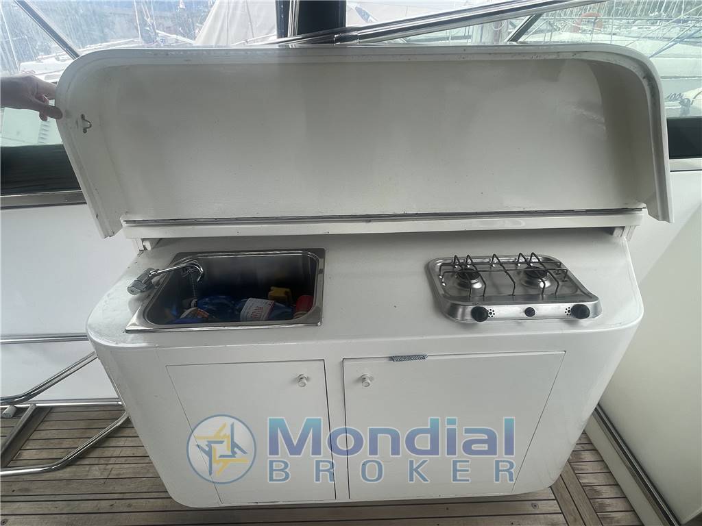 Notas internas1 Cabina doppia con letti in piano / 1 Twin cabin with flat beds 1 Cabina doppia con letti a castello / 1 Cabin with bunk beds 2 Bagni con wc elettrico / 2 Heads with electric wc Cucina con piastra in vetroceramica, frigo, forno e microonde / Hob with ceramic plate, fridge, oven and microwave oven Dinette con divano a L, tavolo e tv a dx / Saloon with L-shape sofa, table and tv at starboard Notas de la instrumentaciónElettronica completa Raymarine / Raymarine complete electronic:Eco-Log / Echo-log Flap elettrici / Electric flaps Gps / Gps Plotter C120 / C120 plotter Pilota automatico / Autopilot Radar Raytheon / Raytheon radar Vhf Shipmate rs8300 / Shipmate rs8300 vhf Notas de armamentoBoiler / BoilerCappottina / Sprayhood Bimini / Bimini Cuscineria di prua / Bow cushions Cuscineria pozzetto / Cockpit cushions Digitale terrestre / Digital terrestrial receiver Cucina esterna a 2 fuochi con lavello e frigo / Cockpit 2-burner stove with sink and fridge |