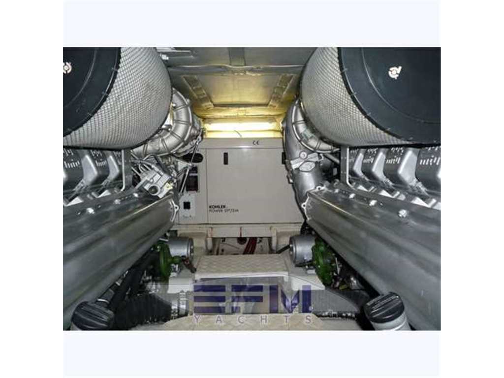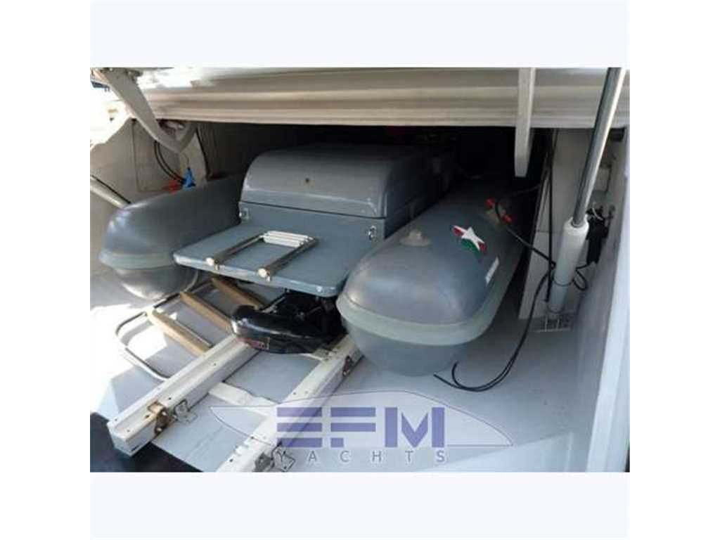 Notas internasAtlantica 78 è una imbarcazione open di 24.30 metri di lunghezza per un baglio di 6.03, quindi una tra le più grandi della categoria e che si distingue per la linea di impostazione classica stemperata da soluzioni innovative e moderne. E’ una barca estremamente veloce, la sua carena a V profonda e le eliche di superficie riescono a sfruttare gli oltre 4000 cavalli, sviluppati dai due MTU 16V 2000 M91, e farle raggiungere l’eccezionale velocità di 48 nodi, praticamente irraggiungibile da buona parte della concorrenza. La linea è estremamente filante e slanciata, con il pozzetto e il parabrezza molto arretrati che lasciano grande spazio alla zona prendisole. Gli interni sono altamente personalizzabili e adattabili ai gusti e alle esigenze dell’armatore. La configurazione è quella che prevede 4 cabine ospiti con 4 locali bagno annessi più la zona living e gli alloggi per l’equipaggio. Ma è una delle tante interpretazioni che possono essere date ad una Atlantica 78, che nasce e si sviluppa attorno alle preferenze e scelte dell’armatore che sceglie di acquistare un gioiello della cantieristica italiana. Interni moderni ed eleganti , salone open space con grande divano a "u" laterale in pelle chiara, tavolino e mobile bar con frigo e con pavimento in teak- ampie vetrate laterali per visione esterna - la porta in cristallo che separa il salone dal pozzetto è a scomparsa totale e in pochi secondi si può ottenere un unico grande ambiente completamente aperto o, a scelta, chiuso e climatizzato con inclusa la postazione di pilotaggio. Nel pozzetto troviamo l' angolo bar con frigo, icemaker e lavabo e un grande prendisole in pelle sopra all' Hangar. La suite armatoriale a poppa a tutto baglio con letto matrimoniale, bagno privato e box doccia separato - cabina vip a prua con letto matrimoniale ad isola e bagno privato con bo - 2 cabine ospiti gemelle a centro barca con letti in piano e bagno privato - cabina equipaggio con 2 letti a castello e servizio con doccia separata con entrata dal pozzetto - cucina in stile moderno spaziosa e razionale con grande frigocongelatore side by side, lavello in acciaio inox a due vasche, lavastoviglie, piano cottura a 4 fuochi e forno - moquette chiara cambiata nel 2009 nelle cabine interne - L'imbarcazione e' dotata di un sistema Internet WIFI via modem , di impianto TV SAT con decoder SKI in ogni ambiente , e di un impianto di videosorveglianza con telecamere a circuito chiuso e con applicazione trramite server per controllo remoto da IPHONE o IPAD. She was built in 2006 but First Registred in italy in 2007 and is powered by European manufactured twin MY 16V200s M91– 2030 with Arneson Drives. Her layout features 4 cabins and guest staterooms, with separate heads, plus crew quarters for two with private head and shower. The roomy salon with U shaped full sided couch centers on a 42” Flat Screen TV. There are abundant areas to lounge on large sun pads outside on both the bow and stern areas. Her helm area contains a full bar with air conditioning, a pop up 42” flat screen TV, Bose surround sound and a retractable hard top. Other notable features include a bow thruster, SAT TV and SAT phone system, Internet WIFI , passerelle, garage for a14 Novamarine idrojet , and twin generators 17 and 13 kw. MAIN DECK GENERAL • Divan with cushions; fabric coverings from Yard’s samples • Extensible table, hi-low adjustable. • Two Pilot seats with cushions and footrest board • Cabinet bar with two s/s drawers refrigerator, ice maker and sink • Two Bar Stools • Cabinet with shelves for Hi-Fi and TV system • Forward sundeck cushions with vinyl or fabric Coverings • Aft sunpad and divan with vynil or fabric coverings • Aft Sunshade • Cockpit table with movable dining top • Fiberglass swimming platform with teak covering • Swimming ladder • AFT fresh water showers (2), one each side • Forward fresh water shower (1) • Transom hatch with hydraulic opening for tender • Cockpit with teak covering EXPRESS VERSION • Fiberglass windshield with RadarArch • Bimini canvas with detachable front and side panels • Aft Radar Arch canvas with s/s frame • Sliding companion door CRUISER VERSION • Hard Top with electrical opening sunroof • Hide away main door from cockpit to deck living area. • Side door (1) • Two hide away stern doors • Air conditioning throughout livingarea • Varnished teak parquet in living area CABIN DECK GENERAL • Living area layout will be carried out according to furnishings general plans • Wood materials selected from two Yard’s samples; clear polished or matt finished • Varnished teak parquet on companion ladder, corridor, galley and crew quarter. • Carpet on staterooms floor from Yard’s sample • Synthetic materials or wood on walls from Yard’s samples; lacquered panels or synthetics on ceilings, leather or fabrics on divans from Shipyard's samples STATEROOMS • Staterooms layout will be carried out according to furnishings generalplans; three or four cabins version • Materials similar to those used in theliving area. • Mattress, coverlets, and curtain fabrics at customer's choice from Yard’ssamples. • Hi-Fi system in all cabins. • LCD TVs in Master and VIP cabin connected to the DVD player in salon. BATHROOMS • Bathroom's layout will be carried out according to the furnishings general plans • Fiberglass on ceiling and walls; • Lacquered wood furniture; • Ceramic heads and sinks; stall shower box, chromed faucets • Floors of fiberglass and teak wood CREW QUARTER • Access from galley and from deck • Two beds and wardrobe • Toilet with shower • Wood + synthetic materials on walls; ceilings of synthetic materials. • Cushions and mattress with coverlets and curtains at customer’s choice from Yard samples. • Hi-Fi system • Safe INTERIOR DECORATION PARTICULARS • Hidden safe in Master cabin and Crew quarter • Optional central vacuum clean