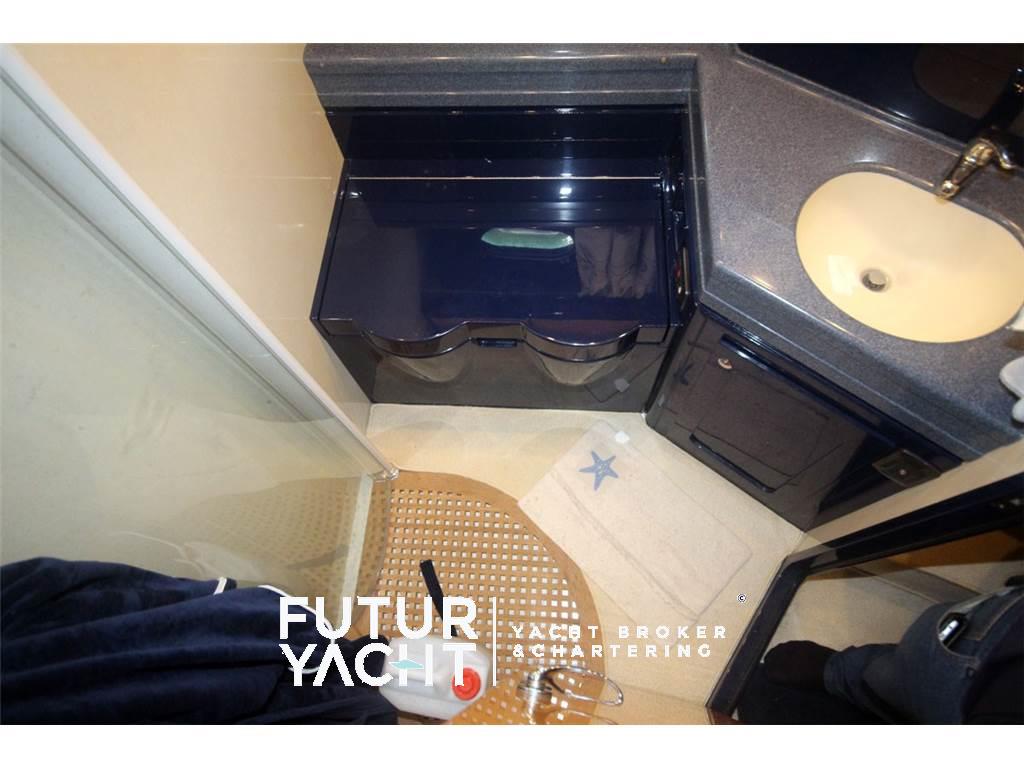 Notas de armamentoAllestimento tecnico e di coperta: Allarme motore, Ancora (con catena in acciaio inox), Autoclave, Caricabatterie, Doccia esterna, Elica di prua - bow thruster, Flap idraulici, Passerella, Pompa di sentina automatica, Pompa di sentina manuale, Pozzetto Teak, Presa 220V banchina, Salpa Ancore Elettrico, Scaletta da bagno, Winch tonneggio di poppa