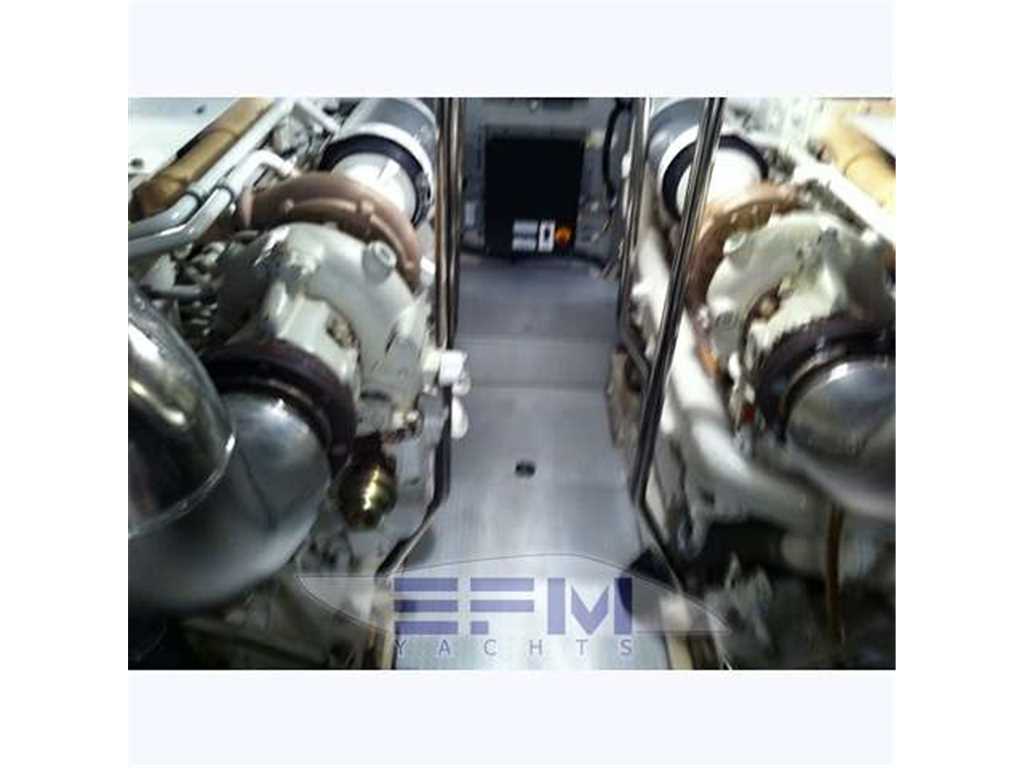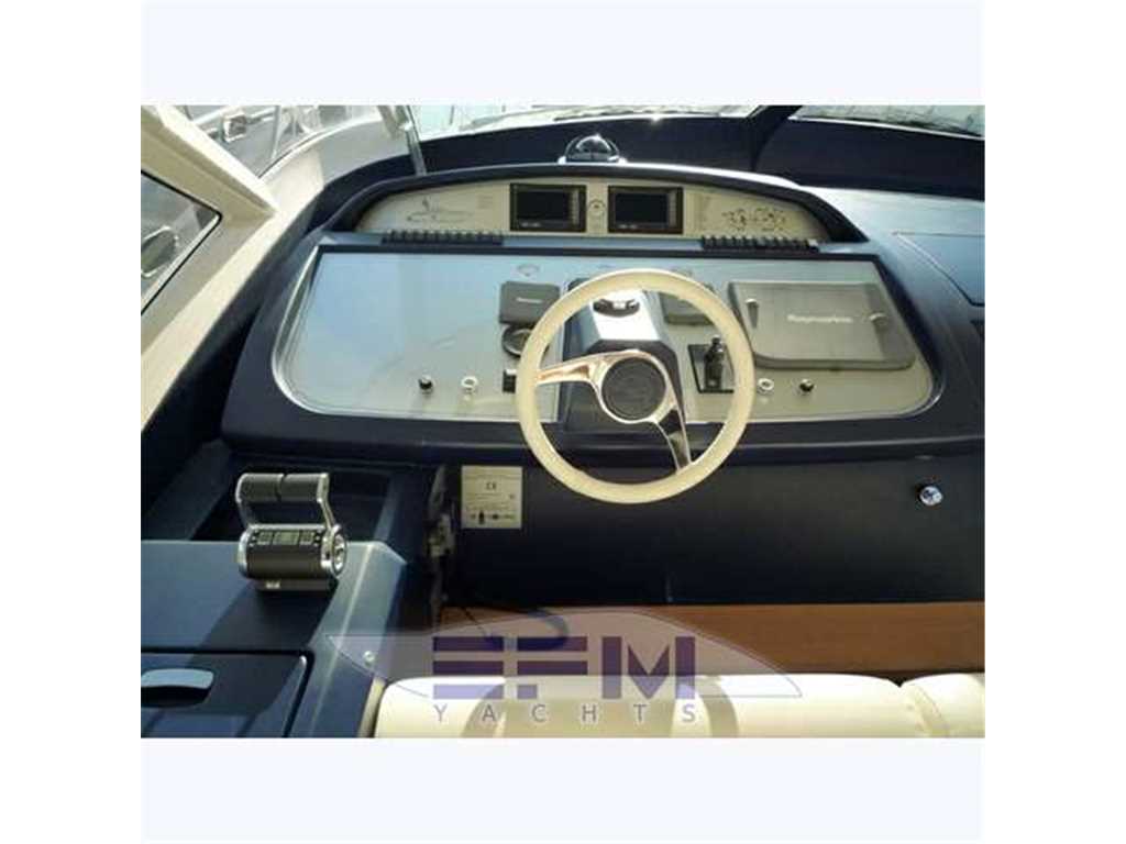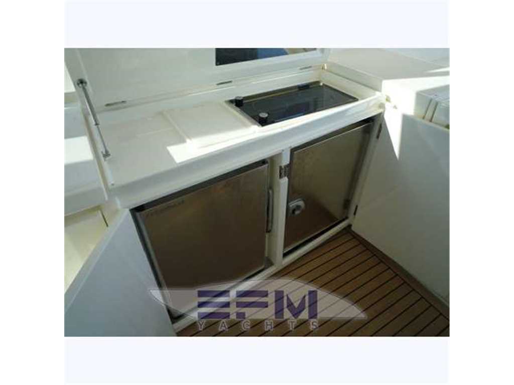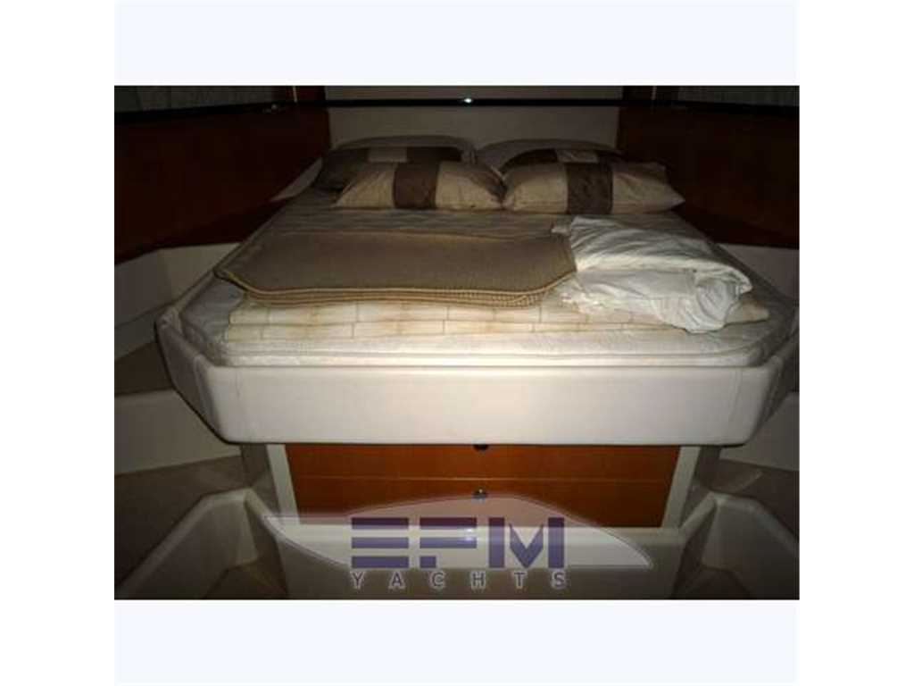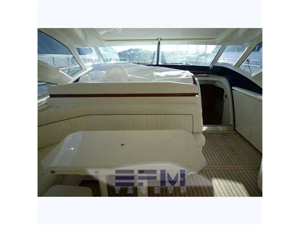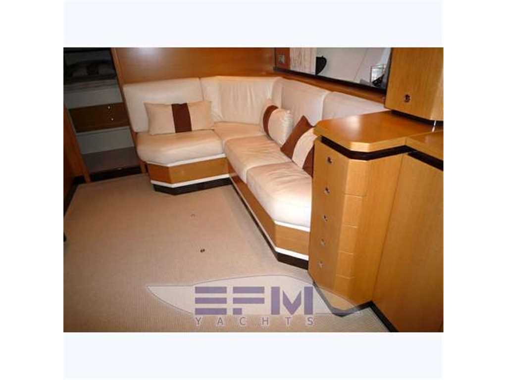 Notas internasStruttura in vetroresina multiassiale impregnata con resina vinilestere e stratificata a mano - Coperta e murate in sandwich di Airex - Longheroni e madieri di rinforzo stratificati e resinati - Strato esterno in gel coat isoftalico neopentilico - Carena trattata con antivegetativa. COPERTA E POZZETTO Hard-top con tettuccio ad azionamento elettrico - Antenne,e illuminazione pozzetto - Parabrezza con cristalli temperati - Tergicristalli con lavavetri - Passo d’uomo in cabina armatore in acciaio inox – Battagliola alta in acciaio inox - Boccaporto al gavone di prua - Paratia stagna anticollisione - Bottaccio in acciaio inox - Porta scorrevole di accesso al salone - Portello di accesso alla cabina di poppa - Doccetta a prua e poppa - Cappa pozzetto poppa - Cappetta copricruscotto - Tenda parasole con candelieri - Zone prendisole a prua e poppa con materassini – Dinette con divano a “C” e tavolo ribaltabile - Mobile di servizio con frigorifero, lavello, pattumiera e gavone - Console comandi di emergenza - Luci di navigazione - Luci perimetro pozzetto - Tromba – Scaletta bagno elettroidraulica a poppa - Passerella elettroidraulica - Piattaforma di poppa con piano scorrevole per tender – Luci segna gradini specchio poppa – Teak nel pozzetto - Teak piattaforma di poppa e gradini – Lampada stagna a poppa. SALONE: SOGGIORNO/PRANZO Divano – Tavolo pieghevole con pouf (2) – Mobile Bar - Mobiletti pensili – Illuminazione e prese di corrente - TV colori 26” LCD con digitale terrestre integrato in chiaro – Stazione meteo (Orologio - Barometro – Igrometro) - Radiostereo CD/MP3/DVD con attacco iPod con 4 altoparlanti di cui 2 nel pozzetto - Oblò (2) con tendaggi. CABINA ARMATORE CENTRALE Letto matrimoniale con ripostiglio sotto il piano, burlone rivestito, materasso, due guanciali e copriletto - Parure letto - Tavolini da notte (2) - Mobiletti pensili - Luci di lettura - Armadio con griglie di aerazione – Mobile polifunzionale con cassetti e pouf - TV colori 20” LCD con digitale terrestre integrato in chiaro - Radiostereo CD/MP3/DVD con attacco iPod – Illuminazione e prese di corrente - Cassaforte - Specchio - Oblò (2) con tendaggi. BAGNO ARMATORE Armadietti e ripiani - Lavabo in VTR con miscelatore - Aspiratore - Specchio - WC elettrico - Illuminazione e prese di corrente - Doccia separata con bidet panchetta e carabottino di teak - Oblò con tendina - Parure bagno. CABINA OSPITI PRUA Letto matrimoniale con cassettiera e burlone rivestito, materasso, due guanciali e copriletto - Parure letto – Ripiani portaoggetti e luci di lettura - Armadio con griglie di aerazione – Specchio - Radiostereo CD/MP3/DVD con attacco iPod - Illuminazione e prese di corrente e TV - Oblò (2) con tendina. BAGNO OSPITI PRUA Armadietti e ripiani - Lavabo in VTR con miscelatore - Aspiratore - Specchio - WC elettrico - Illuminazione e prese di corrente – Doccia separata con bidet panchetta e carabottino di teak - Oblò con tendina - Parure bagno. CABINA OSPITI POPPA Scala di accesso con tambucio - Due letti con cassettiere e burloni rivestiti, materassi, guanciali, copriletti - Parure letti - Armadio con griglie di aerazione - Mobiletti pensili - Luci di lettura - Specchio - Radiostereo CD/MP3/DVD con attacco iPod – Illuminazione, prese di corrente e TV - Oblò con tendina. BAGNO OSPITI POPPA Armadietti e ripiani - Lavabo in VTR con miscelatore - Aspiratore - Specchio - WC elettrico con funzione bidet - Illuminazione e prese di corrente - Box doccia con carabottino di teak - Oblò con tendina - Parure bagno. CABINA MARINAIO Letto con materasso, guanciale, copriletto – Parure letto – Oblò (2) con tendine – Radiostereo CD/MP3/DVD con attacco iPod - Illuminazione e prese di corrente - Angolo bagno con lavabo e WC elettrico con funzione bidet, doccia e parure bagno. CONSTRUCTION Structure in hand laid up multiaxial fibreglass impregnated with vinyl ester resin - Deck and sides structures in Airex sandwich - Girder system to reinforce bottom - Isophtalic Neopentilic gelcoat - Hull's antifouling treatment. DECK AND COCKPIT Hard-top with electric sliding roof –Aerials and cockpit lighting – Stainless steel windshield structure with tempered glass - Windshield wipers with washers - Stainless steel hatchway in owner’s cabin - Stainless steel railing (high) - Hatch to the fore peak - Watertight bulkhead - Stainless steel fenders - Sliding door to the salon - Door to the stern cabin - Shower at bow and stern - Cockpit cover from roll-bar to stern - Dashboard cover - Sun canopy with stanchions - Sun lounges at bow and stern with mattresses - C-shaped upholstered dinette with folding table – Service furniture with fridge, sink, dustbin and stowage - Emergency control console - Navigation lights - Cockpit floor lighting - Horn – Electro hydraulic bathing ladder - Electro hydraulic gangway/davit - Sliding stern platform for tender - Transom steps with light – Teak in the cockpit - Teak on swimming platform and steps – Watertight stern lamp. SALON: GALLEY CORNER Cabinetry with corian counter top, cover, drawers and shelves – Corian sink with mixer - Electric stove with ceramic hot plates (4) – Table set and linens for 6 people – Pan set - Extractor fan – Refrigerator with deep-freezer (stainless steel) - Dustbin - Microwave combi oven – Overhead cabinetry - Lighting and power sockets – Portholes (2) with curtains. SALON: SITTING/DINING Sofa – Folding table with poufs (2) – Bar Furniture – Overhead cabinetry – Lighting and power sockets – 26” LCD colour TV with integrated TV cable decoder – Weather station (Clock – Barometer – Hygrometer) - Radio stereo with CD/MP3/DVD with plug for iPod - Portholes (2) with curtains. OWNER'S CENTRAL CABIN Double bed with stowage beneath, mattress, two pillows and bedcover - Bed set - Night table (2) - Cupboards – Reading lights - Ventilated wardrobe - Safe – Multipurpose cabinet with drawers and po