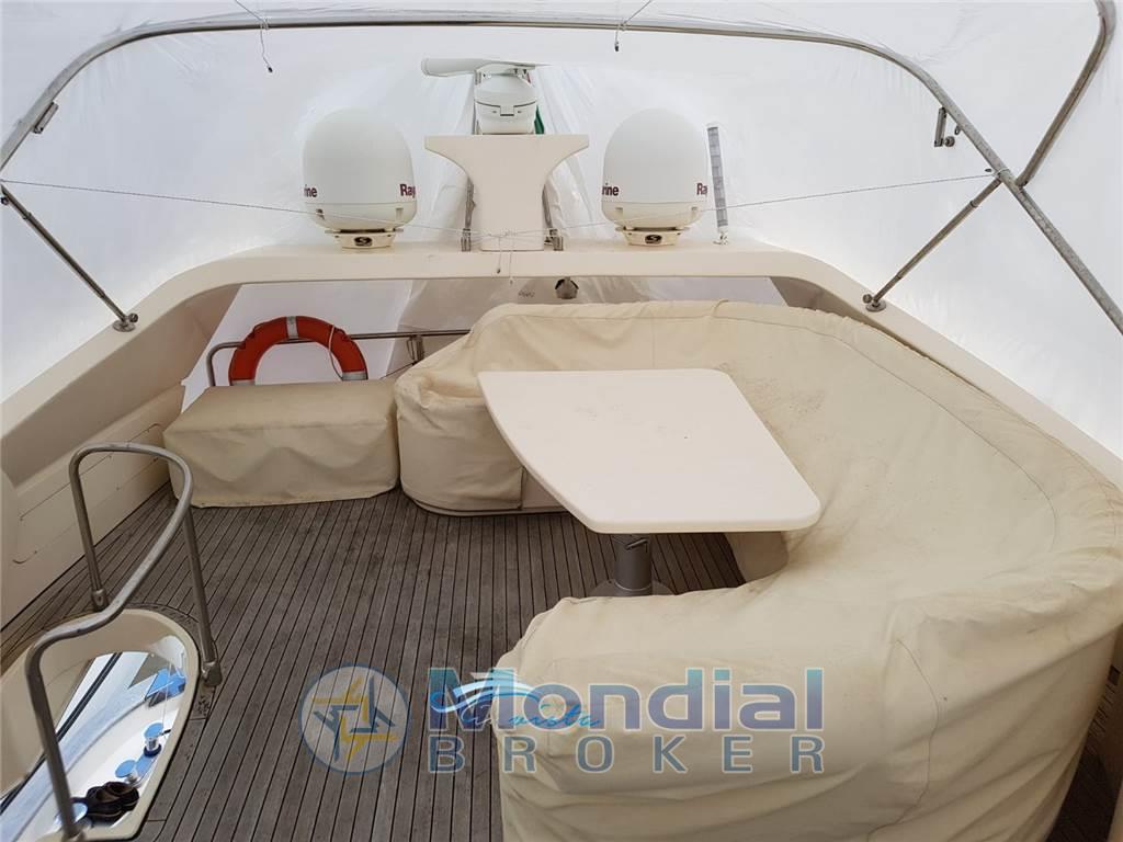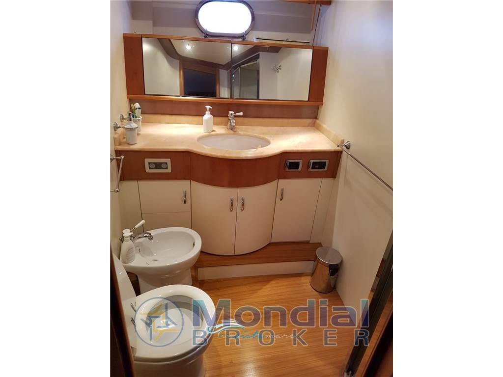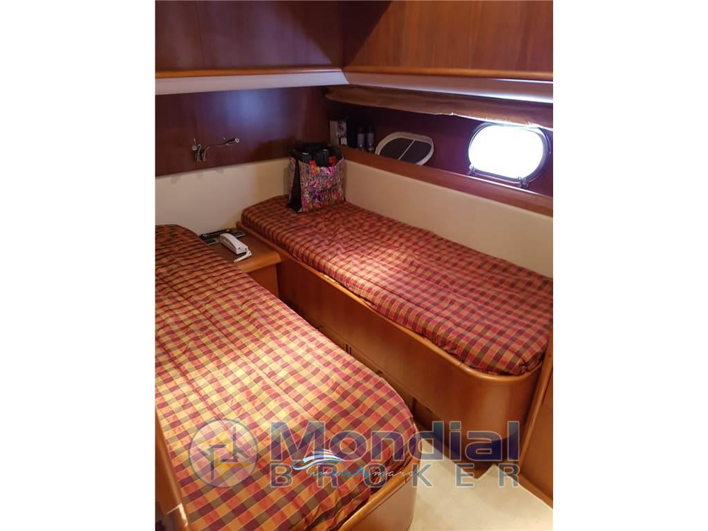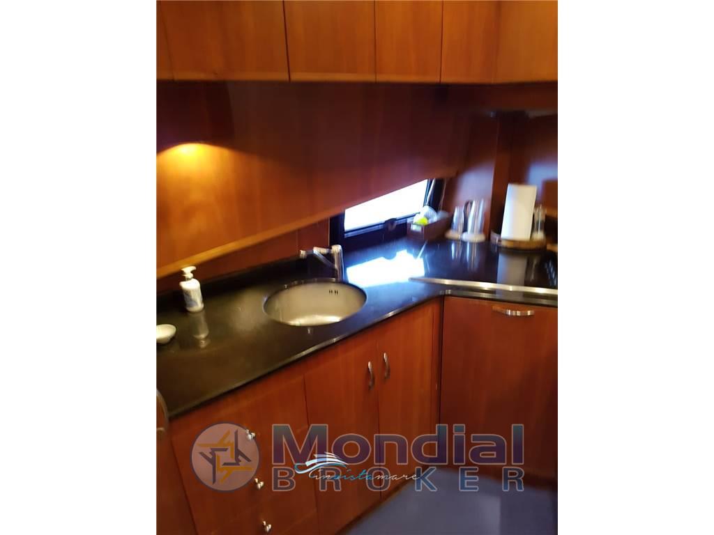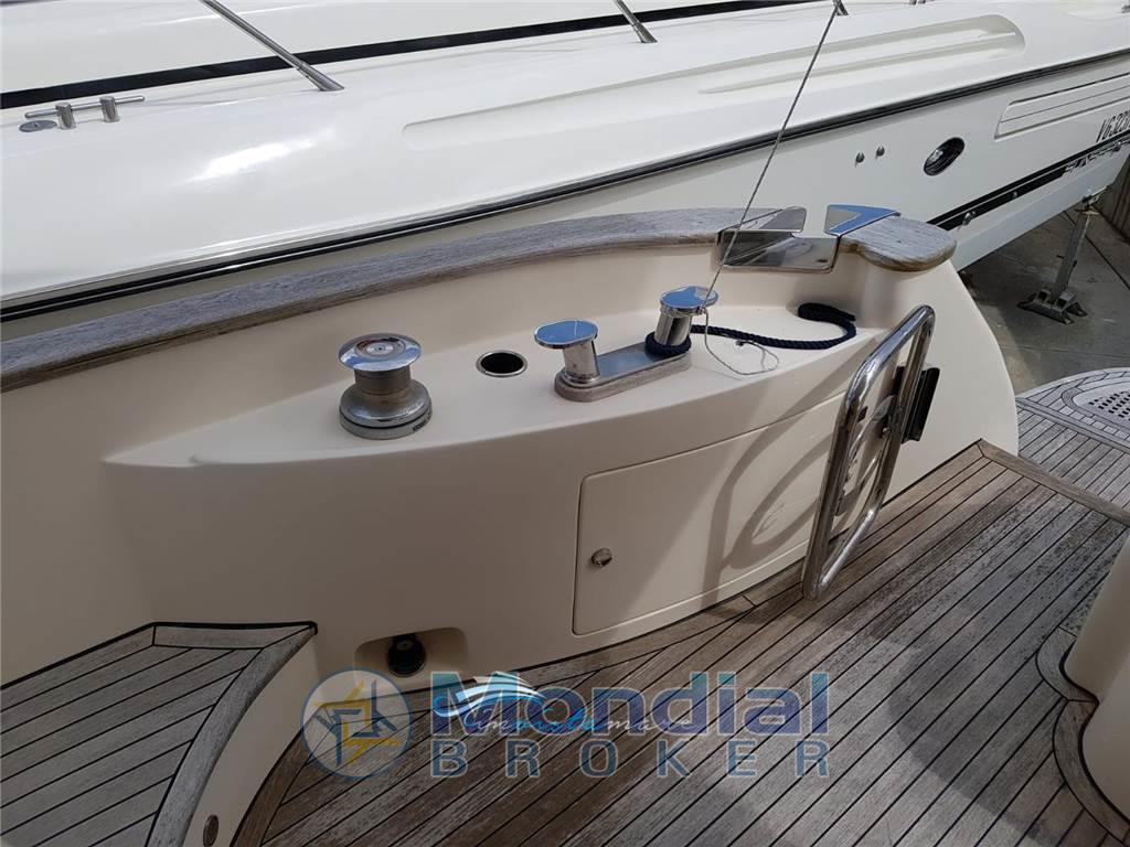 Notas de armamentoAntenna Satellitare TV, Aria condizionata, Bimini, Boiler, Cappottina (totale pozzetto), Clima reversibile, Cucina (4 fuochi vetroceramica), Cuscineria completa, Cuscineria di poppa, Cuscineria di prua, Cuscineria fly, Cuscineria Pozzetto, Dissalatore (150/lh), Dotazioni di sicurezza entro 50 miglia, 2 DVD (cabina arm. e cab. vip), Forno, Frigorifero esterno, Frigorifero interno, ICE Maker, Impianto acque nere (200 lt.), Impianto TV (Glomex), Inverter, Lavastoviglie (x 6 coperti), Lavatrice, Microonde (combinato), Piastra in vetroceramica, Prese interne 12v, Prese interne 220v, Stereo, Telecamera (macchine e poppa), Teli copri finestra, Tendalino, 2 TV, Zattera di salvataggio (14 P.)