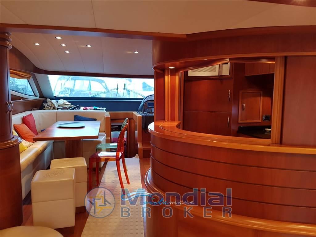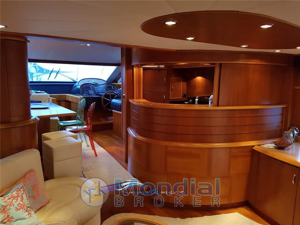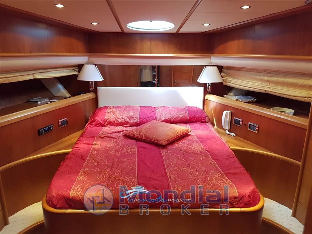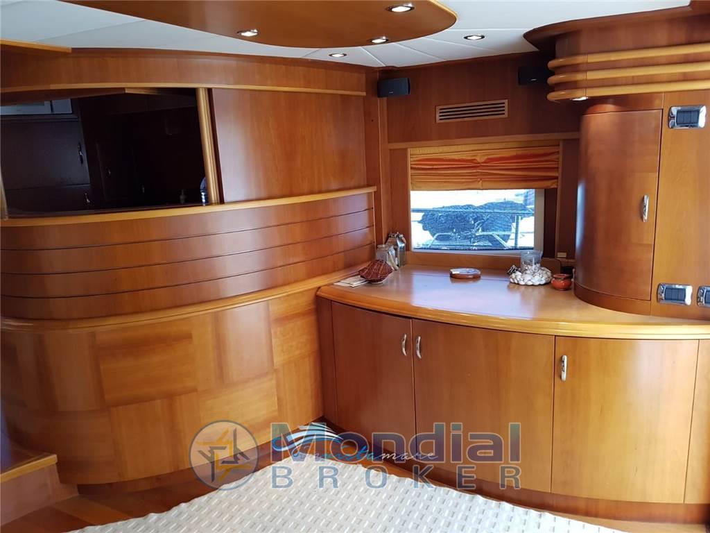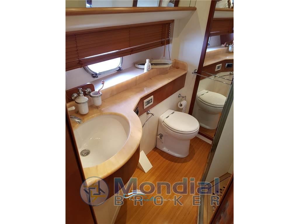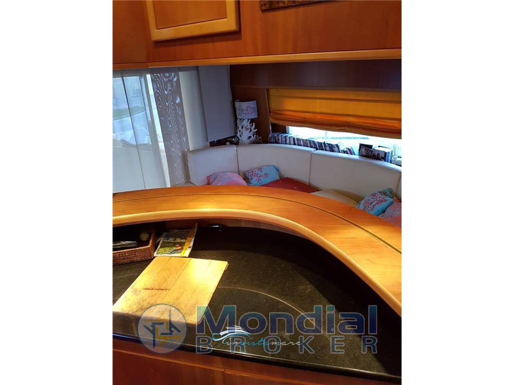 Notas de armamentoAntenna Satellitare TV, Aria condizionata, Bimini, Boiler, Cappottina (totale pozzetto), Clima reversibile, Cucina (4 fuochi vetroceramica), Cuscineria completa, Cuscineria di poppa, Cuscineria di prua, Cuscineria fly, Cuscineria Pozzetto, Dissalatore (150/lh), Dotazioni di sicurezza entro 50 miglia, 2 DVD (cabina arm. e cab. vip), Forno, Frigorifero esterno, Frigorifero interno, ICE Maker, Impianto acque nere (200 lt.), Impianto TV (Glomex), Inverter, Lavastoviglie (x 6 coperti), Lavatrice, Microonde (combinato), Piastra in vetroceramica, Prese interne 12v, Prese interne 220v, Stereo, Telecamera (macchine e poppa), Teli copri finestra, Tendalino, 2 TV, Zattera di salvataggio (14 P.)