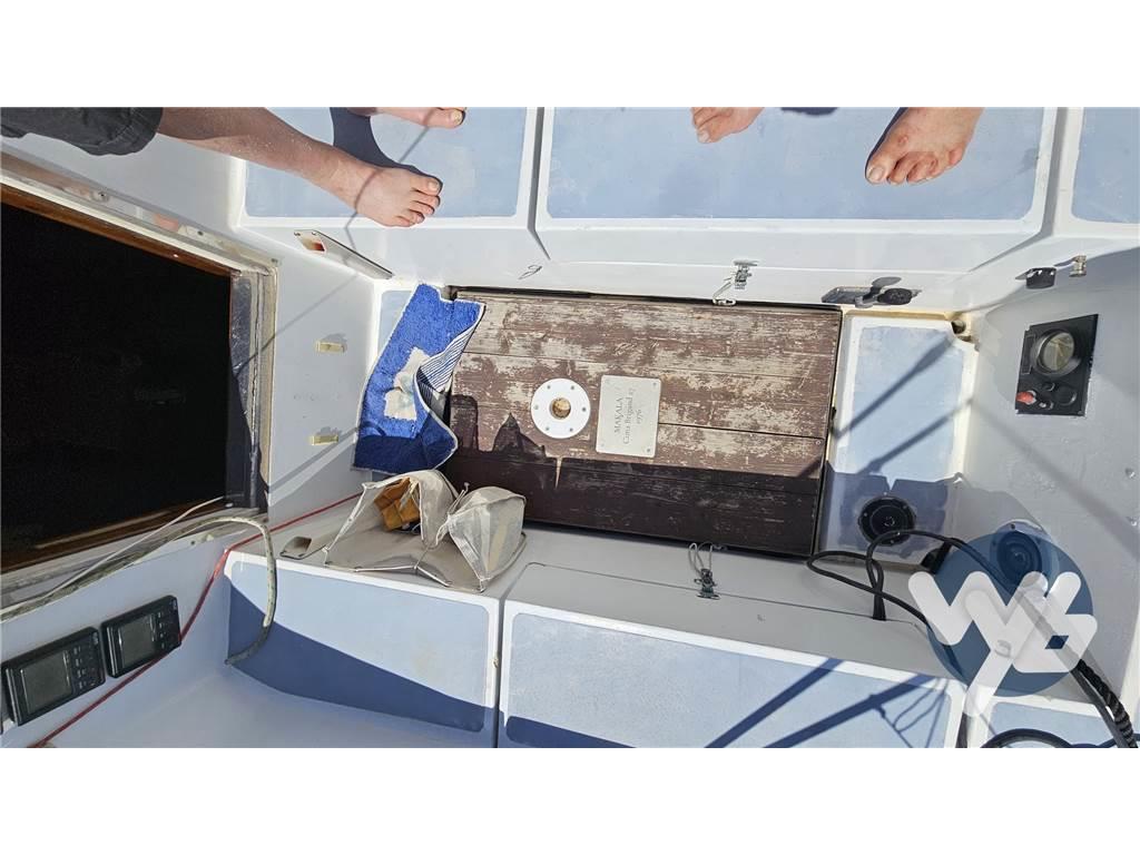 Barca di qualità dello storico cantiere CIMA originale con targa nel pozzetto, spaziosa e performante. Buone condizioni generali. Randa, fiocco e spin |