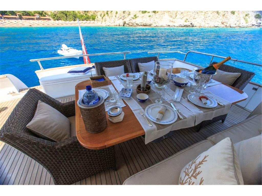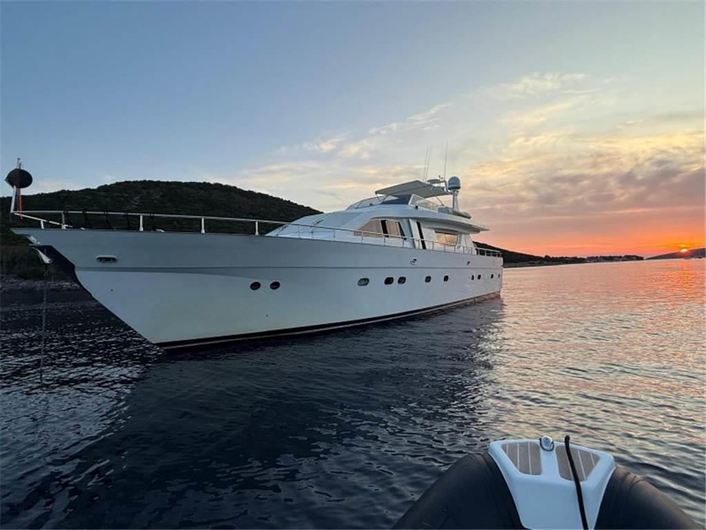 ALALUNGA 73 HIGH TECHNOLOGY, FLY, 1991, COSTRUZIONE IN KEVLAR, COPERTA IN TEAK MASSELLO DA 15 mm 2018, 2 x 1.370 HP CATERPILLAR, ELICA DI PRUA, 4 CABI |