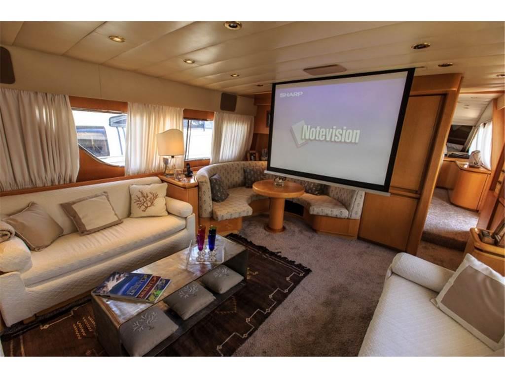 Notas internasNotas de la instrumentaciónBussola, GPS, Pilota automatico, Radar, Radio VHF.Notas de armamentoAllestimento tecnico e di coperta:Ancora, Elica di prua - bow thruster, Passerella, Piattaforma (Hydraulic), Pompa di sentina elettrica, Tavolo pozzetto, Winch. Dotazioni domestiche di bordo: Aria condizionata. Intrattenimento: Ricevitore satellitare, TV. Cucina ed elettrodomestici: Forno, Frigorifero interno (Electric), Lavastoviglie, Lavatrice. Tappezzerie: Bimini. |