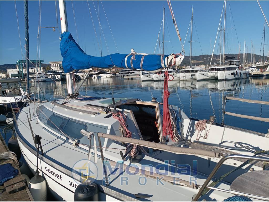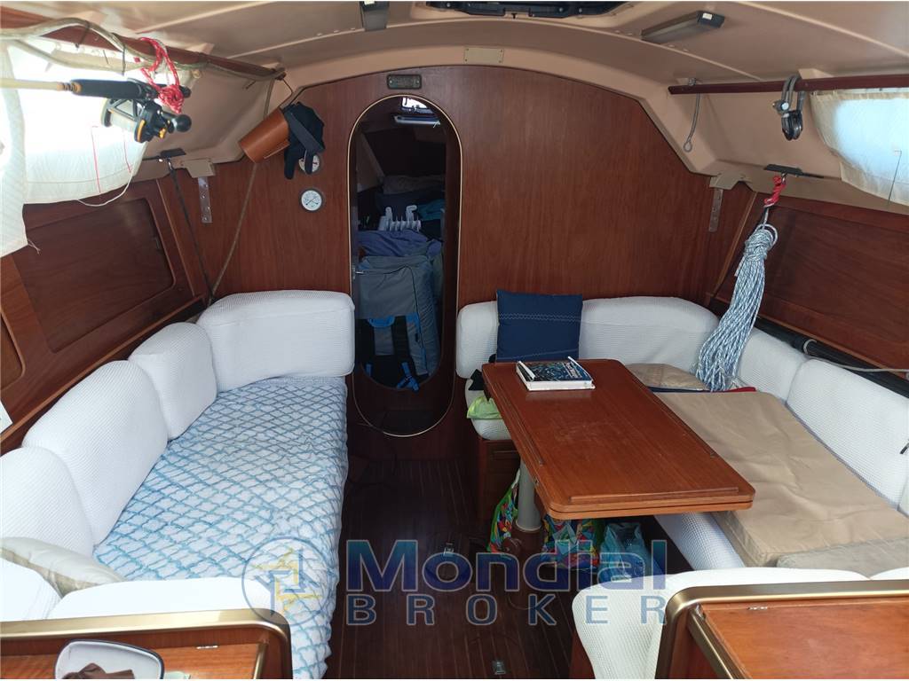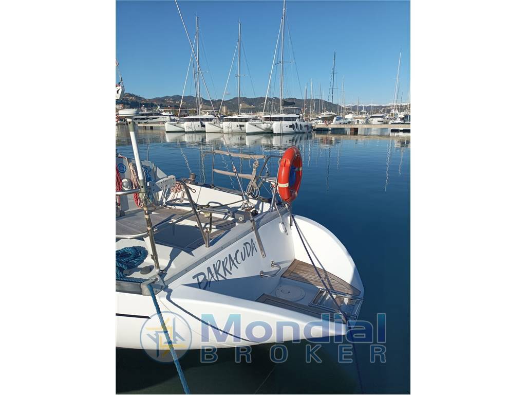 Il Gruppo Finot firma nel 1981 questo progetto che è stato uno dei successi del cantiere Comar. Scafo solido, con buone doti marine, costruito in vetroresina, con controstampo strutturale e coperta in sandwich. La coperta si distingue per la tuga allungata con ampie finestrature che assicurano una buona luminosità degli interni e per il pozzetto ben proporzionato e dotato di larghi gavoni. Gli spazi sotto coperta offrono una funzionale cucina a “U”, un quadrato accogliente, il tavolo di carteggio, il locale wc, una cabina doppia a prua e una cuccetta a poppa. Ampio specchio di poppa con base in teak Pozzetto e sedute in teak Pulpiti di poppa con sedute in teak |