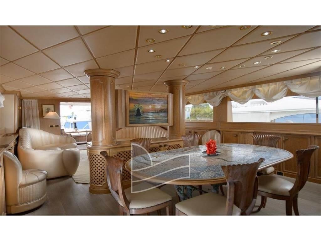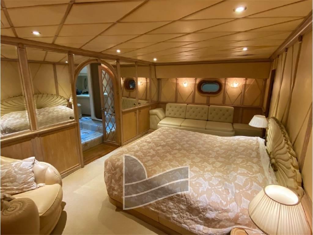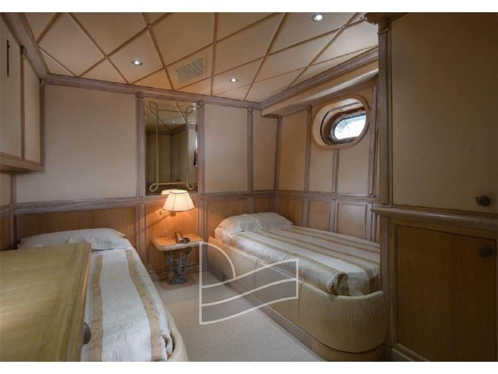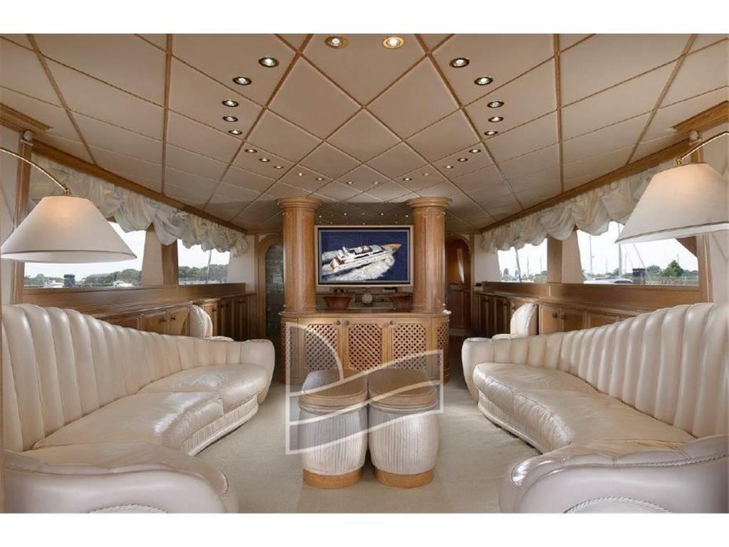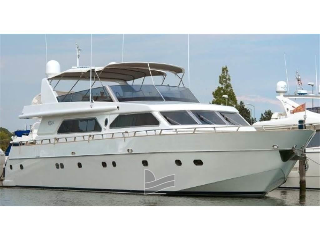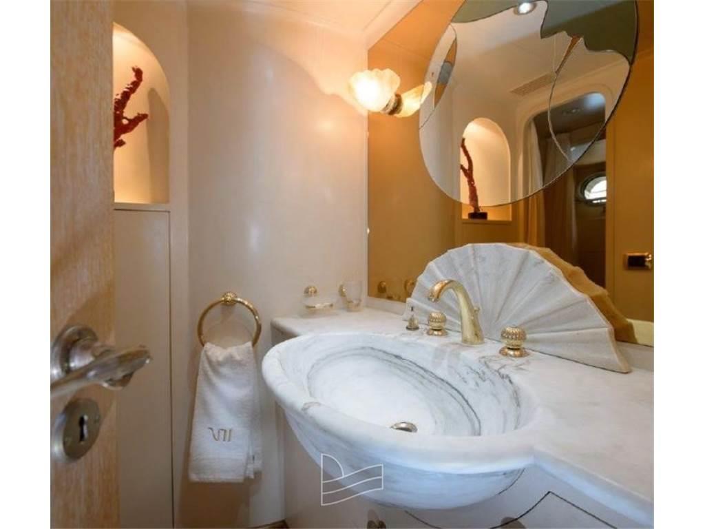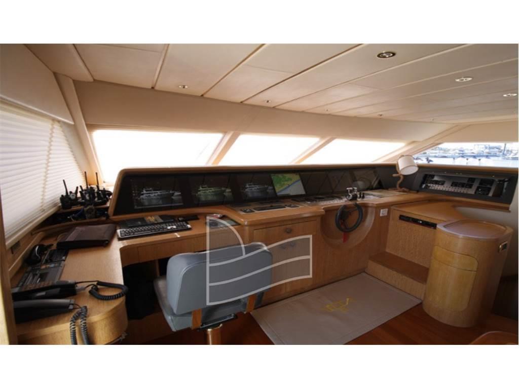 Notas internasNotas de la instrumentaciónAngolo barra, Antenna radar, Autoclave, Bussola, Camminamenti laterali in teak, Caricabatterie, Doccia esterna, Doppia timoneria, Ecoscandaglio, Elica di poppa - stern thruster, Elica di prua - bow thruster, 2 Flap idraulici, Gruette per tender su fly (Besenzoni), Impianto antincendio, Lavandino nel Pozzetto, Luci di cortesia, Passerella, Pilota automatico, Plotter con antenna GPS, 2 Porta ingresso, 2 Porta laterale, Pozzetto Teak, Presa 220V banchina, Presa acqua banchina, Radar, Radio VHF, Salpa Ancore Elettrico, Scaletta da bagno, Tavolo pozzetto, Tender, Tromba, 2 Winch tonneggio di poppaNotas de armamentoAntenna Satellitare TV, Aria condizionata, BBQ/ Grill, Bimini, Boiler, Congelatore, Cucina, Cuscineria completa, Cuscineria di prua, Decoder satellite, Dissalatore (Idromar 200 lt/h), Frigorifero esterno, Frigorifero interno, Home Theater, ICE Maker, Impianto acque nere, Impianto TV, Inverter, Lavasciuga, Lavastoviglie, Pavimento interno in legno, Piastra in vetroceramica, Prese interne 12v, Prese interne 220v, Serbatoio Acque Nere, 3 Telecamera, 4 TV, 4 WC marino elettrico |