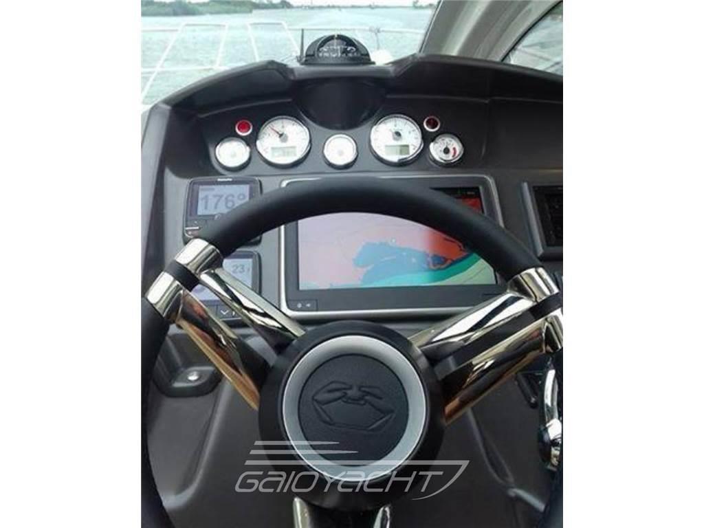 Notas de la instrumentaciónAncora (Inox), Antenna radar, Apertura Vano Motore Elettrica, Camminamenti laterali in teak (Solo plancetta), Contametri catena, Contamiglia, Doccia esterna, Elica di prua - bow thruster, Garage per tender, GPS (Raymarine 12), Hard top, Joystick, Lavandino nel Pozzetto, Luci di cortesia, Passerella (Idraulica a scomparsa), Pilota automatico, Presa 220V banchina, Presa acqua banchina, Radar, Radio VHF, Salpa Ancore Elettrico, Sedile Copilota, Tavolo pozzetto, Tavolo Salone Abbattibile, Winch tonneggio di prua