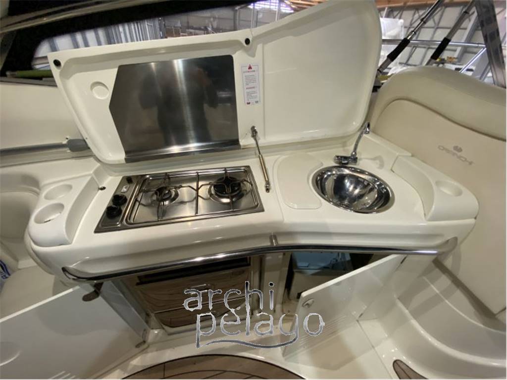 Notas internasDivani e poltrone in pelle bianca. Cabina armatore matrimoniale a prua con bagno privato e box doccia. Cabina Vip matrimoniale con collegamento al bagno. N. 1 cabina con due letti singoli convertibile in matrimoniale. N. 1 bagno con wc, lavabo e doccia. CUCINA: - Piano cottura in vetroceramica (n° 2 fuochi) - Lavello con depuratore acqua - Forno microonde - Frigorifero con piccolo congelatore. Wet bar in pozzetto: Grill con 2 fuochi a gas - Lavello - Frigorifero a due cassettoni - Ice maker - Extra congelatore in garage Notas de la instrumentaciónELETTRONICA:- GPS - VHF Raymarine - Ecoscandaglio - Autopilota - Radar - Bussola - Indicatore angolo di barra - Faro orientabile Notas de armamentoACCESSORI:- Elica di prua - Flaps - Pompa lavaggio catena - Verricello ancora - n° 2 capestani a poppa - Caricabatterie - Autoclave - Boiler - Gruppo elettrogeno - Aria condizionata convertibile - Dissalatore 60 lt/h Selma - Potabilizzatore d'acqua con depuratore e con filtrianticalcare per attacco banchina - Impianto antincendio - Impianto TV n 2 + 1 predisposta - Impianto stereo - Radio - Cuscineria prendisole prua, poppa e in pozzetto - Passerella idraulica Besenzoni - Scaletta bagno - Pozzetto in teak - Plancetta in teak (rifatto nel 2016) - Corridoio pozzetto in teak (rifatto nel 2016) - Luci subacquee (2020) - Telo copertura completo - Telo copri pozzetto - Telo protezione cristalli - Telo con pali per plancetta - Tender Lomac 3,0 mt con motore fuoribordo Suzuki 15 HP - Scadenza annotazioni sicurezza 2027. |