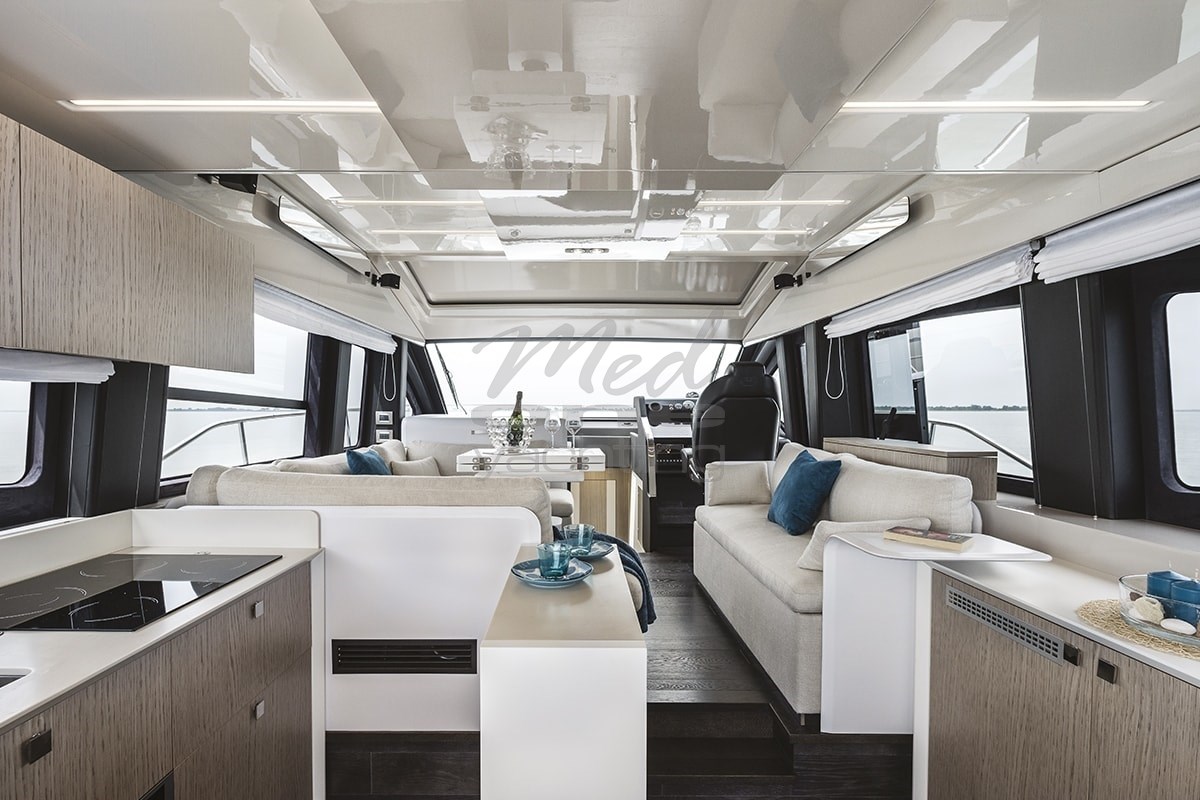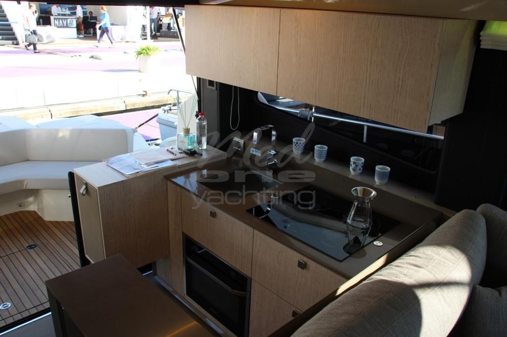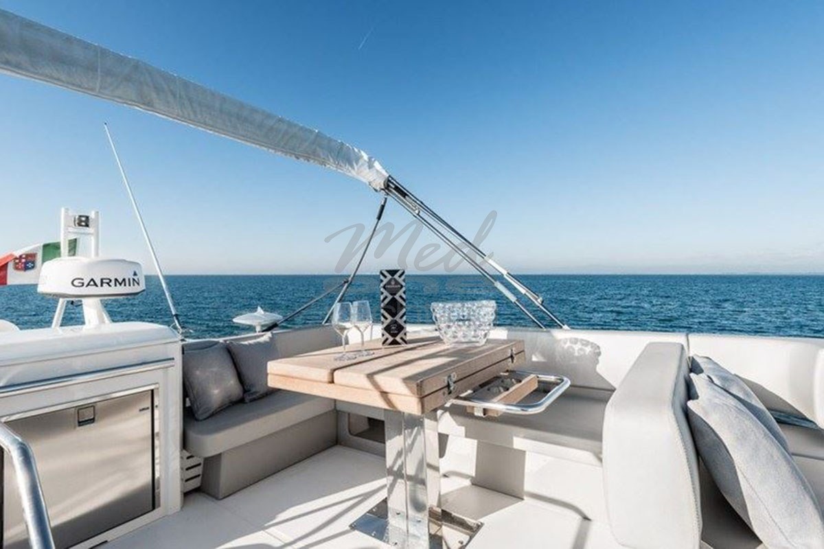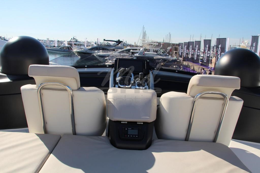 Notas internasNotas de la instrumentaciónAngolo barra, Comando motori elettronico, Ecoscandaglio, GPS, Joystick, Pilota automatico, Radio VHF.Notas de armamentoAllestimento tecnico e di coperta:Allarme sentina, Ancora, Camminamenti laterali in teak, Elica di prua - bow thruster, Pompa di sentina elettrica. Dotazioni domestiche di bordo: Aria condizionata, Impianto acque nere, WC marino elettrico. Intrattenimento: Impianto TV, Radio AM/FM, TV. Cucina ed elettrodomestici: Cucina, Fornello, Forno, Frigorifero esterno, Frigorifero interno. Tappezzerie: Cuscineria completa, Tendalino. |