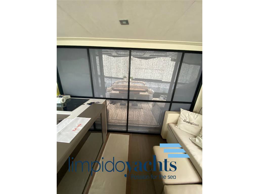 Notas de armamentoRivestimento pozzetto, motori e telecamera di poppa (n° 2), Cabina TV LED 32", Sala TV 40" con elettrico Dispositivo retrattile + Radio - Sistema Home Theater DVD-CD, certificato CE Carbonio: Altoparlanti, Aria condizionata, BBQ/ Grill, Bimini, Boiler, Cappottina, Cassaforte, Clima reversibile, Collegamento internet, Congelatore, Controllo Domotica, Cucina, Cuscineria completa, Cuscineria di poppa, Cuscineria di prua, Cuscineria Pozzetto, Digitale Terrestre, Dotazioni di sicurezza entro 6 miglia, Fornello, Forno, Frigorifero esterno, Frigorifero interno, Home Theater, ICE Maker, Impianto acque nere, Impianto TV, Inverter, Lavasciuga, Macchina caffè, Microonde, Piastra in vetroceramica, Prese interne 12v, Prese interne 220v, Stereo, Telecamera, Teli copri finestra, Tenda Elettrica, TV, WC marino elettrico,
