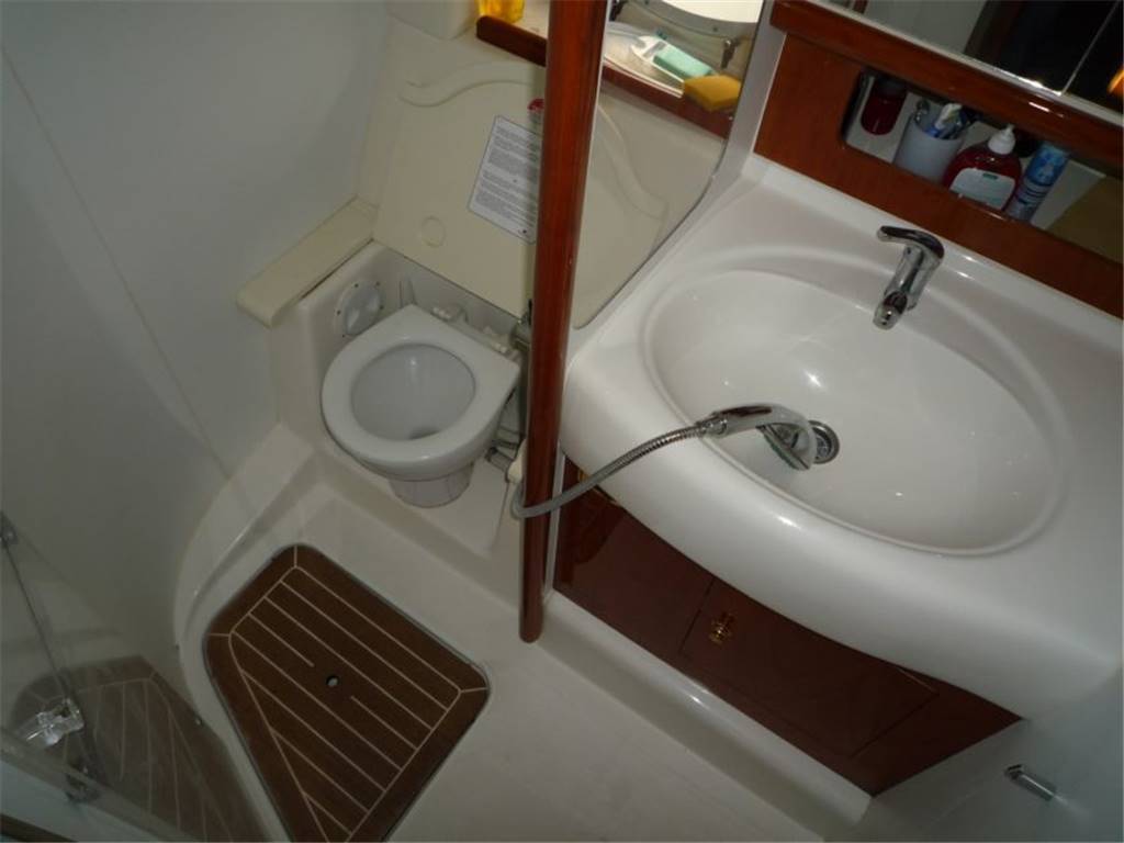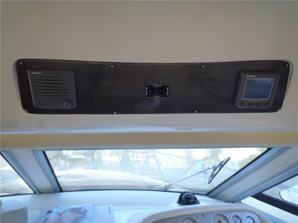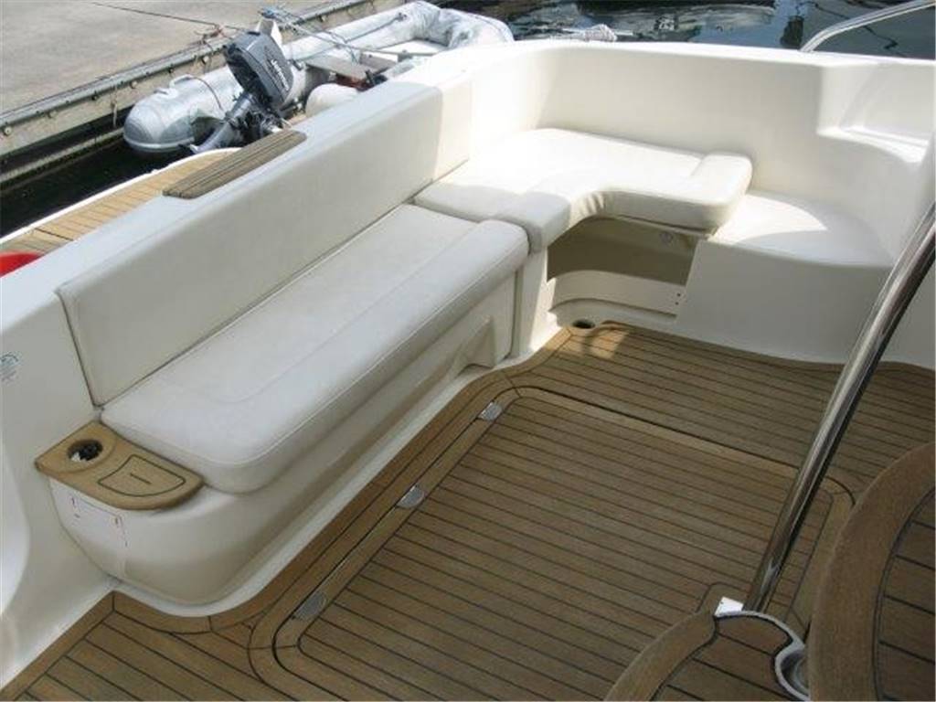 Notas internasPonte inferiore Cabine : Cabina armatore a prua con matrimoniale, armadio a doppia anta, bagno privato completo di box doccia separata. Cabina ospiti a dritta con 2 letti in piano, un armadio + bagno privato ma con accesso anche esterno per ospiti e completo di doccia. Zona cucina: con piano cottura a 2 fuochi in vetroceramica, microonde e lavastoviglie, piano di lavoro in corian color avorio con doppio lavello inox e miscelatore, aspiratore, frigo da 80 litri, mobili sotto piano di lavoro e pensili + altro mobile in salone per storage servizio completo di posateria, pentole e stoviglie per 8 persone ....la zona cucina e' molto agibile e ben attrezzata Ponte superiore Salone: a murata sx grande e comodo mobile in ciliegio lucido con secondo frigo da 60 lt , storage, TV color LCD con VCR e zona bar con porta bottiglie in plexiglas, stereo con cd e radio. Dinette a dritta con comodo divano ad Elle in pelle color avorio + 2 puff in pelle uguale, tende in stoffa color crema e mobile in ciliegio + scala inox con gradini in teak esterna per accesso al fly - Servizi: ampi e con buone finiture Posto di pilotaggio interno: seduta guida in pelle avorio con doppia seduta, desk computer, timoneria a ruota in acciaio inox e teak con idroguida e regolabile in altezza, comandi vari (verricello, flaps, tergilavavetri, vetri laterali apribili, luci navigazione e ricerca, lavacatena, tromba, estrattori e ventilatori sala macchine. Notas de la instrumentaciónStrumentazione elettronica interfacciata: display multifunzione Autohelm Tridata, radiotelefono VHF, GPS, Plotter cartografico E 80 Raymarine doppio anche sul fly , ST 5000 Plus (autopilota, angolo barra, bussola magnetica, log, eco), pannello sinottico strumentazioni e indicatori motori, telecomandi monoleva elettronici Microcommander, strumentazione VDO, RadarZona carteggio: in plancia con desk computer, luce e portacarte Servizi: ampi e con buone finiture Notas de armamentoElica di prua - raddrizzatore - Aria condizionata - riscaldamento - Forno grill - frigo - Copri parabrezza parasole completi - cuscinerie eterne prendisole prua e fly complete - mobile con lavabo e frigo sul fly - passerella idraulica con inserti in teak - luci di cortesia pozzetto - ancora Bruce con catena e con comando salpancora - Zattera -pozzetto in teak - impianto antincendio automatico - Wc elettrici con casse acque nere - Dotazioni di sicurezza complete per normativa italiana - |