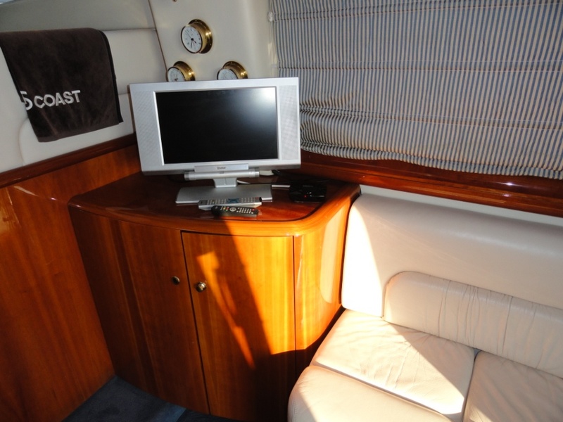 Notas internasNotas de la instrumentaciónRaythen RC 620 Gps Radar Echo SL 70 Autopilot Vhf BOWTHRUSTER electrónica aire acondicionado generador esposas Paguro 6 Kw hidraulica reflector Radio LCD TV TV residuos hielo agua calentador agua caliente molineteNotas de armamentoCabina de teca y teca cojines al aire libre, ligera, bimini, completo sobre la marcha |