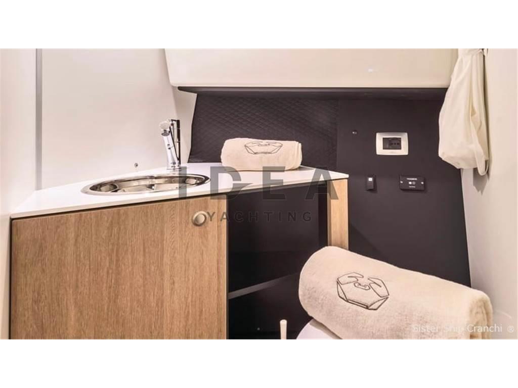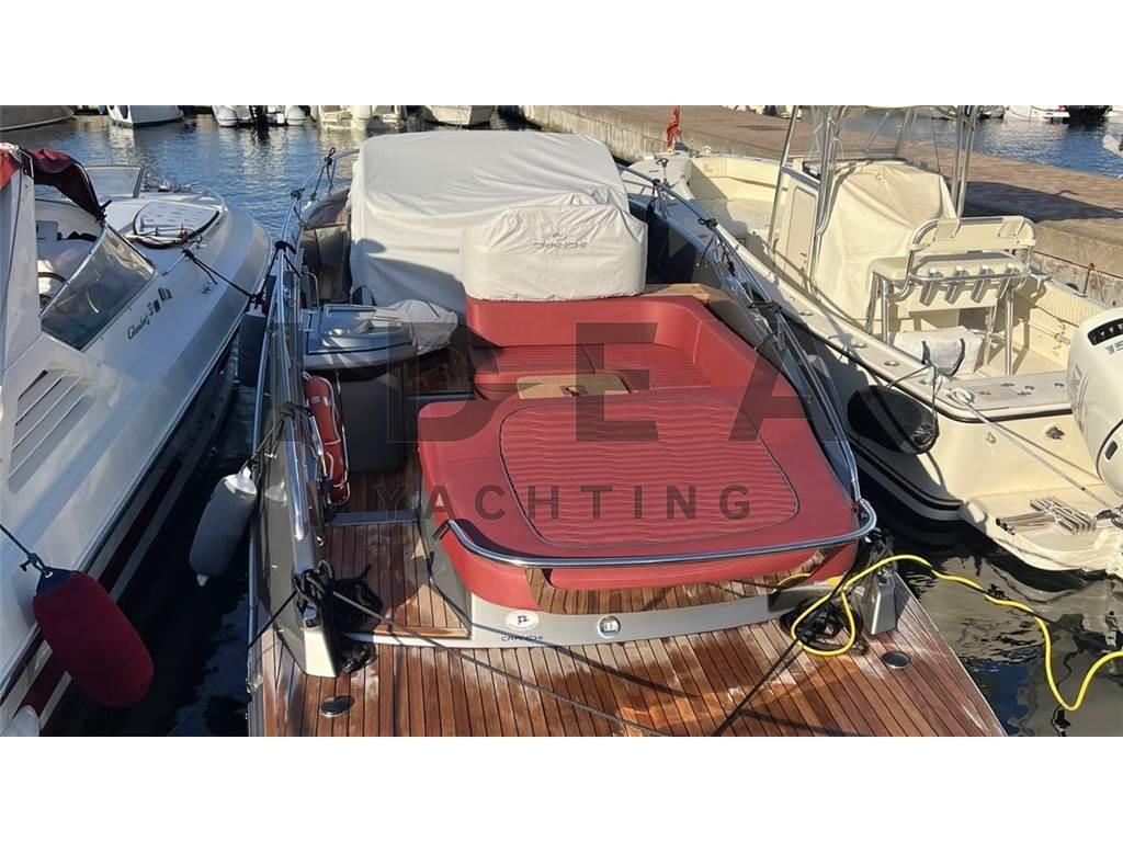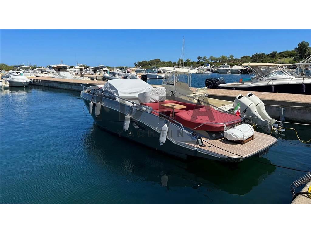Notas internasNotas de la instrumentaciónBussola, Contametri catena (with control), Display, Ecoscandaglio, GPS (Garmin 923), Plotter con antenna GPS (Garmin 923), Sedile Copilota.Notas de armamentoAllestimento tecnico e di coperta:Ancora (Ultramarine in stainless steel 12kg), Elica di prua - bow thruster, Ponte in teak, Pozzetto Teak, Presa 220V banchina, Salpa Ancore Elettrico (800w with 30mt chain), Stabilizzatori (Seakeeper SK1), Tavolo pozzetto, Tavolo Salone Abbattibile. Dotazioni domestiche di bordo: Serbatoio Acque Nere. Dotazioni di sicurezza: Carte nautiche. Intrattenimento: Altoparlanti (+ Subwoofer amplifier), Radio AM/FM (Fusion). Cucina ed elettrodomestici: Frigorifero esterno (42lt), Piastra in vetroceramica (Induction at cockpit). Tappezzerie: Bimini (Black micro-perforated with carbon fiber poles), Copripozzetto, Cuscineria di prua (Silver Tex + cover), Cuscineria Pozzetto (Silver Tex), Telo copriconsolle, Telo coprisedile. |