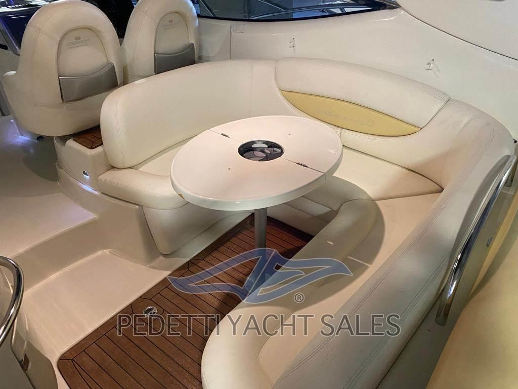 Notas internasNotas de la instrumentacióntagliando motori 2023 full, coibentato vano motori, teak plancia e prua nuovo, cuscineria perfetta, manette elettroniche, elica di prua, tender 2,20 e verricello elettrico, manette elettroniche, elica di prua, fornello gas 2 fuochi, griaglia elettrica, tender 2,20 , TV, GPS Raymarine E80,Notas de armamentoAllestimento tecnico e di coperta:Allarme fumo/gas, Allarme motore, Allarme sentina, Ancora, Autogonfiabile, Doccia esterna, Elica di prua - bow thruster, Pompa di sentina automatica, Pompa di sentina elettrica, Pompa di sentina manuale, Presa 220V banchina, Salpa Ancore Elettrico, Scaletta da bagno, Tavolo pozzetto, Tavolo Salone Abbattibile, Tender, Winch Elettrico. Dotazioni domestiche di bordo: Prese interne 12v, Prese interne 220v, WC marino elettrico. Dotazioni di sicurezza: Dotazioni di sicurezza entro 12 miglia, Riflettore Radar. Intrattenimento: Altoparlanti, Stereo. Cucina ed elettrodomestici: Cucina, Fornello, Frigorifero esterno, Frigorifero interno, Piastra elettrica. Tappezzerie: Bimini, Cuscineria completa. |