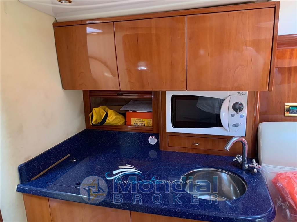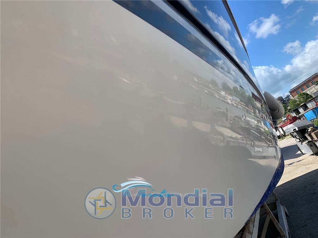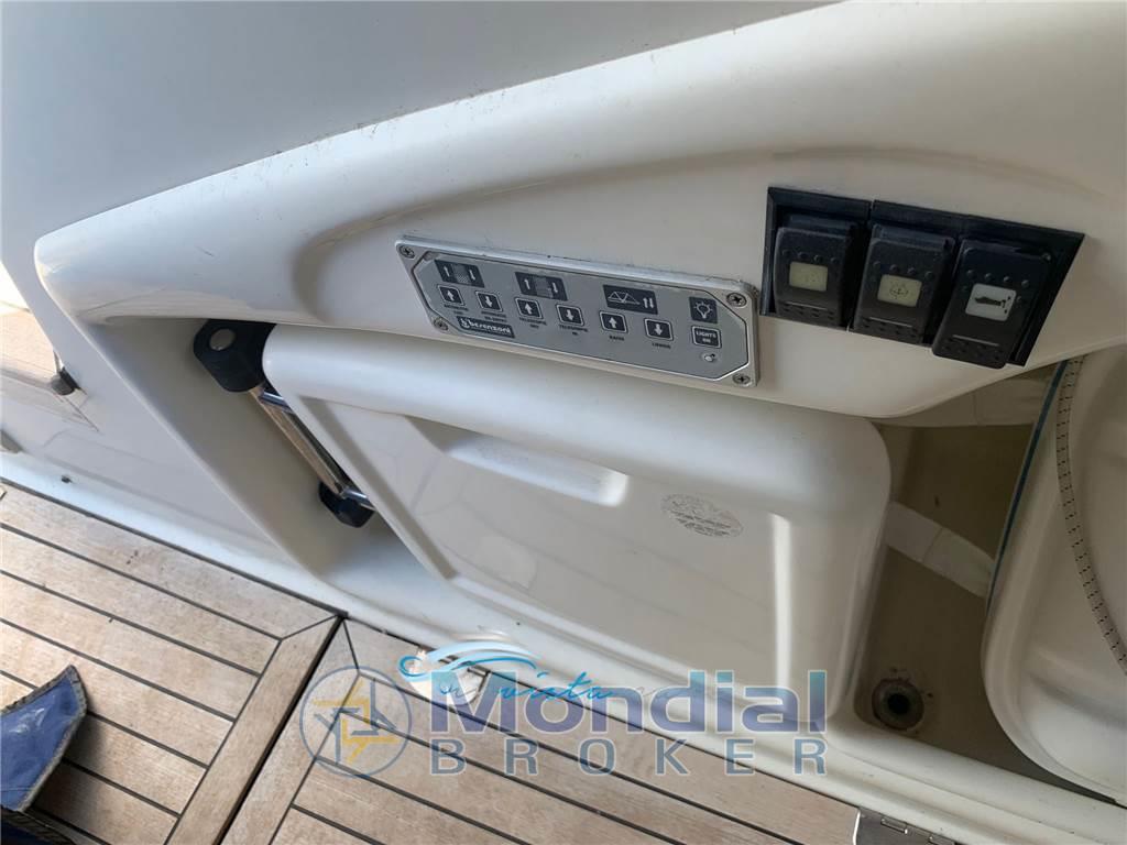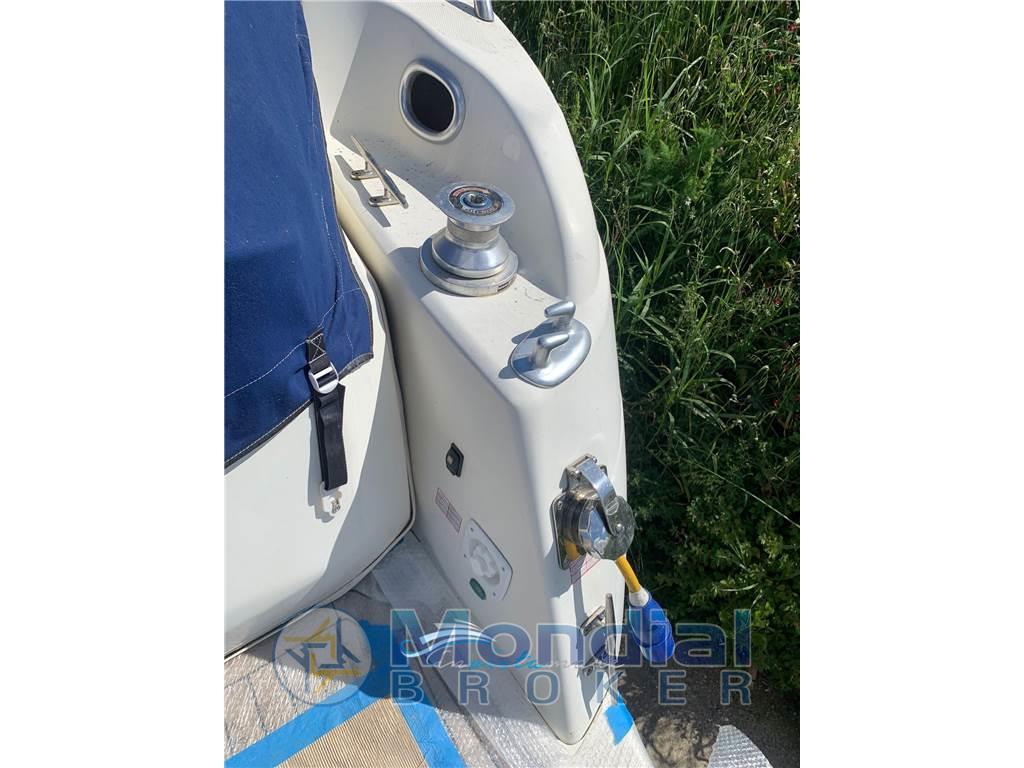 Notas internasNotas de la instrumentaciónAutogonfiabile (da 6 posti), Caricabatterie, Comando motori elettronico, Elica di prua - bow thruster, Faro orientabile, Flap idraulici, GPS, Pilota automatico, Presa 220V banchina (con motore), Radar, Radio VHF, 2 Winch tonneggio di poppaNotas de armamentoAntenna Satellitare TV, Frigorifero esterno, Frigorifero interno, Microonde, TV, murate riverniciate di blu |