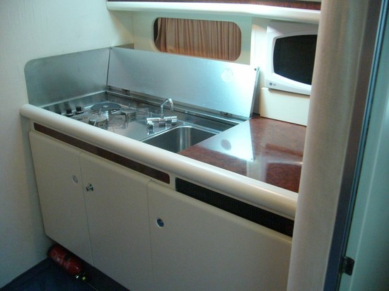 Notas internas1 cabina matrimoniale a prua, 1 cabina matrimoniale a poppa, bagno separato, cucina completa, fuochi e lavello acciaio inox