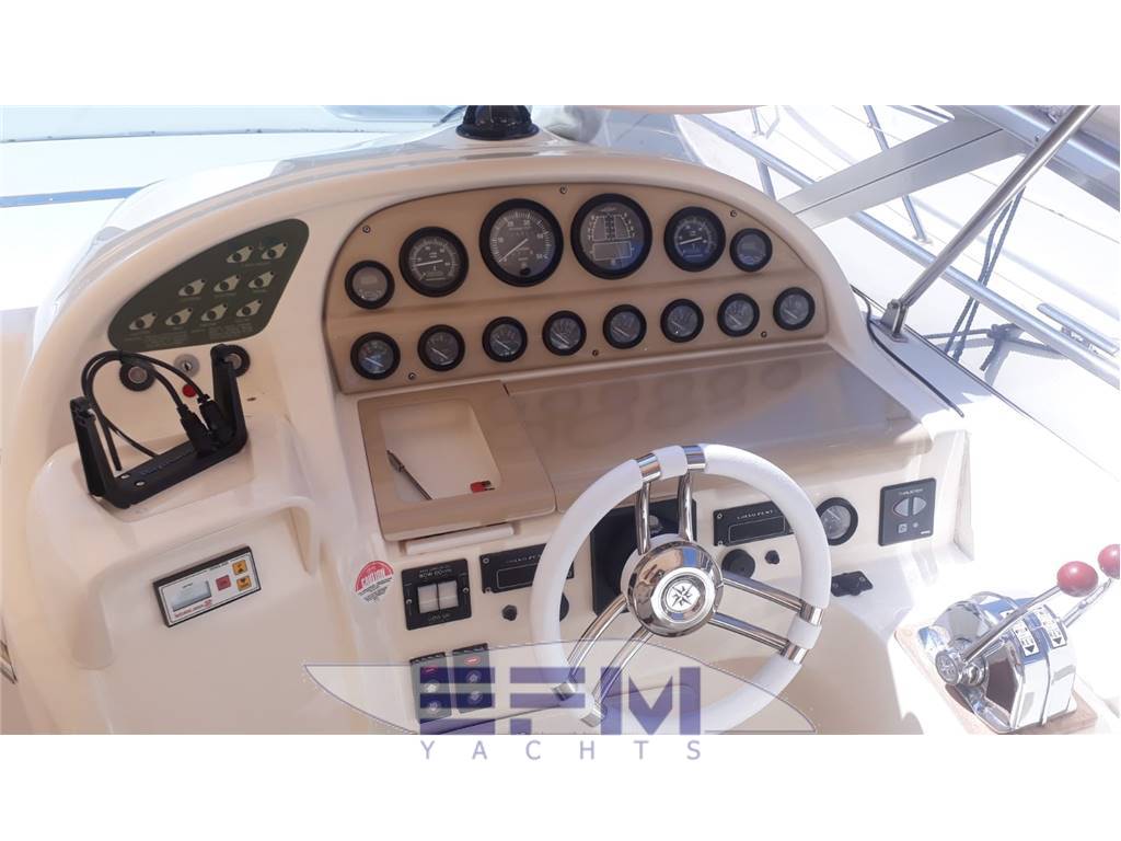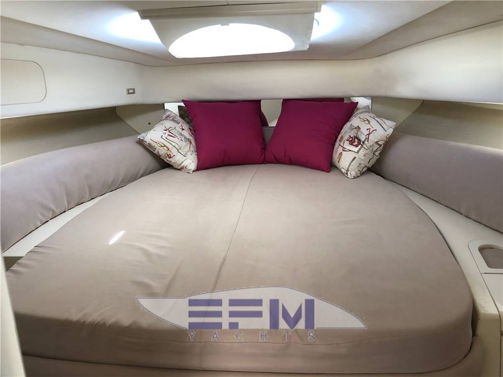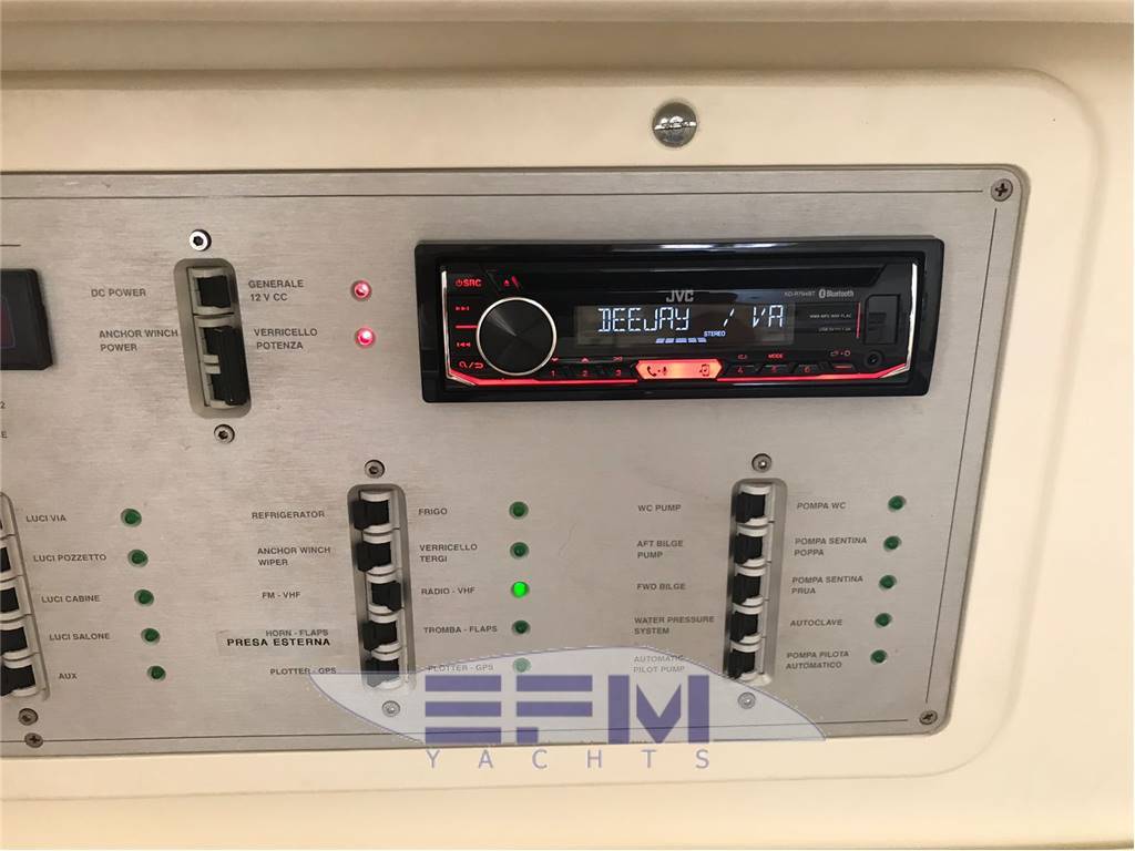 La barca è stata completamente refittata tra il 2018 - 2019: - Interni, materassi, coperture, tende, luci a led, bagno (WC nuovo, doccia ecc.) - Esterni, teak sintetico anti-scivolo, strumentazione, pelle dei sedili, frigo, strumentazione, Gps, manette, - Sala motori, piedi, pistoni, turbine, scarichi, elica di prua che non era presente, ancora, doccia esterna, - Verniciatura completa 2019. La barca ha circa 600 ore di moto. Per problematiche di eredità è rimasta ferma in cantiere per 10 anni. |