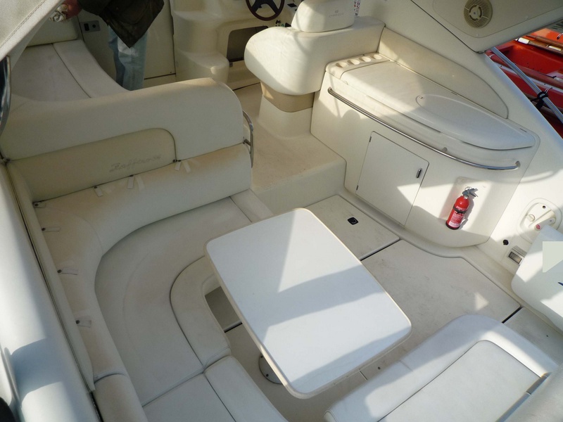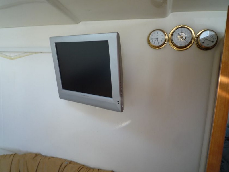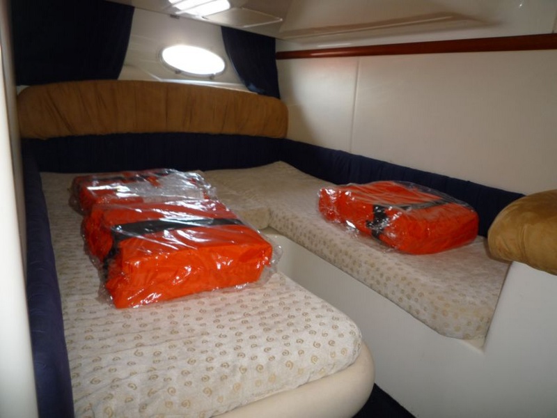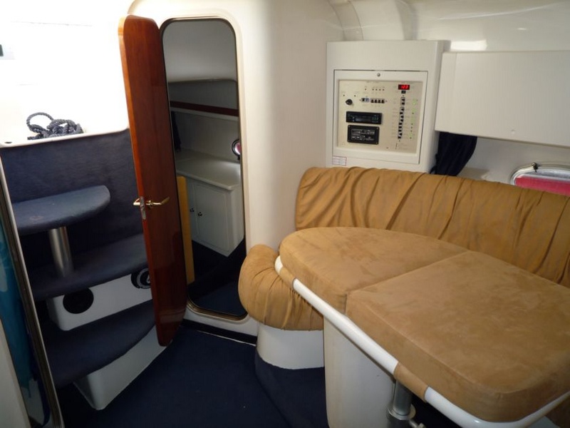 Interior para reorganizar la fibra de vidrio de polaco de muebles..paneles y puertas de cereza y luz nata para limpiar alfombra doble cabina adelante con cama isla y armario ropero grande, baño privado de cajones con inodoro eléctrico y receptor con estante de mezclador y cabina de ducha-segundo invitado popa con dos camas con conversión a una cama grande, armario y sofá pequeños muebles confortables para dos personas la cubierta y ventanas laterales hacen que sea muy brillante y el asiento consiste en un cómodo sofá grande en Alcántara beige y el c en forma de mesa plegable de fibra de vidrio-en contraposición a las grandes paredes cocina gabinete equipado con lavabo completo con mezclador y dos quemadores estufa, litros nevera 60.Moulinex, microondas, armarios, despensa y buen tamaño + otra pieza de mobiliario-para encontrar la pared sobre el sofá Shoub Lorenz LCD TV 20 ' con un CD estéreo y control glomex amplificado teca fuera de antena de TV en la cabina encontramos: un cómodo sofá c con sesiones en esquÃ, en contraposición con el timón, un segundo comedor popa con mesa y se convierte en un espacioso solárium starboard gabinete con fregadero y frigorÃfico plataforma de natación armarios alargados y cubiertos plegables de fibra de vidrio Teca-