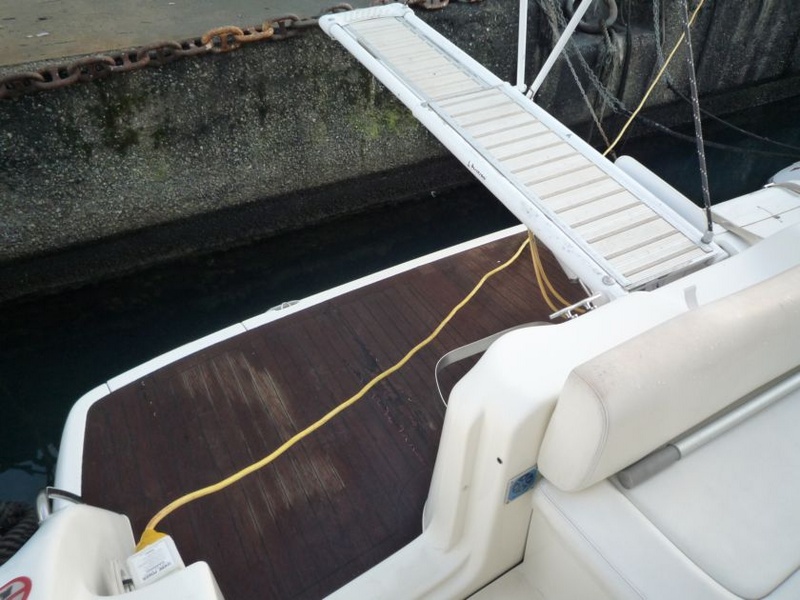 HORN, FLAPS IDR, Molinete eléctrico, 220 voltios, sistema de antena de TV, Autoclave, calentador de agua eléctrico, cargador de baterÃa, tecla de control de extintores, bombas de sentina 2, refrigerador, horno de microondas, cocina 3 fuegos, plataforma de baño de popa teca teca de pasarela, escalera de baño, ducha al aire libre, cojines de proa y popa, comedor "U" con plegable tabla transformada en un sol, cabina de HOOD color Caki, cubre, cojines tipo externo aBUENO, fibra de vidrio azul alfombra interior, hacer CHECK motor, doble cabina, doble cabina popa, baño de visitas con inodoro eléctrico, área de cocina con ningún 3 quemadores (Nº 2 Nº 1 GAS Y eléctrica), microondas MOULINEX, fregadero de acero inoxidable con grifo mezclador, nevera LT. Nevera de exterior de 65 + segundo LT 45: compás, VHF, plotter GPS, sonar de profundidad, radio stereo, propulsor seguridad equipos para verificación de proa