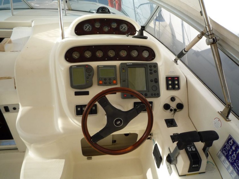 Notas de la instrumentaciónCompletar equipos electrónicos Raytheon color Raymarine Gps Chartplotter Raytheon RS 532-piloto Raytheon St 6000 profundidad sounder, pescar Finder, brújula analógica barra indicador, imp alerones, Fishfinder, I32S de Raytheon. Radio, cd soundmachine. comando BOWTHRUSTER, software de asignación de vhf eye4gps GPS. gestión de indicadores analógicos y digitales espÃas barco-Tv antena glomex-mecánica-las esposas de instrumentos analógicos y parámetros del motor de controlan de temperaturas y agua-aceite