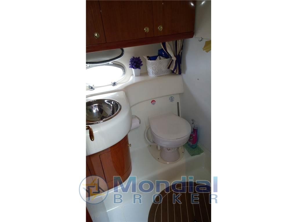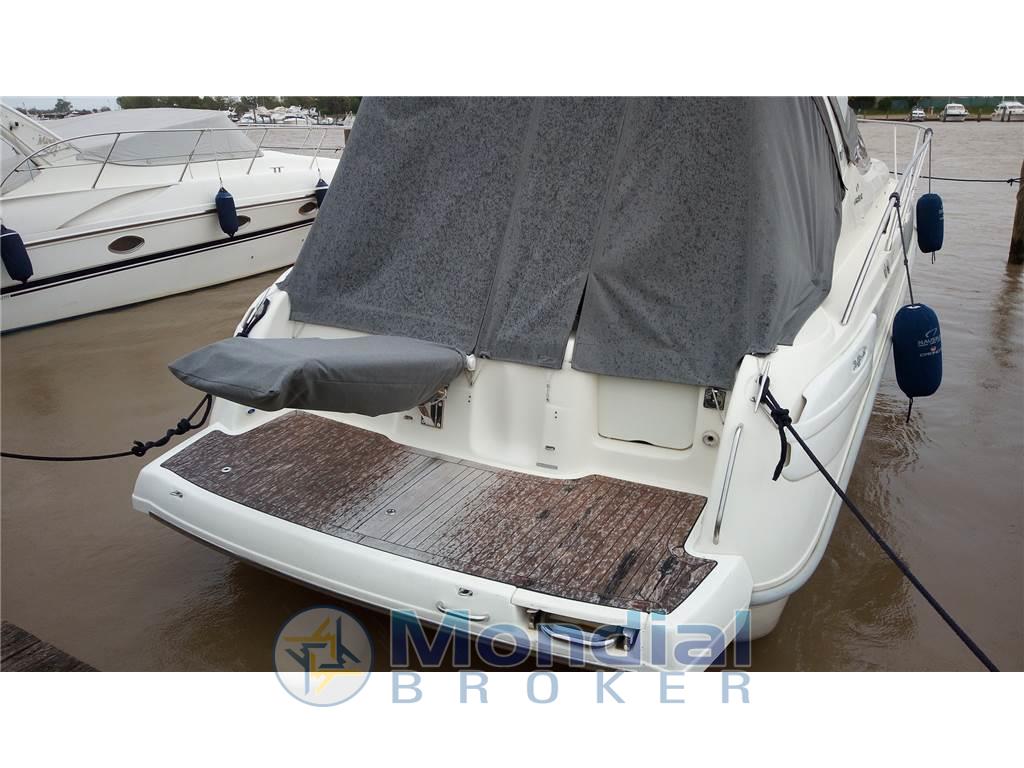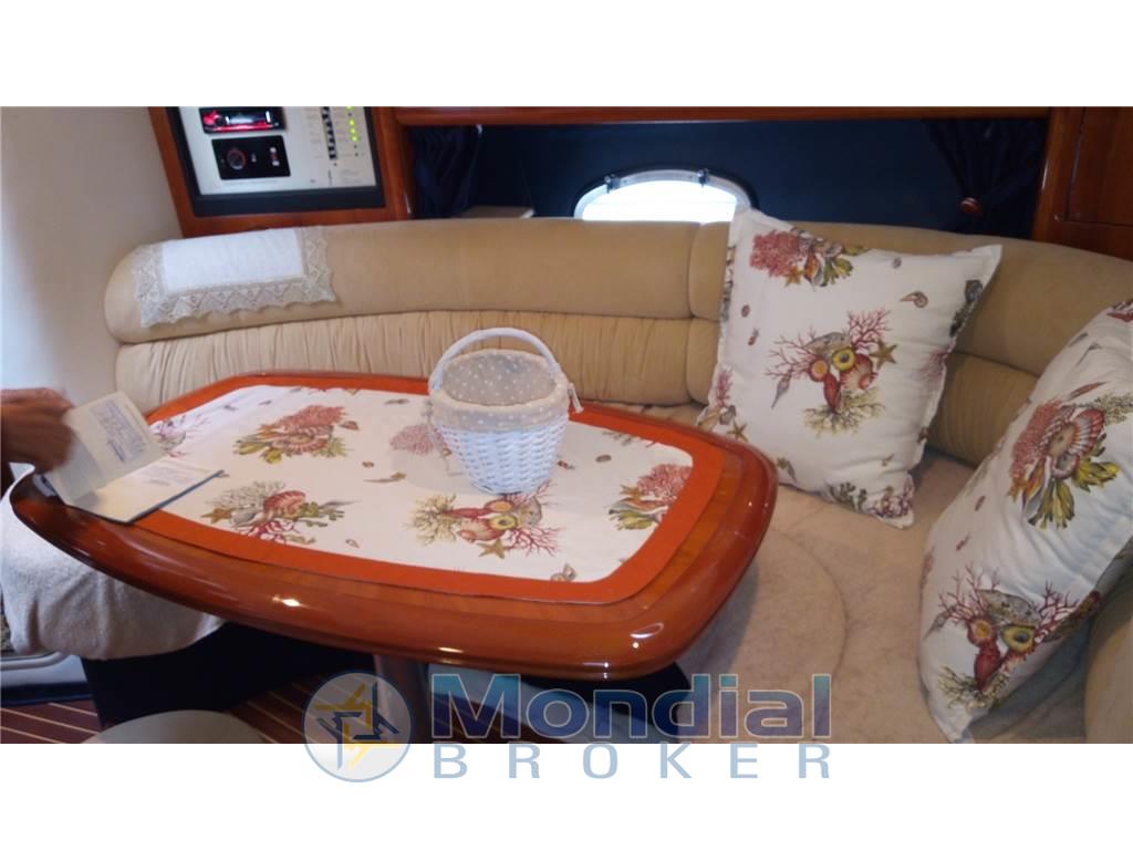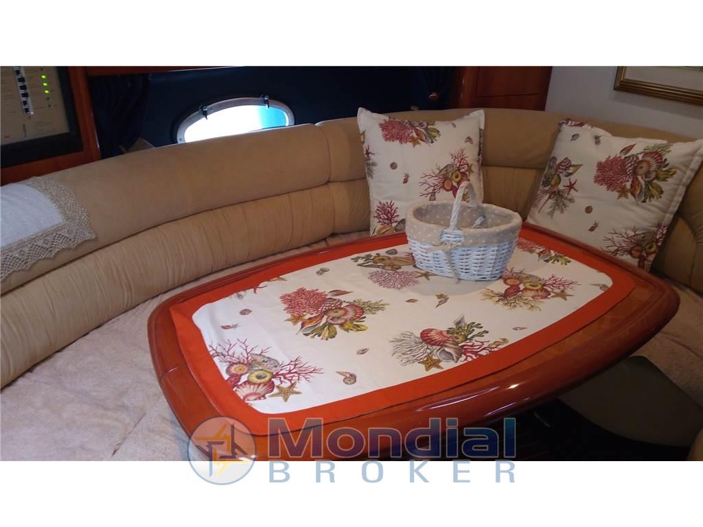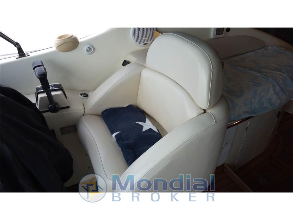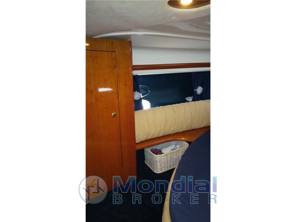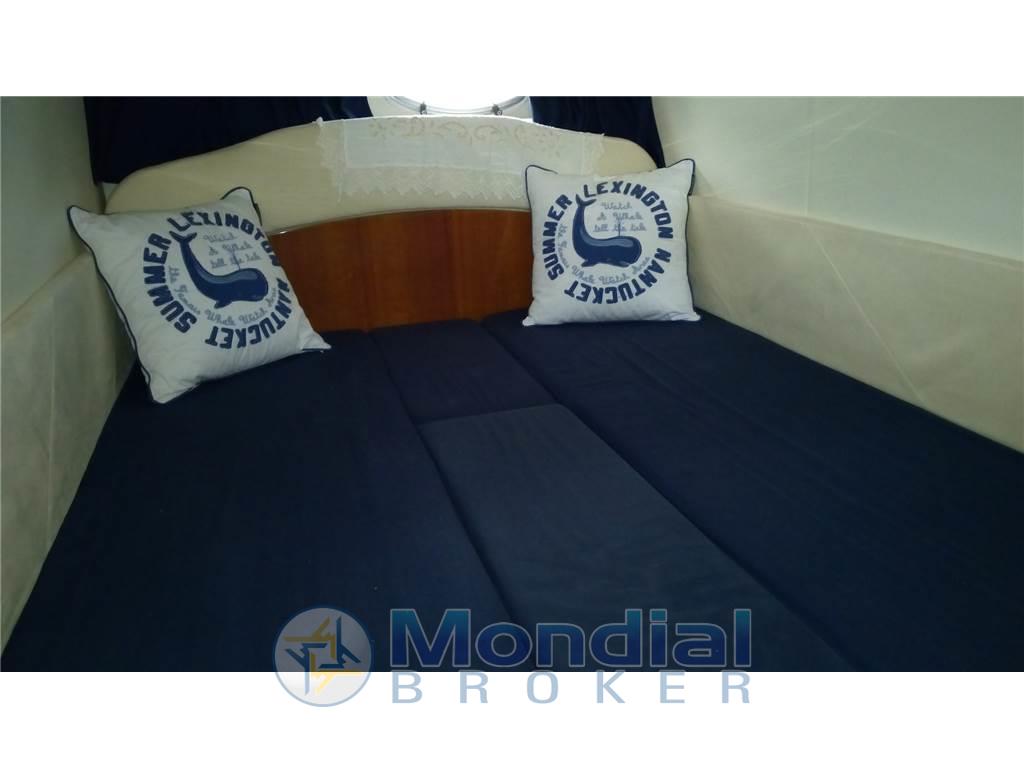Notas internasNotas de la instrumentaciónAntenna radar, Bussola, Comando motori elettronico, Computer di bordo, Contamiglia, Ecoscandaglio, GPS, Radio VHF.Notas de armamentoAllestimento tecnico e di coperta:Allarme motore, Autogonfiabile, Doccia esterna, Elica di prua - bow thruster, Faro orientabile, Flap idraulici, Impianto antincendio, Indicatori Flaps, Luci di cortesia, Passerella (Idraulica), Piattaforma, Pompa di sentina automatica, Pompa di sentina manuale, Pozzetto Teak, Presa 220V banchina, Raddrizzatore, Rollbar, Salpa Ancore Elettrico, Scaletta da bagno, Sistema Depurazione acque nere, Tavolo pozzetto, Tromba. Dotazioni domestiche di bordo: Prese interne 12v, Prese interne 220v, Riscaldamento, WC marino elettrico. Dotazioni di sicurezza: Giubbetti di salvataggio. Intrattenimento: Altoparlanti, Digitale Terrestre, Impianto TV, Radio AM/FM, Stereo, TV. Cucina ed elettrodomestici: Cucina, Fornello, Forno, Frigorifero esterno, Frigorifero interno, Microonde. Tappezzerie: Cappottina, Copripozzetto, Cuscineria completa, Cuscineria di poppa, Cuscineria di prua, Cuscineria Pozzetto, Teli copri finestra, Telo copriconsolle, Telo coprisedile, Tendalino. |