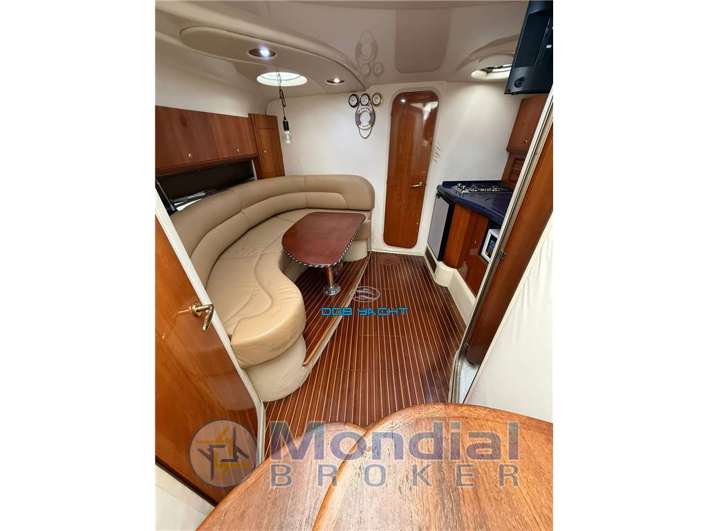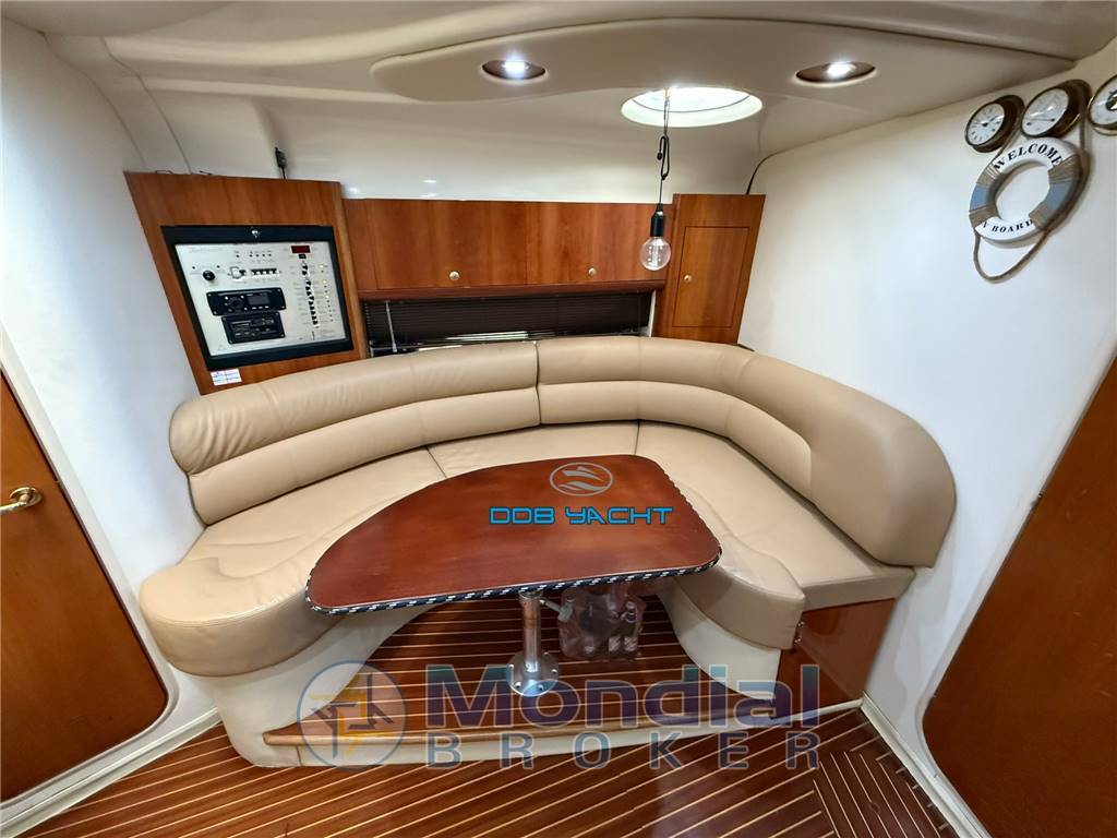 Notas internascabina armatoriale a prua separata, dinette trasformabile a sx con tavolo, cucina a dritta con frigo ISOTHERM CR85, lavabo, piano cottura a gas DELONGHI, forno a microonde MIDEA vari mobili porta oggetti con cassetti, locale wc separato con doccia, cabina di poppa separata con divano di disimpegno e n* 2 letti in piano; ampio pozzetto di poppa con divano ad U con tappezzerie complete e tavolo trasformabile in prendisole, mobile living con lavabo, fornello a gas a scomparsa e frigo ISOTHERM CR 50, divano di navigazione a sx ad U, plancia comando con seduta pilota, passaggio centrale per raggiungere l’ampio prendisole di prua.