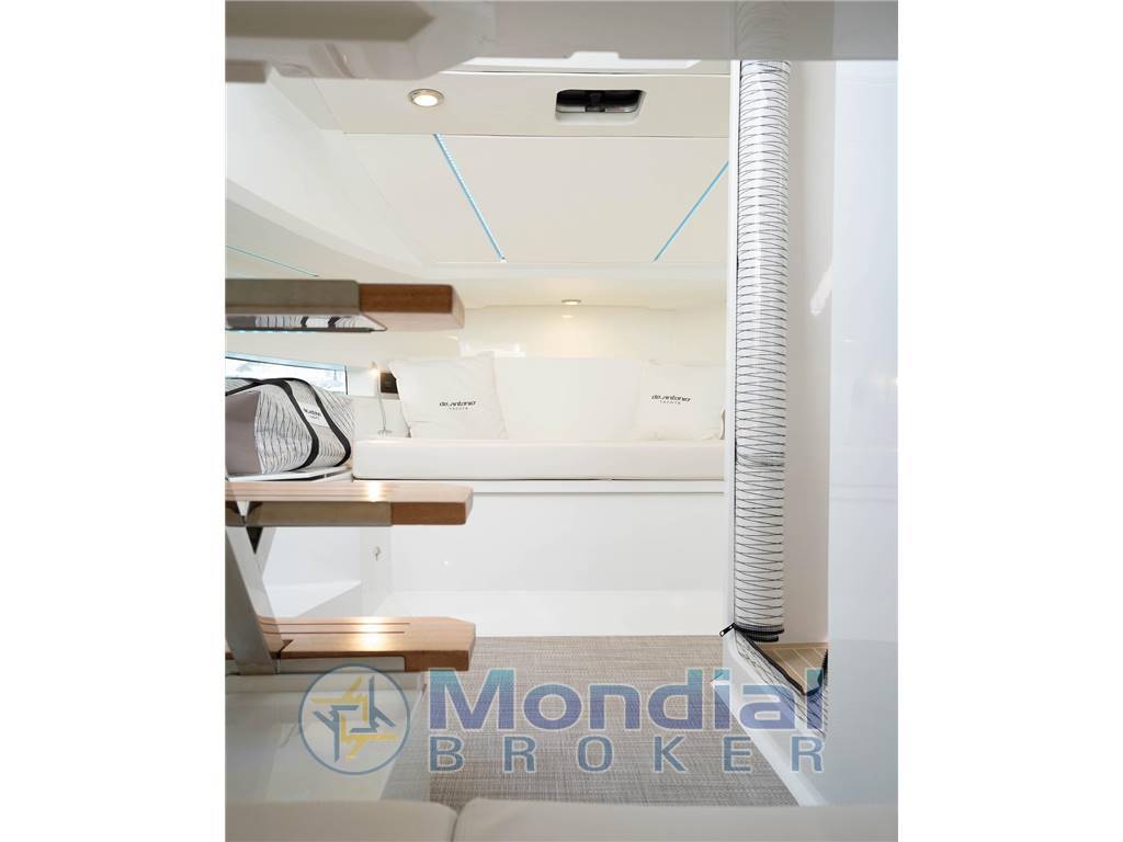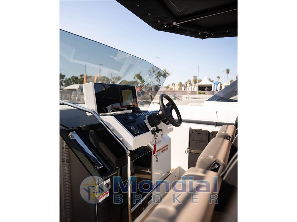 Notas de armamentoEQUIPAGGIAMENTO STANDARD2 x 200 HP V-6 FourStroke Scafo colore bianco con Soft-Top Tappezzeria esterna e cuscineria in Morbern Sundance® HERM Coperta in teak sintetico Flexiteek® Scrubbed con fughe nere Sistema audio Fusion RA60 (4 altoparlanti) Supporto ancora, ancora, catena, verricello elettrico Schermo di navigazione Simrad 12" Luci di navigazione a LED Sedute temoneria in Morbern Allante® (colore grigio) Luci a LED sul ponte Tromba Tavolo in coperta Pompa di sentina Scala da bagno Collegamento corrente a terra e cavo / caricabatterie Inserti in cabonio nello scafo Doccetta sul ponte Asta portabandiera in carbonio Oblò laterali sullo scafo (cabina di poppa e di prua) Gallocce a scomparsa in alluminio Cabina di prua con letto matrimoniale Cucina completa esterna (frigo 49L, lavello, piano cottura a gas) Cabina di poppa Presa USB 12V Bagno completo (wc elettrico) |