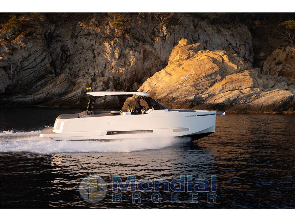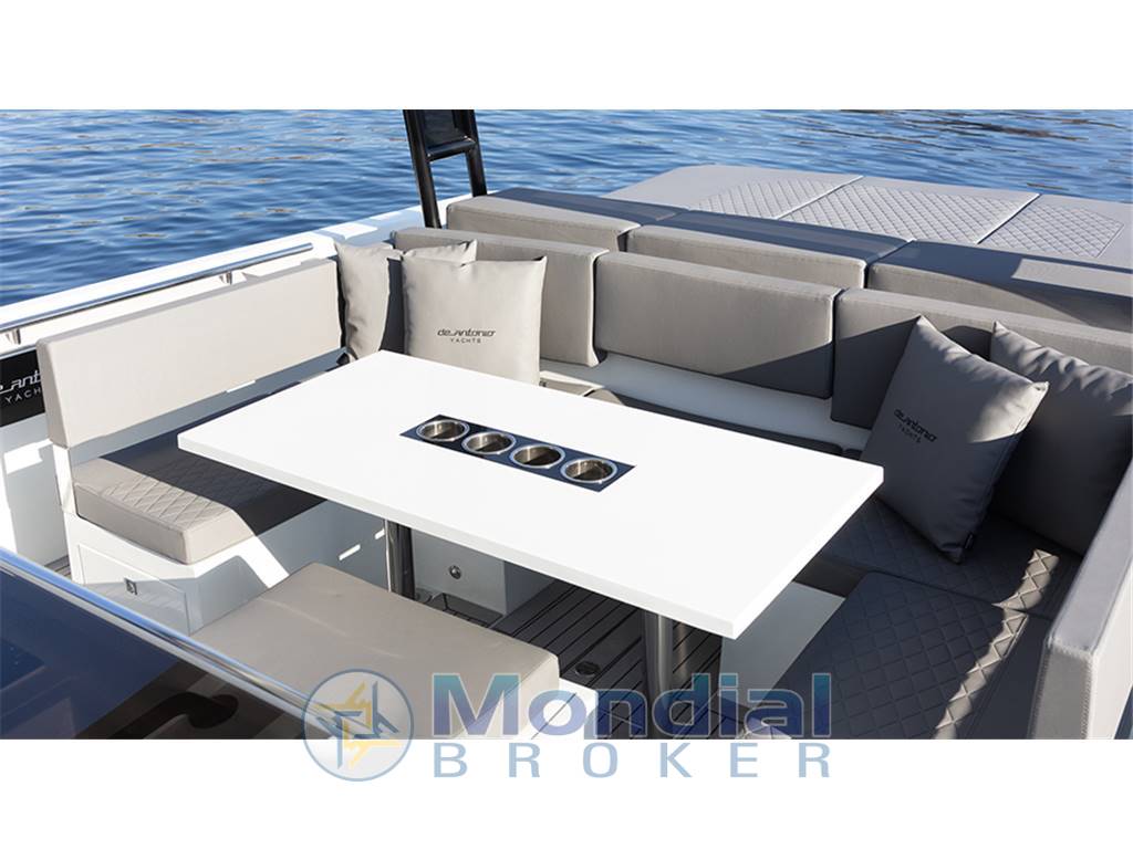 Notas de armamento2 x 300 HP V-8 VeradoScafo colore bianco con Soft top Tappezzeria esterna e cuscineria Morbern Sundance® Premium HERM Teak sintetico Flexiteek® Scrubbed with black lines Sistema audio Fusion RA60 (4 speakers) Supporto ancora, ancora, catena, verricello elettrico Schermo di navigazione Simrad 12" Luci a LED sul ponte Sedute timoneria in Morbern Allante® (colore grigio) Luci di navigazione a LED Tromba Tavolo a poppa Pompe di sentina Scala da bagno Collegamento corrente a terra e cavo / caricabatterie Inserti in carbonio nello scafo Doccetta sul ponte Asta portabandiera in carbonio Oblò laterali sullo scafo (cabina di poppa e di prua) Gallocce a scomparsa in alluminio Cabina di prua con letto matrimoniale (140 cm x 190 cm) Cucina completa esterna (frigo 49L, lavello, piano cottura in vetroceramica) Cabina di poppa con dinette a "U" Presa USB 12V Bagno completo (wc elettrico) |