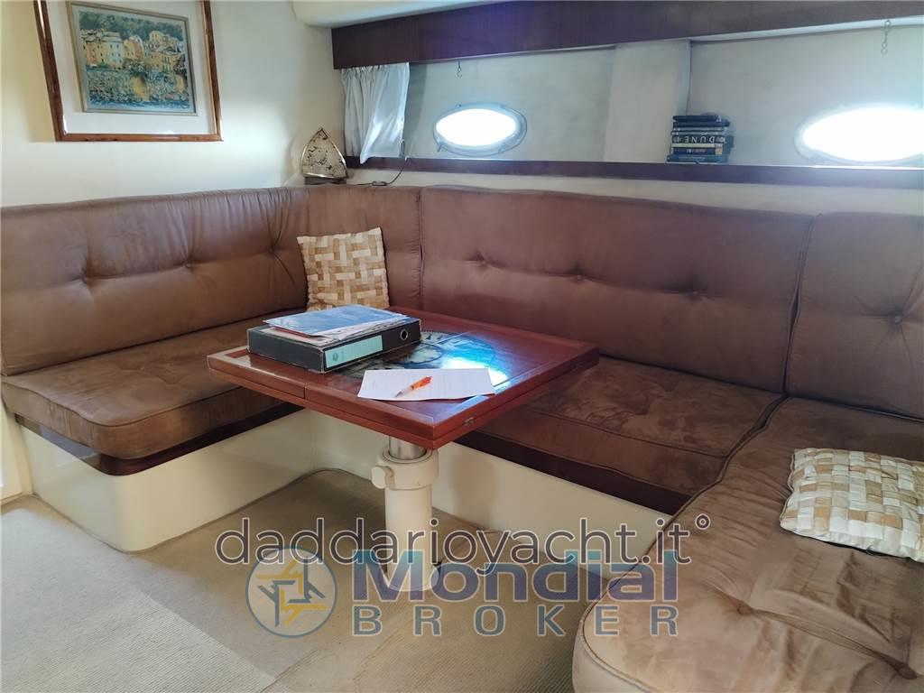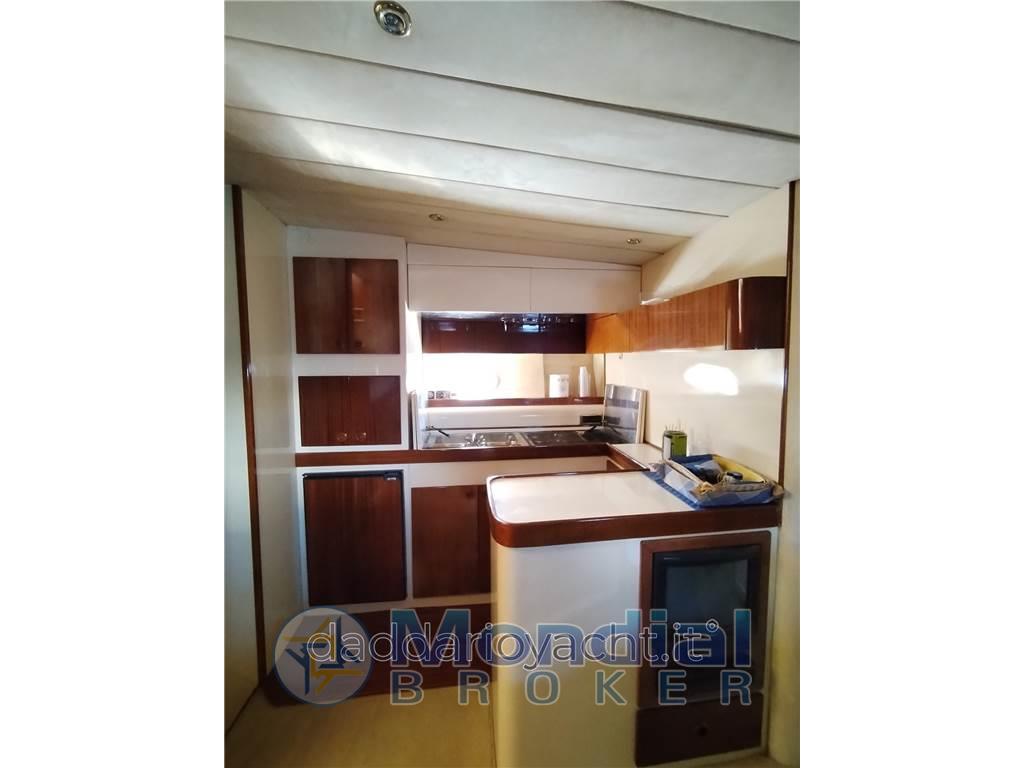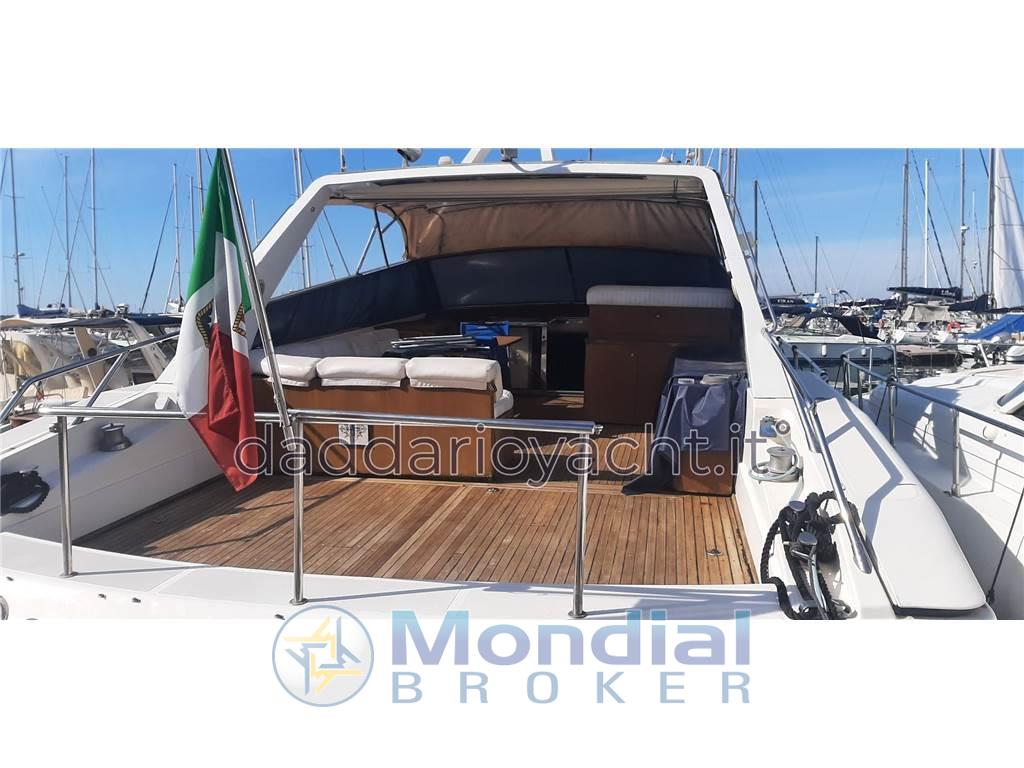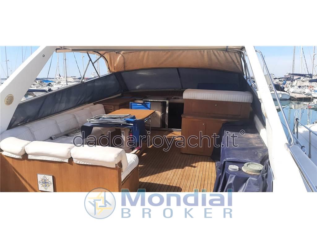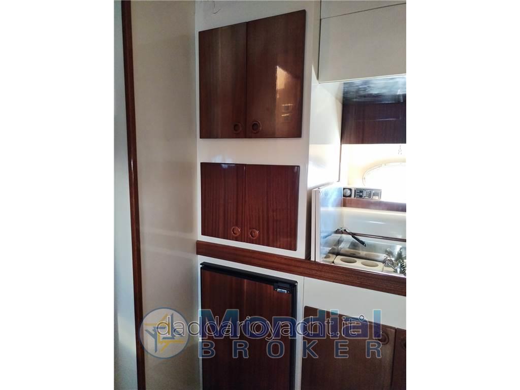 Notas de armamentoAltoparlanti, 2 Aria condizionata (46k btu separate), Boiler (100lt), 2 Clima reversibile, Congelatore (ext), Copripozzetto, Cucina (elettrica), Cuscineria completa, Cuscineria di poppa, Cuscineria di prua, Dissalatore (smontato), Fornello (gas ext), Frigorifero esterno, Frigorifero interno, Impianto TV, Microonde (con grill), Pavimento interno in legno, Prese interne 12v, Prese interne 220v, Stereo (in ogni cabina), Telecamera (sala motori infrarossi), Tenda Elettrica, Tendalino, VHS, 4 WC marino elettrico, Sincronizzatore motori