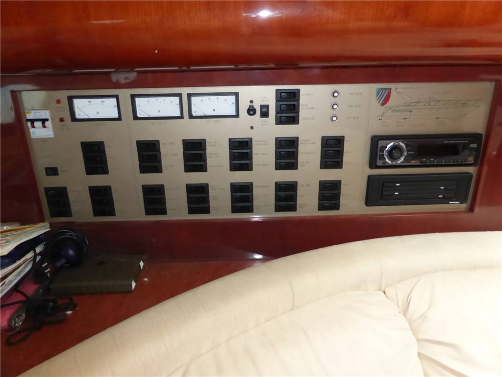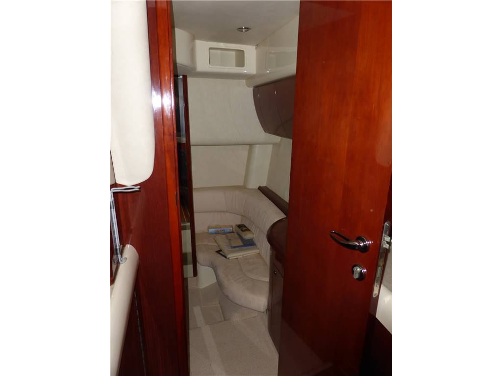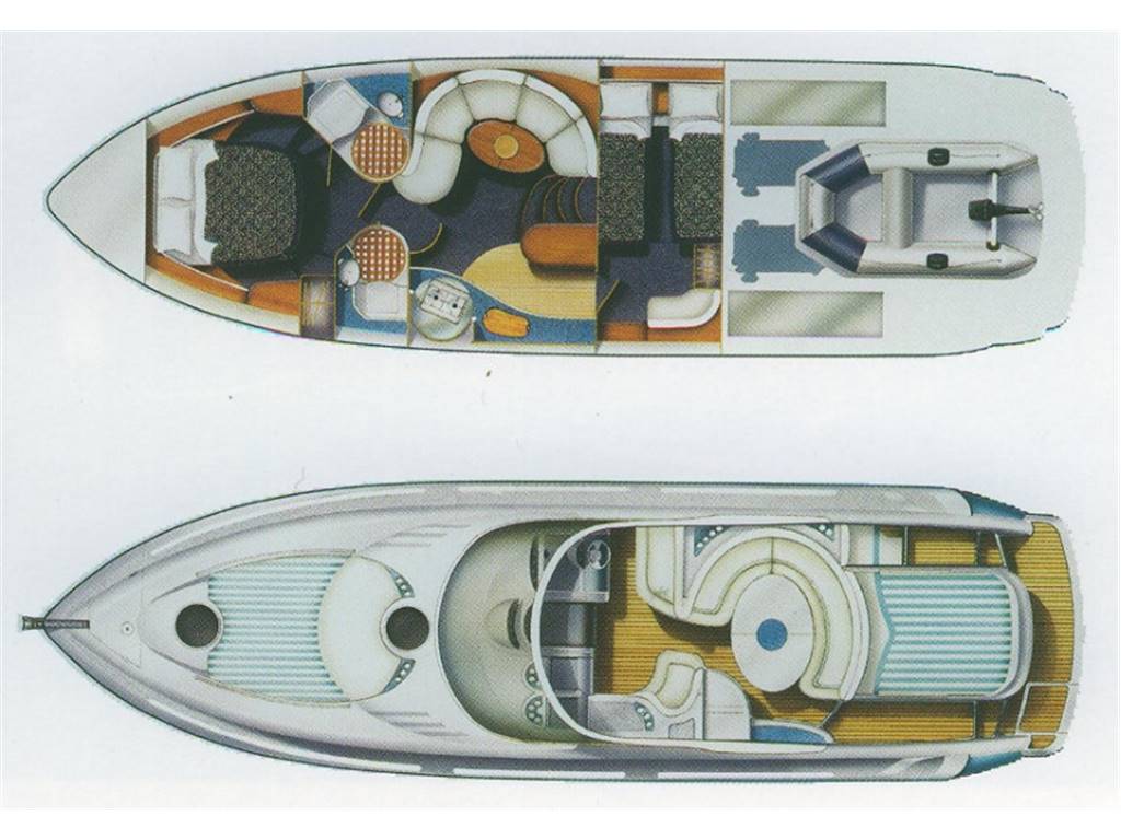 Notas internasFairline Targa 43 features excellent internal accommodation which has been designed for accommodation four guests in two cabins featuring private en suites. The Master Stateroom is luxurious and opulently appointed. Positioned forward with considerable natural light from the twin portholes and deck hatch, it is a bright and airy cabin with luxurious appointments including a full-height hanging locker, and under bed stowage. A full-size en suite with separate shower adjoins the cabin. The twin cabin is amidships with ample stowage that also includes a hanging wardrobe. Ingeniously, the twin berths slide together to create a double when required. Generous opening portholes provide natural daylight and the accommodation is completed by a private en suite with full size separate shower. The main saloon has comfortable seating for six and a state of the art entertainment console including LCD television, radio, and CD changer. Both this and the comprehensively equipped galley with hob, microwave, full size fridge/freezer, extractor fan and cherry floor are accessed directly from the cockpit. The cockpit and helm position is focused on al fresco entertaining; the new Targa 47 will feature the most generous cockpit layout to date. The cockpit area is perfect for al fresco dining with wrap-around seating for six to eight, featuring a sink with hot and cold water, refrigerator, insulated coolbox and where requested an electric griddle. A transom gate leads to the integral teak-laid bathing platform with shower and concealed bathing platform ladder. Access is given to the tender garage capable of accommodating a tender / dinghy. Side-decks with handrails afford easy access to the foredeck, where deep and plush reticulated-foam coachroof sun cushions provide for perfect relaxation. Notas de la instrumentaciónTwin Volvo Penta TAMD73P EDC diesel enginesEDC throttles Bow thruster Trim tabs STRUMENTAZIONE ELETTRONICA TIMONERIA: GPS PLOTTER GEONAV ELITE RAYTHOON ST 60 Autopilot RAYTHOON ST 60T Tridata VHF FARO ESTERNO ANTENNA TV GLOMEX Notas de armamentoBow thrusterElectric gangway Cockpit teak Blue stripe bathing cushions Cockpit canopies Extra Extending Aft sun canopy Full Tonneau Winter Cover Cockpit wet bar with fridge and sink Hydraulic Garage SONY CD Multi Changer Auto and Manual bilge pump Auto fire extinguishers in engine room Electric Toilets Deep Cherry Wood 2 Showers 1 en-suite Cream carpets Sofa in tissue Microwave Oven & Grill bath ladder Submarine discharger AFT Canvas Danforth Anchor + chain 70 mt. |