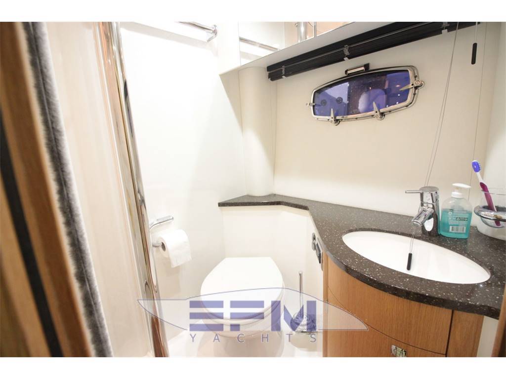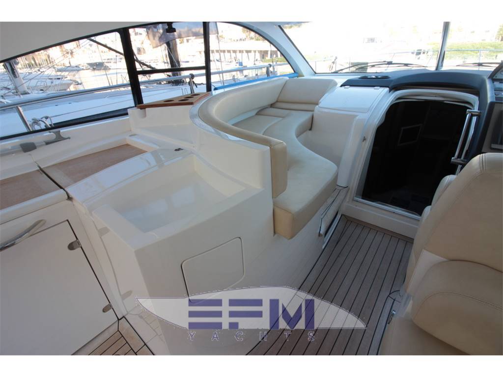 Notas internasNumber of single berths: 2 Number of double berths: 1 Number of cabins: 2 Number of heads: 2 Entering the boats interior from the cockpit you have the saloon to the starboard side which has brown leather seating and adjustable table able to sit four for dinner comfortably. The boats galley has a large fridge freezer and microwave oven together with lots or storage throughout.The owners cabin forward in the bow has ample head room and a large double bed with access to a private en-suite bathroom. The second cabin is located in the mid-ships which has two single beds which can easily be converted into a double bed if required, An additional en-suite bathroom giving both cabins their own private quarters. Notas de la instrumentaciónElectronicsCockpit speakers CD player Radio TV set – Sony LCD Compass Depthsounder – Garmin Log-speedometer – Garmin Autopilot – Garmin DVD player GPS – Garmin Map 5012 VHF – Icom Electrical Equipment Shore power inlet Generator – Onan 7kw Electrical Circuit: 220V Notas de armamentoInside EquipmentHot water Deep freezer Electric bilge pump Air conditioning Heating Stern thruster – Side Power Electric head Bow thruster – Side Power Battery charger Fresh water maker Refrigerator Microwave oven – Sharp Manual bilge pump Outside Equipment/Extras Liferaft Cockpit table Cockpit shower Swimming ladder Teak cockpit Cockpit cushions Total Liferaft Capacity: 10 Electric windlass Cockpit cover Additional Information Lewmar chain counter Cockpit lights Low level cockpit lighting Sun shade cover Windscreen covers Helm air conditioning Saloon leather seating Oceanair blinds Teak galley floor Teak bathroom floor Fordeck cushions Wetbar BBQ Wetbar fridge Hardtop roof 5 x fire extinguishers Fire blanket Twin electric cooking hob Twin galley sinks Granite galley work top Granite bathroom worktops Water maker 8-man life raft Jabsco search light 12v helm plug Helm captain’s step |