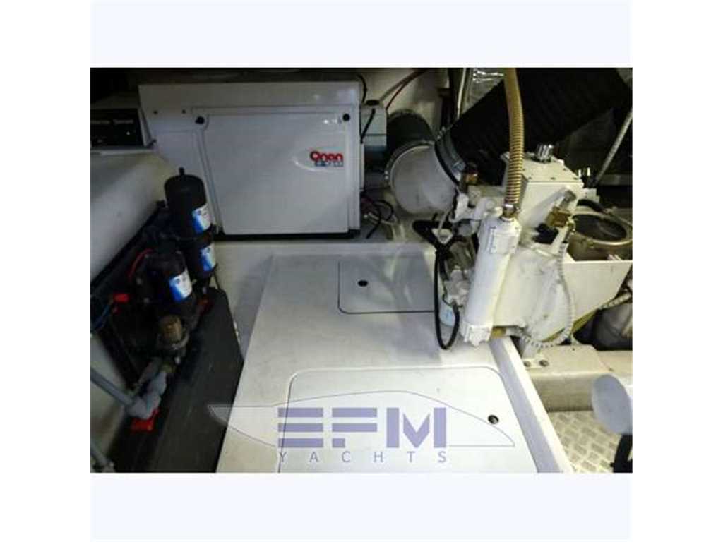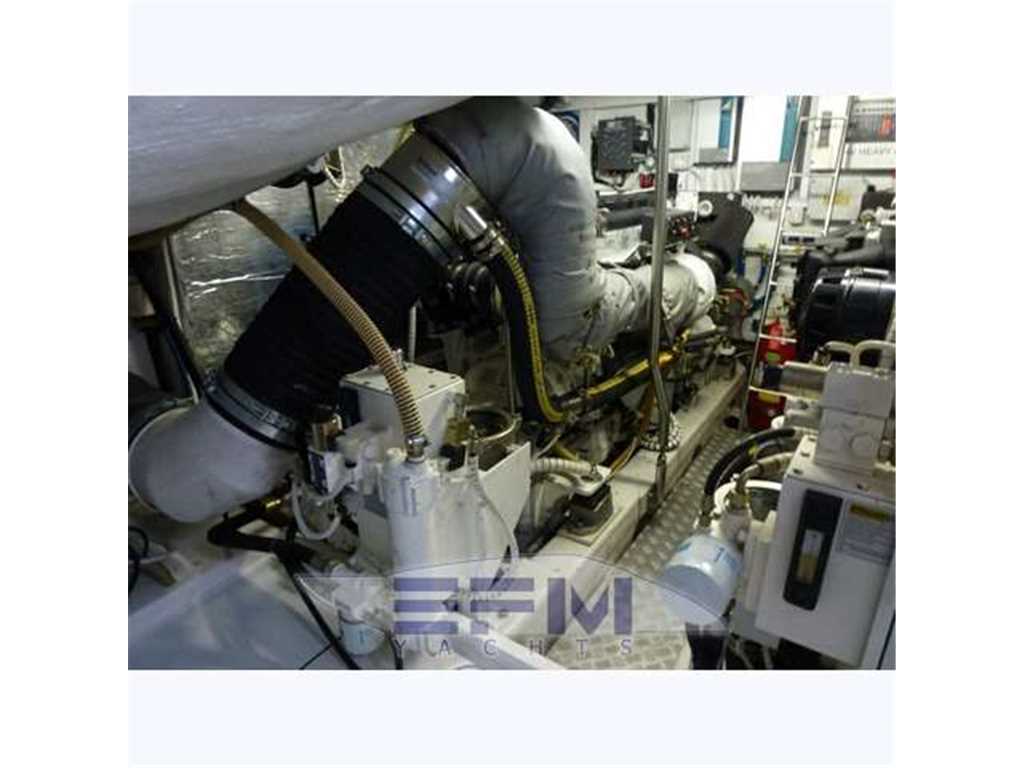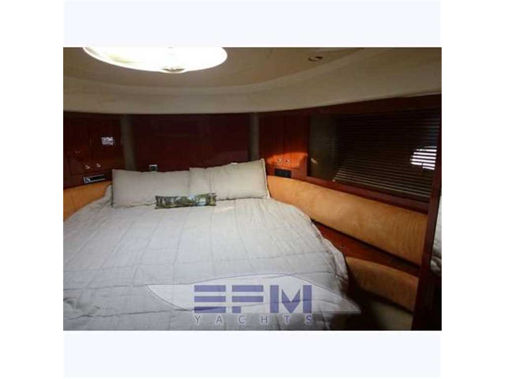 Notas internasClassica interni in ciliegio lucido e pavimento in legno dogato - Al ponte inferiore il quadrato composto da una ampio salone con grande divano a C in microfibra panna e tavolo in teak apribile con 2 puff amovibili - Davanti al divano un mobile a murata con grande tv lcd e impianto dvd e radio stereo con cd , che prosegue raccordato con la grande cucina a murata completa con 4 fuochi in vcr + forno combi + frigo , pensili , dispensa e lavastoviglie . Con entrata dal salone troviamo verso poppa a dx la cabina ospiti con 2 letti a pullman mobile e armadio , con entrata a sx invece la Suite armatoriale matrimoniale a centro barca con mobile , divano 2 posti , armadio ,tv lcd a parete , bagno privato e box doccia separato - a prua grande cabina vip matrimoniale con tv lcd e con bagno privato e box doccia separato che ha accesso anche dal salone - con accesso dal pozzetto troviamo a poppa la cabina marinaio con 1 letto in piano + trasformazione per altri 2 posti letto , wc, lavabo e doccia e con accesso alla sala macchine -