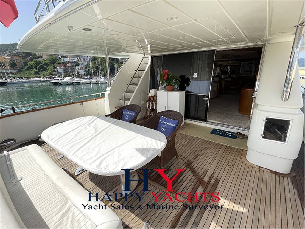 Descrizione esterni IL PONTE DI COPERTA E' RISERVATO ALLE ATTIVITA' SOCIALI: IL POZZETTO POPPIERO CON LA SCALA INTEGRATA DEL FLYINGBRIDGE E' UN VERO SALOTTINO EN PLEIN AIR CON DIVANO E GRANDE TAVOLO DA PRANZO. UNA VETRATA SCORREVOLE LO SEPARA DAL MAGNIFICO SALONE OPEN SPACE CHE OSPITA LA ZONA CONVERSAZIONE, SULLA SINISTRA, FRONTEGGIATA DA UN MOBILE CON TV E, SULLO SFONDO, IL TAVOLO DA PRANZO PER OTTO PERSONE. LA CUCINA E' AMPIA E BEN ATTREZZATA. SULLA COPERTA PRODIERA, CHE SI RAGGIUNGE ATTRAVERSP DUE PASSAVANTI LATERALI. C'E' UN PRENDISOLE INCASSATO. IL MAXI FLYINGBRIDE OSPITA A POPPA VIA UNA ZONA RELAX CON DIVANETTI E ALLE SPALLE DELLA SECONDA TIMONERIA TROVIAMO UN GRANDE PRENDISOLE ED UN DIVANO CON TAVOLO. |