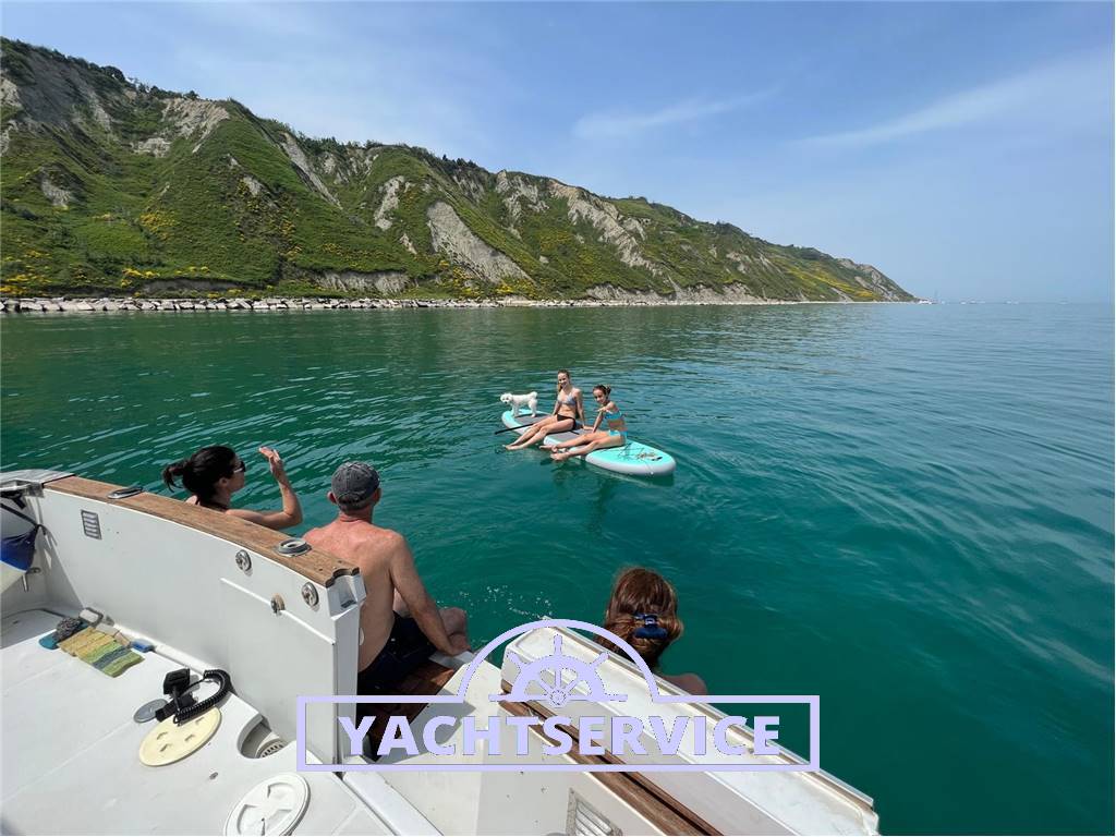 Notas internasOttima anche la guida sul fly che offre una vista a 360 gradi. Lo scafo offre anche un ottima larghezza di quasi 4 mt. simile a barche di lunghezza superiore. Ottima la motorizzazione Cummins da 250 hp con trasmissione in linea d'asse diretta con consumi ridotti a crociera. Internamente c'è una dinette con cucina a due fuochi, lavello e frigo, divano con tavolo e postazione di guida. Nella zona notte a prua c'è la cabina matrimoniale molto comoda, una seconda cabina con letto singolo + una cuccetta abbattibile per un bambino, il bagno è dotato di ogni confort. Numerosi lavori svolti negli ultimi 2 anni: tagliando motori completo, revisione turbine e controllo iniettori, check riser di scarico + tubi di scarico nuovi, revisione timoneria, magneto termici nuovi, tutte le prese a mare nuove, motore wc nuovo, salpancora revisionato, 4 batterie nuove, plotter garmin 9" nuovo, cuscineria esterna nuova. Bimini sul fly + ombreggiante pozzetto comprese le chiusure laterali e copri finestrature. Carena portata a zero nel 2024. Gruette in acciaio, passerella manuale, tender da 2 mt. con motore elettrico. Notas de la instrumentaciónAutopilota, bussola, eco, gps, plotter 9" garmin nuovo, vhf nuovo,Notas de armamentofaro orientabile, stereo fusion con 4 casse, gruette acciaio, tender con motore elettrico |
